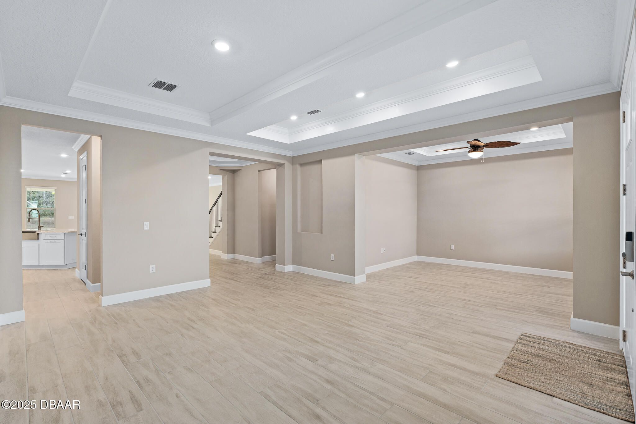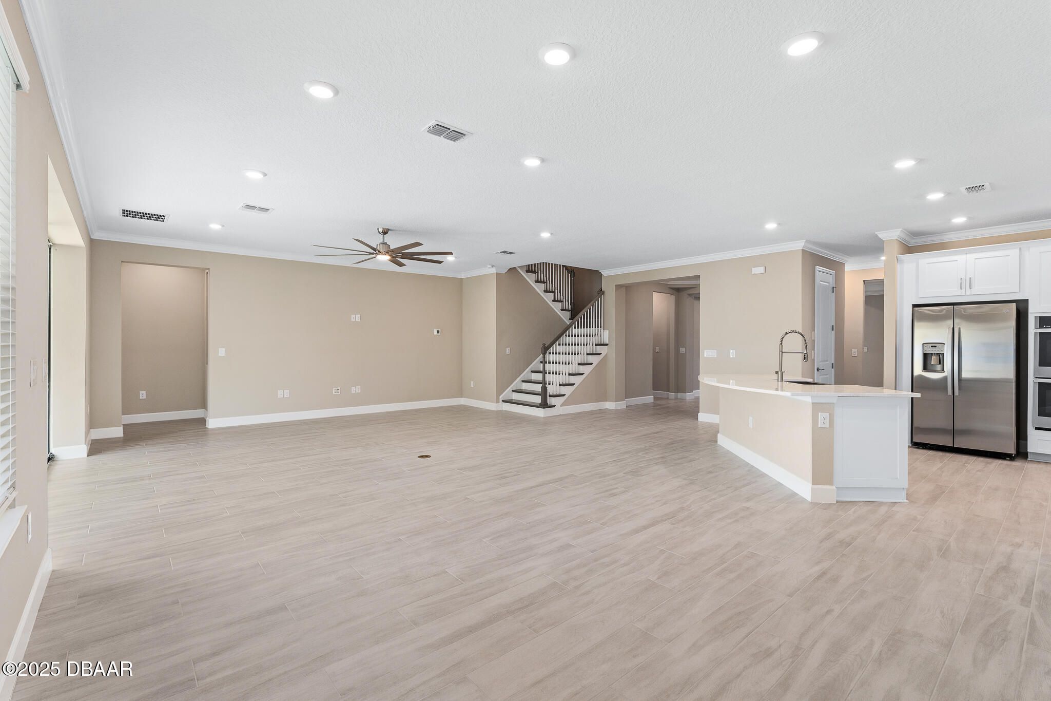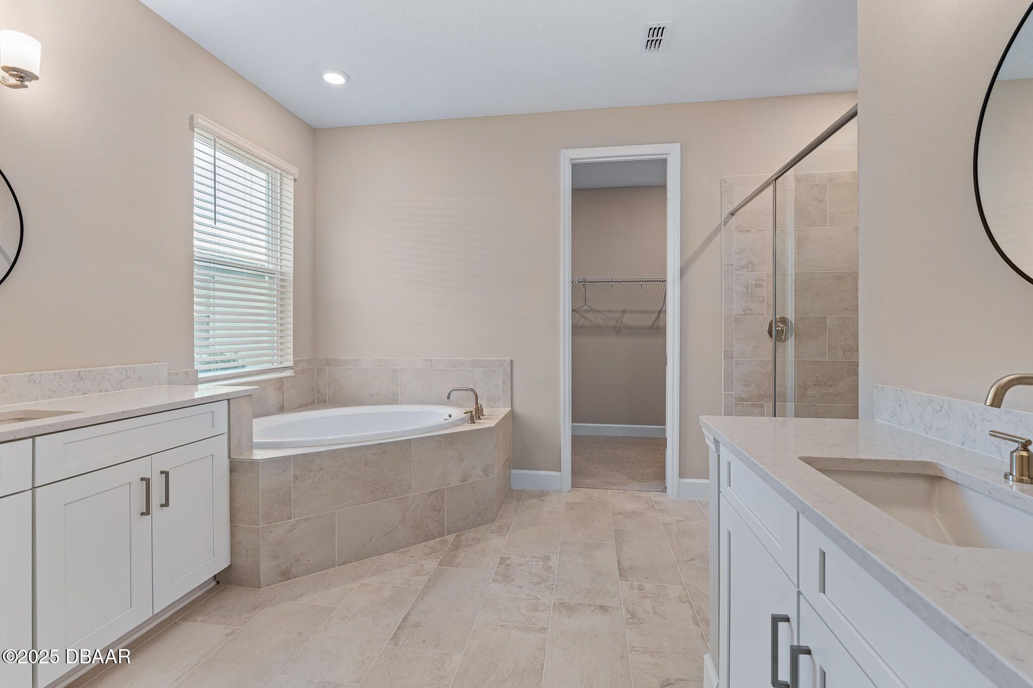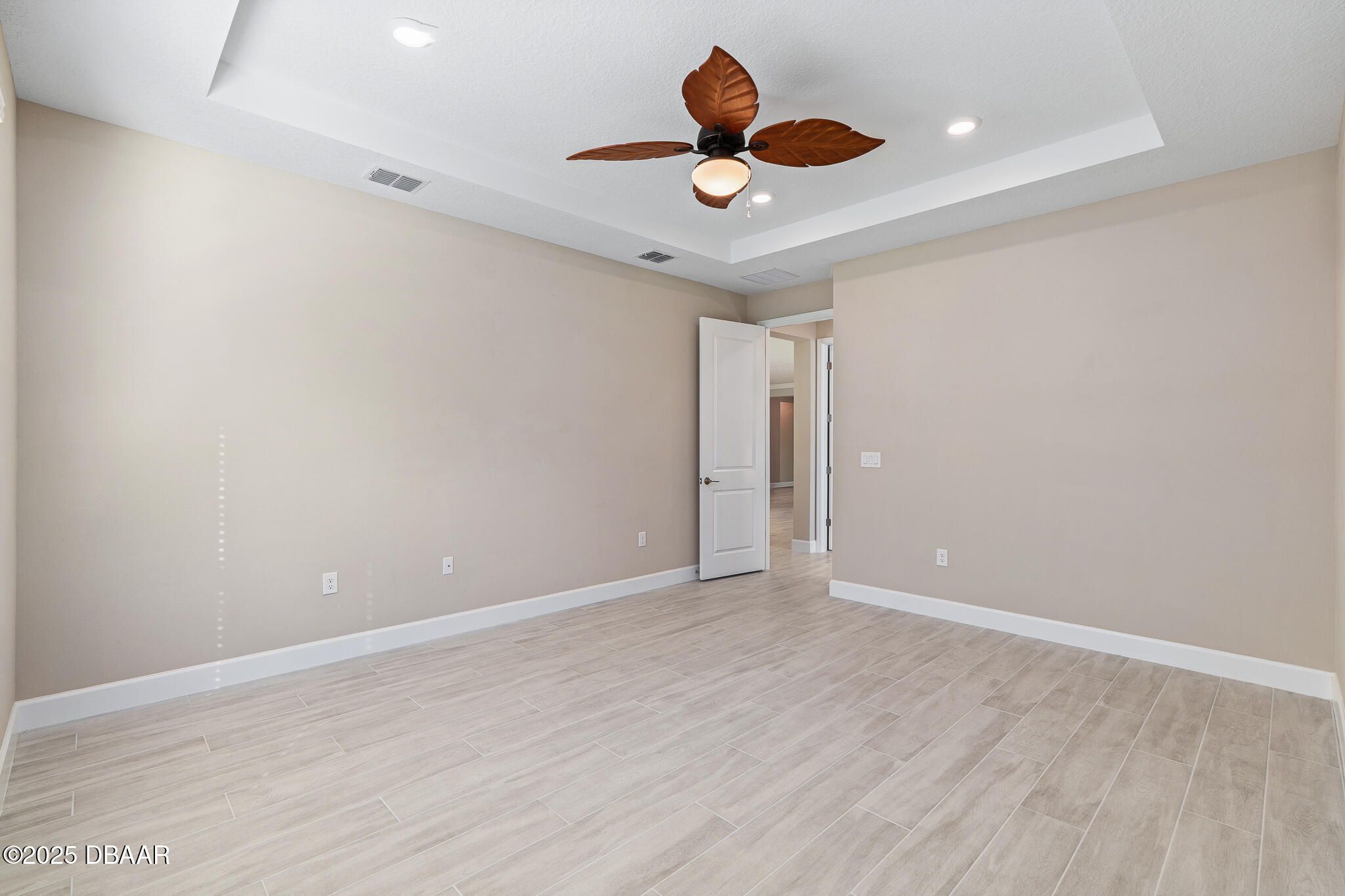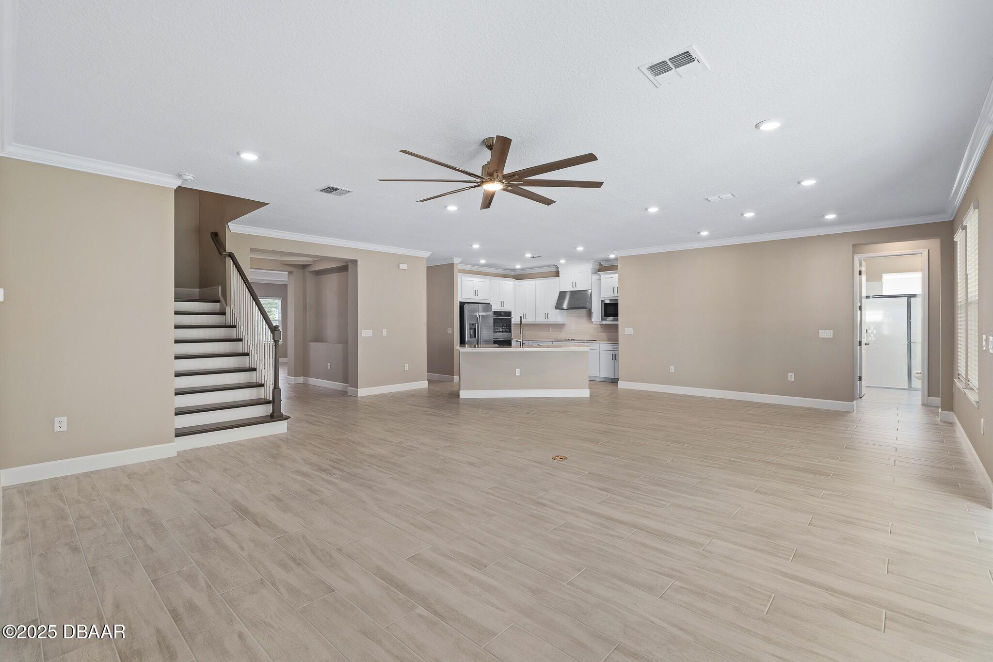 BEAUTIFUL highly-upgraded home in Windchase neighborhood of Halifax Plantation! This 2024-BUILT Taylor Morrison home is the definition of IDEAL Florida living. Approach the home and you are welcomed with a large front porch leading to your front door entry with frosted sidelights. Upon entry, you are greeted with TILE PLANK flooring and tray ceilings with CROWN MOLDING. Entry foyer opens into your formal Dining Room which is also outfitted with tile plank flooring, window blinds, and tray ceiling with crown molding. Located on the other side of the entry foyer is your Office/Study featuring tile plank flooring, tray ceiling with crown molding, window blinds, and ceiling fan. ROTUNDA in the center of the 1st floor featuring tray ceiling with double-crown molding. Kitchen is a chef's dream with 42' two-tone dovetail/ softclose cabinetry, tile backsplash, QUARTZ countertops, GE STAINLESS STEEL appliances, crown molding, and MASSIVE island with stainless FARMHOUSE/APRON-style sink. Kitchen is complete with a WALK-IN PANTRY next to your additional countertop space functioning as a key-drop, coffee bar, etc. Situated off of Kitchen is a space which could easily be utilized as a Breakfast Nook. MASSIVE Living Room is situated across from Kitchen and boasts tile plank flooring, crown molding, ceiling fan, and triple POCKET SLIDERS to Lanai. From Living Room, enter your oversized Master Suite equipped with tray ceilings with double-crown molding, window blinds, carpeted flooring, ceiling fan, and window blinds. Enter your Master En-Suite Bathroom with tile floors, 2 separate QUARTZ vanities, HUGE walk-in shower, soaking tub, and water closet. Also features a MASSIVE Master Closet with an abundance of storage space. 1st floor features 3 Guest Bedrooms- all of which include carpeted floors, ceiling fans, and window blinds. Front 2 Guest Bedrooms share a Jack and Jill Bathroom with convenient doors between each section for added privacy. Located near your Rear Guest Bedroom is the large Media Room/Den with endless possibilities such as a 2nd home office, home gym, etc. This room features tile plank flooring, tray ceiling, window blinds, and ceiling fan. Between Media Room/Den and Rear Guest Bedroom is Rear Guest Bathroom which includes tile floors, QUARTZ vanity, tile shower, and TRANSOM window above shower for plenty of NATURAL LIGHT. Located in the hallway to the Front Guest Bedrooms is your Half Bathroom/Powder Room with tile floors and pedestal sink. From the Living Room, head up your wood staircase to the OVERSIZED upstairs living space. Huge upstairs Bonus Room featuring carpeted floors, window blinds, and ceiling fan could easily be utilized as a home movie theater, game room, etc. Head through your upstairs hallway into the Upstairs Guest Bedroom. Hallway closes off which allows bedroom to utilize an En-Suite Upstairs Guest Bathroom with tile floors, tile shower, and QUARTZ vanity. Head back downstairs and enjoy the convenience of your FULL-SIZE Laundry Room with QUARTZ vanity/utility sink and shelving for additional storage. Go through Laundry Room into the HUGE 3-Car Garage with high-end EPOXY flooring. At the end of the day, travel out back to into your private piece of PARADISE. Huge Lanai pre-plumbed for summer kitchen and plenty of space for your dream pool setup! All backing up to preserve views for maximum privacy. This home is in LIKE-NEW condition and is complete with TILE roof, PAVERS walkway and driveway, LUSH landscaping, whole-house WATER TREATMENT SYSTEM, and MUCH MORE. Home is situated in a quiet, peaceful location near the CUL-DE-SAC, on the opposite end of the neighborhood from the ENTRY GATE. Halifax Plantation is just MINUTES away from the sandy beaches of Ormond Beach, making it a great choice for those who enjoy coastal living. In addition to GOLF, there are plenty of RECREATIONAL opportunities, including walking TRAILS and nearby PARKS, making it ideal for nature lovers and ACTIVE lifestyles. Conveniently located near SHOPPING, dining, and major highways, Halifax Plantation offers the PERFECT balance of privacy and accessibility. Whether you're looking for a peaceful retreat or a vibrant community, Halifax Plantation is a wonderful place to call home.