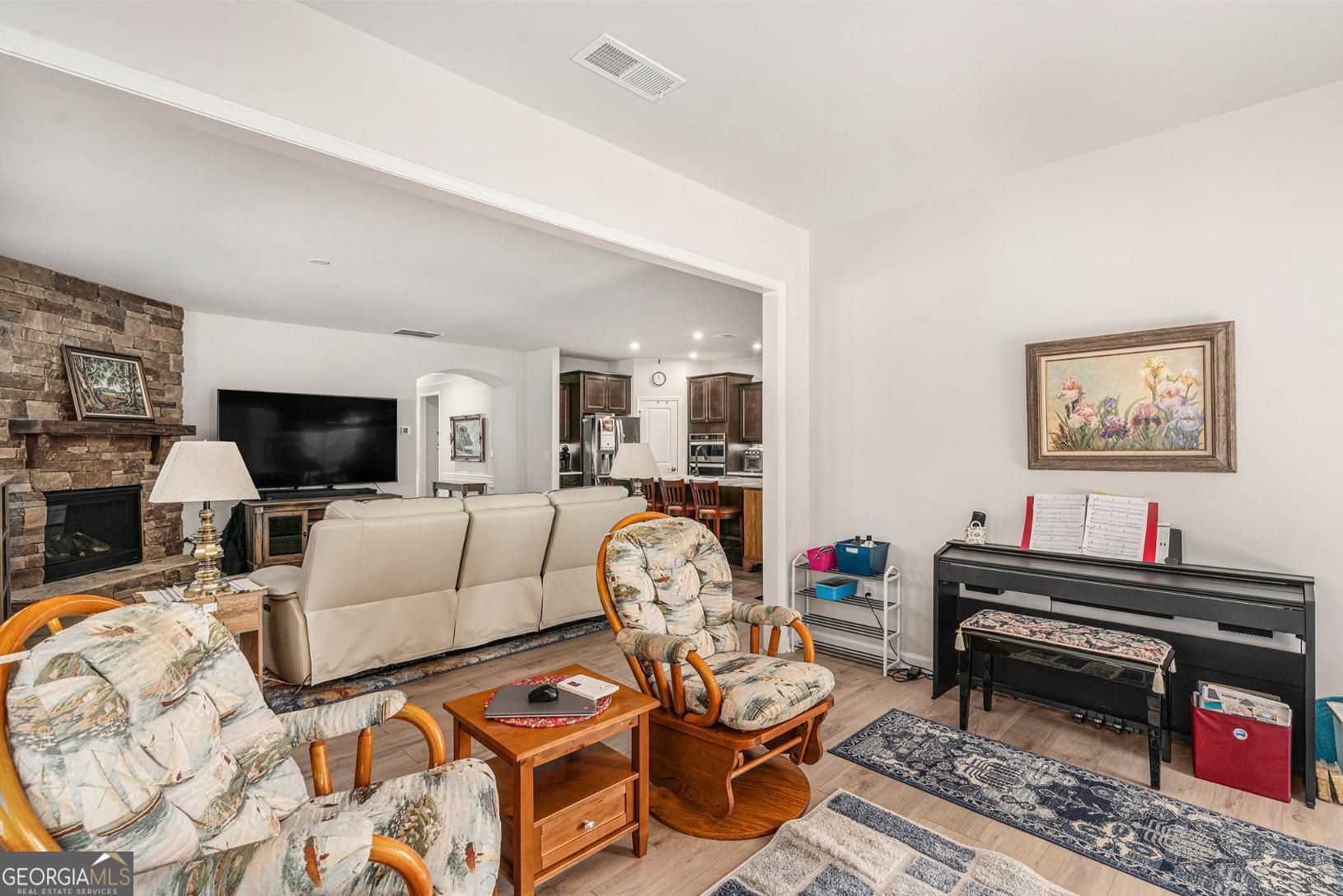 Welcome to this thoughtfully designed 3-bedroom, 2-bath home nestled on a quiet cul-de-sac in the premier 55+ Active Adult Community of Sun City Peachtree. This home offers privacy, space, and comfort with an open-concept layout perfect for everyday living and entertaining. The heart of the home is a gourmet kitchen featuring a large center island, ideal for casual dining and hosting, open to the dining area and a spacious gathering room with a stunning fireplace. Just off the dining area, a bright and airy sunroom provides a relaxing space for morning coffee or entertaining guests. The primary suite includes a luxurious en-suite bathroom with a double vanity, and a generous walk-in closet. You'll also find two additional bedrooms and a dedicated office/library, offering flexible space to suit your needs. Located in the vibrant Sun City Peachtree, you'll enjoy resort-style amenities, including: A 45,000 sq. ft. clubhouse with ballroom Two-story fitness center Indoor & outdoor pools Tennis & pickleball courts Walking trails & dog park Clubs and interest groups Full-time Lifestyle Director Whether you're seeking a peaceful retreat or an active lifestyle, this home delivers both-and at an incredible value in one of Georgia's most sought-after active adult communities!