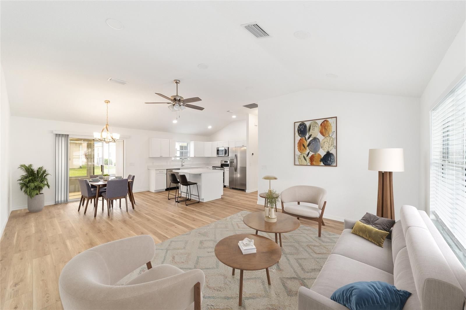 One or more photo(s) has been virtually staged. **Hi, I’m Your Newly Updated Santo Domingo Home, and Yes, I Know I Look Good** Let me introduce myself before you fall in love at first showing. I am a 3 bedroom, 2 bathroom beauty in Santo Domingo with **NO BOND**, and I just went through the kind of glow-up most houses can only dream about. Seriously, if I had before and after pictures, you would not believe them. Let’s start with the heavy hitters. My ROOF was replaced in 2020, my HVAC was installed in November 2025, and my HOT WATER HEATER is 2018. Translation, the expensive stuff is done, and you can stop worrying about surprise bills and start planning your next golf cart adventure. Now step inside, because this is where I really shine. JUST PAINTED- we saved you some time to have fun quicker. Check out my brand NEW KITCHEN CABINETS. Go ahead, open them. They are real. They are clean. They close all the way. I am also sporting QUARTZ Countertops and a BRAND NEW set of stainless steel appliances that have never cooked a disappointing meal. You might just elevate your cooking game by standing near them. Then there are my new LVP FLOORING THROUGHOUT and let me tell you, they are a dream. Durable, modern, and they practically clean themselves. You will love walking across them every day. Barefoot encouraged. Take a peek at my bathrooms. Yes, both of them. NEW shower in the Primary bath, new vanities with GRANITE COUNTERTOPS, new toilets, new mirrors, new lighting. Everything is fresh, bright, and ready to make your morning routine feel a little less chaotic and a lot more spa-like. I also upgraded my lighting in the kitchen and living room, because looking this good deserves proper illumination. The LED lights show off every detail without making you feel like you are sitting in a hardware store aisle. No more POPCORN I have knockdown ceilings. Step outside and notice my landscaping. Someone really cared about making me look sharp without turning me into a full time job. Beautiful, peaceful, and well maintained. And do not forget my two car garage. A real one. You can park two actual vehicles in here, not one car and a mountain of stuff you meant to donate three years ago. Location wise, I am right where you want to be, close to both Spanish Springs and Lake Sumter Landing, plus medical, restaurants, golf, recreation, and Costco for those days when you absolutely need forty rolls of paper towels. So come meet me in person. I have had a full facelift, I feel fantastic, and I am ready for my next chapter. I think you and I are going to get along just fine.