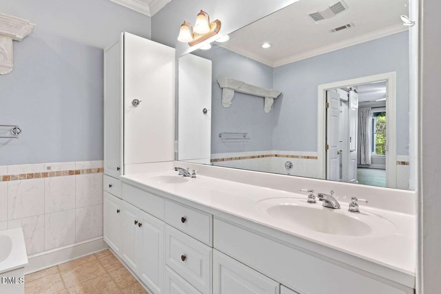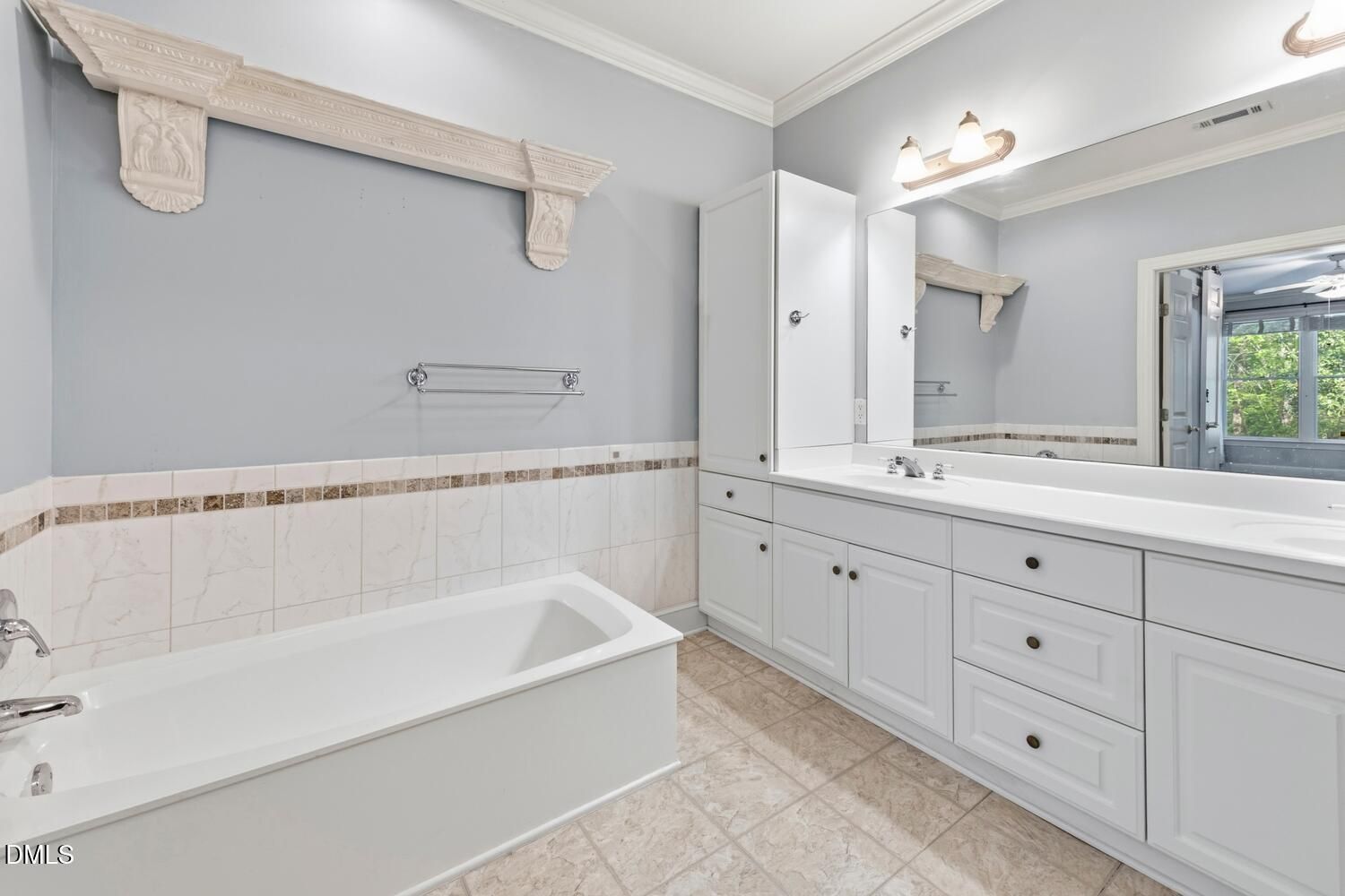 - Tub Shower, Ceiling Fan(s), Crown Molding, Double Vanity, Double Closet, Eat-in Kitchen, High Ceilings, Kitchen Island, Laminate Counters, Stall Shower, Smooth Ceilings, Soaking Tub, Storage, Walk-In Closet(s), Walk-In Shower