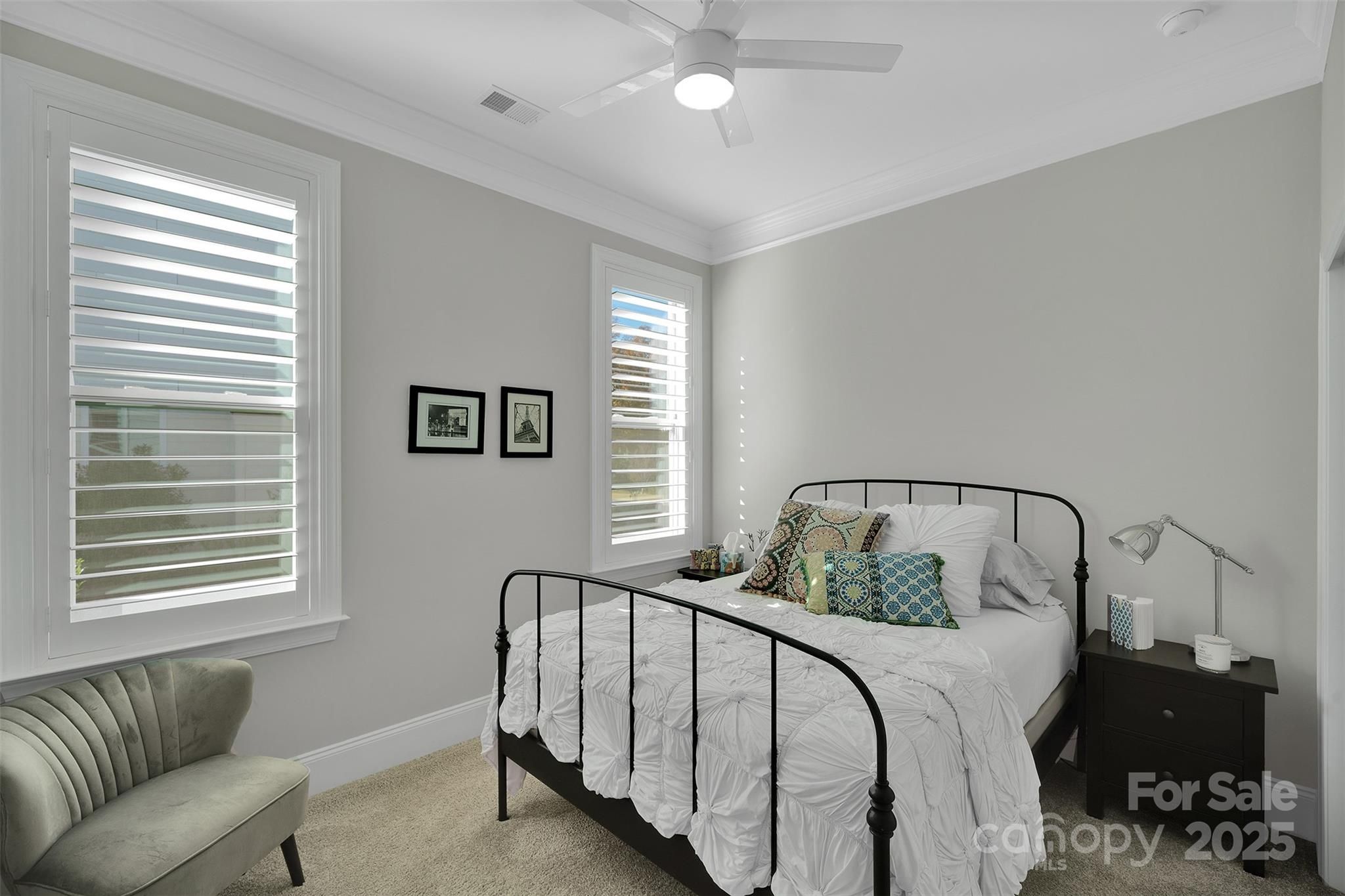 Welcome to luxury living in the prestigious Regency at Palisades! This stunning 3-bedroom, 2-bathroom, 2,274 sq ft home in Charlotte's premier age-targeted community offers the perfect blend of elegance and resort-style amenities near Lake Wylie. Step inside to discover a thoughtfully designed floor plan featuring an elegant study with crown molding and chair rail, perfect for working from home or quiet reading. The gourmet kitchen is a chef's dream with a large quartz island, butler's pantry, and walk-in pantry – ideal for entertaining and everyday living. The spacious primary suite is your private retreat, boasting a tray ceiling and a spa-inspired ensuite with an oversized shower. Two additional bedrooms provide flexibility for guests, hobbies, or home office space. Throughout the home, you'll appreciate premium touches including built-in speakers, crown molding, and an electric fireplace in the living room creating the perfect ambiance. The true showstopper? The EZE Breeze/screened porch with breathtaking treed views – enjoy this peaceful outdoor oasis nearly year-round! Step out to the stamped concrete patio, perfect for al fresco dining and relaxation. Enjoy worry-free living as the HOA includes lawn maintenance and irrigation – spend your time enjoying life, not maintaining it! Excellent community, The Regency at Palisades features a spectacular 12,000 sq ft clubhouse with indoor and outdoor pools, state-of-the-art fitness center, exercise room, and a full-time activities director organizing clubs, trips, and events. Enjoy convenient access to Lake Wylie recreation and CLT Airport. This is more than a home – it's a lifestyle! Schedule your showing today.