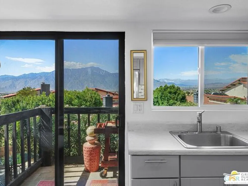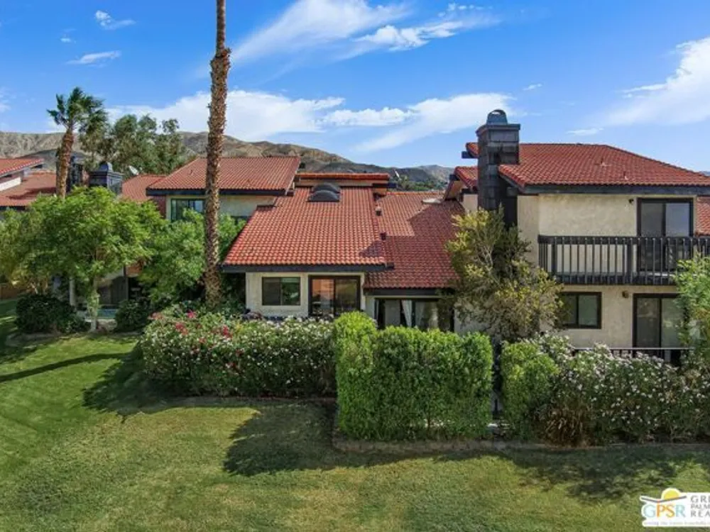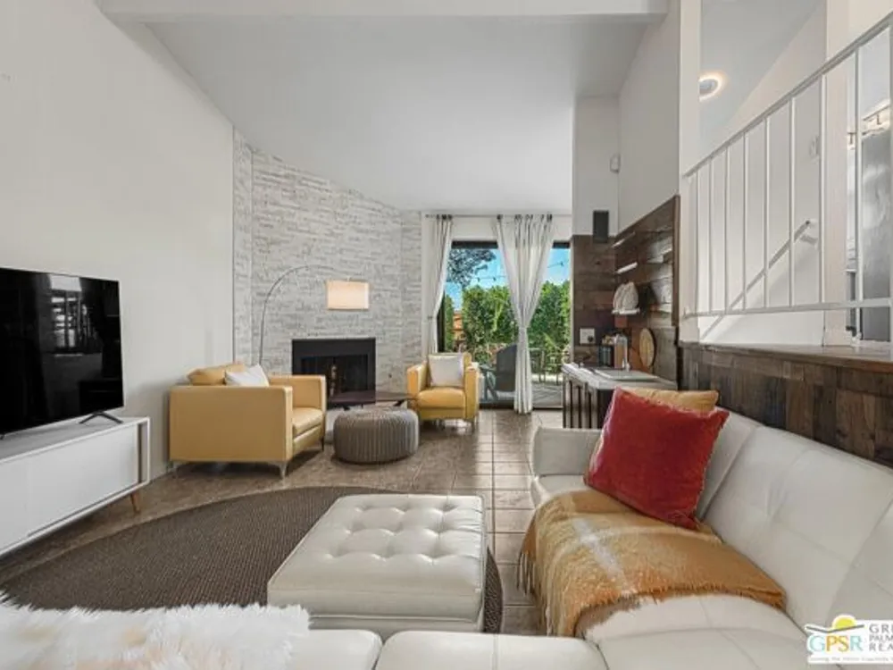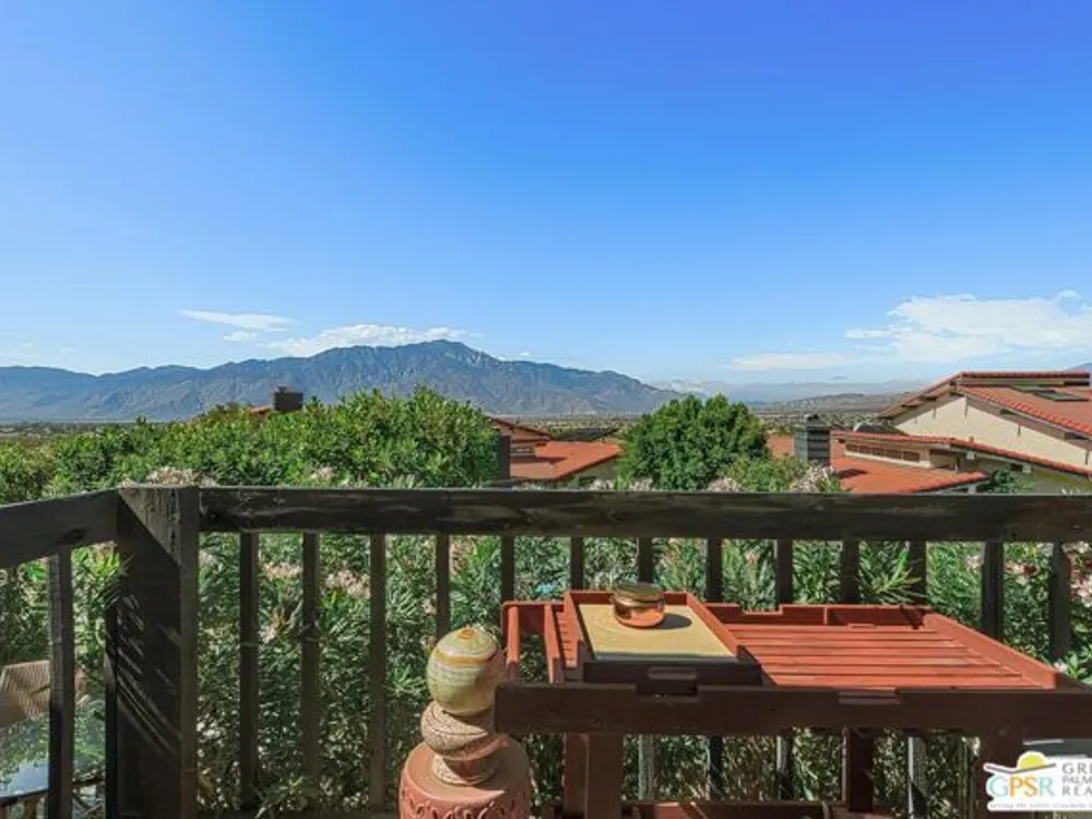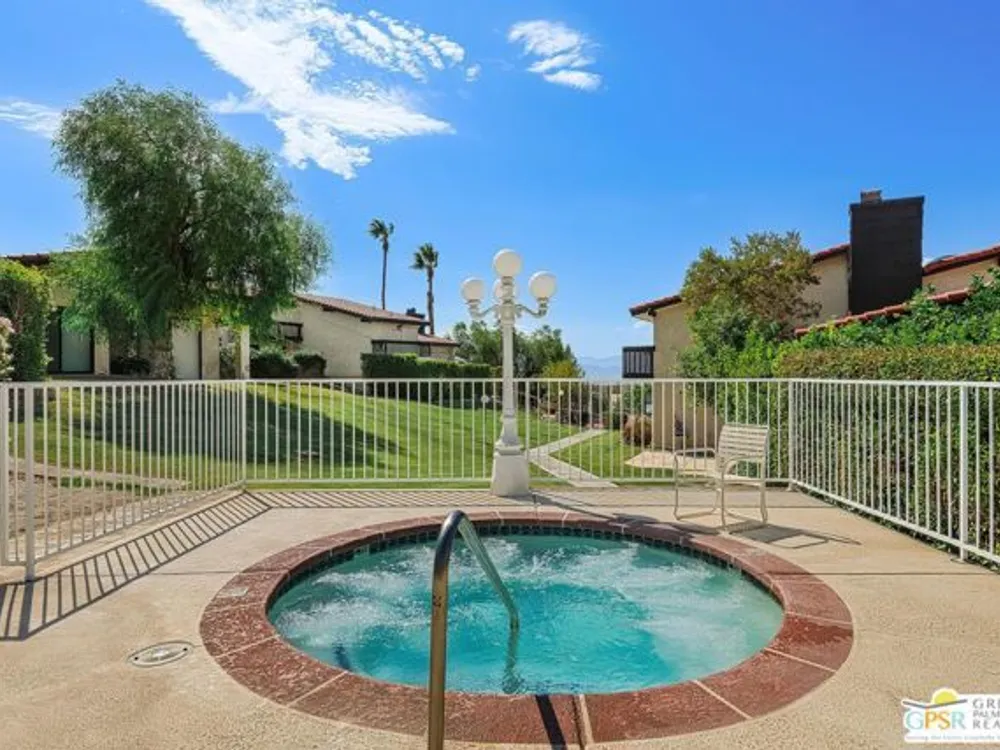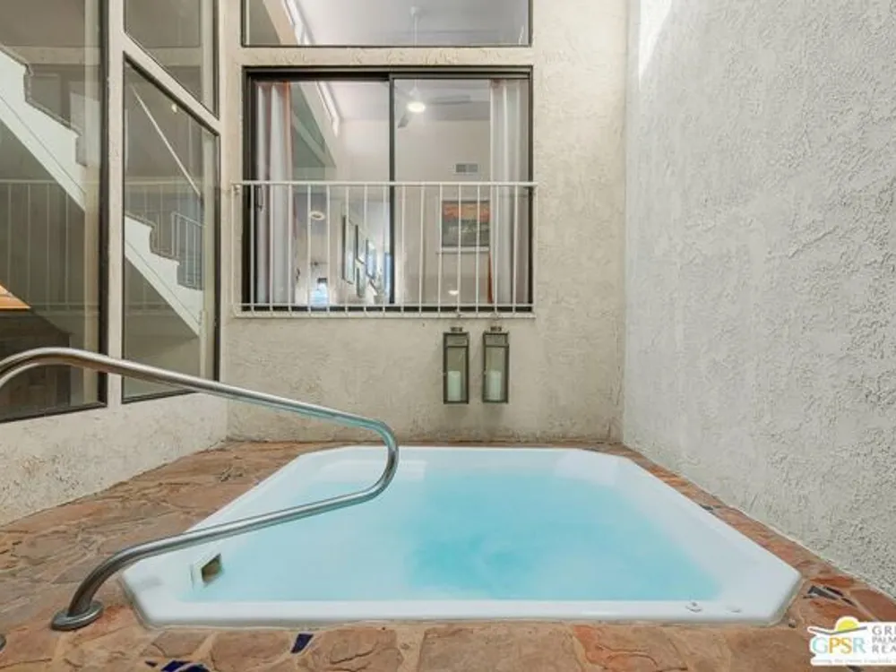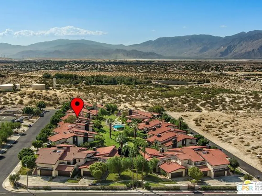 Find your Zen with your own private natural mineral spa and breathtaking mountain views. This unique Desert Hot Springs townhome combines comfort, space, and rare amenities. With over 2,100 sq. ft., the home offers 3 bedrooms, 3 bathrooms, a 2-car attached garage, and private laundry. The living room features a stacked-stone gas fireplace and wet bar, while the updated kitchen includes newer cabinetry and stainless steel appliances. A private back patio extends your living space outdoors. Two large ensuite bedrooms upstairs open to an adjoining front balcony. The highlight of the home is the indoor atrium with its own hot natural mineral water spa, providing a private retreat within your walls. Set in a quiet 26-residence community, the property is surrounded by impeccably maintained grounds and offers access to a mineral water pool, hot tub, and tennis court, all just steps away. A rare opportunity to enjoy the healing qualities of mineral water and breathtaking views in a low-density, well-kept community. 55+ plus community.