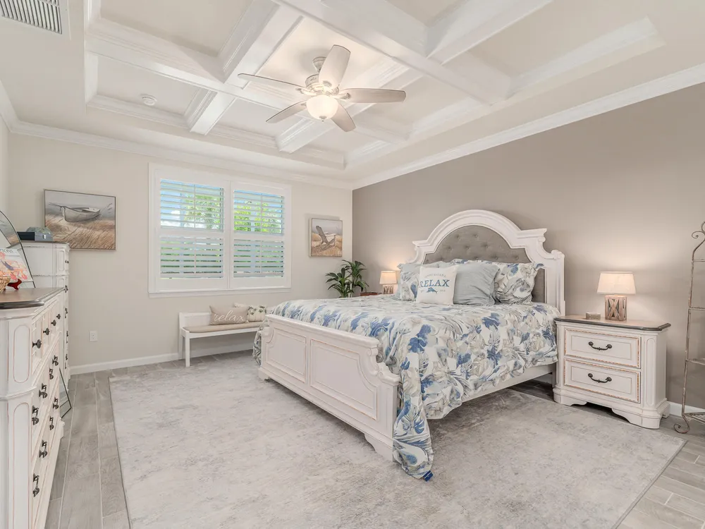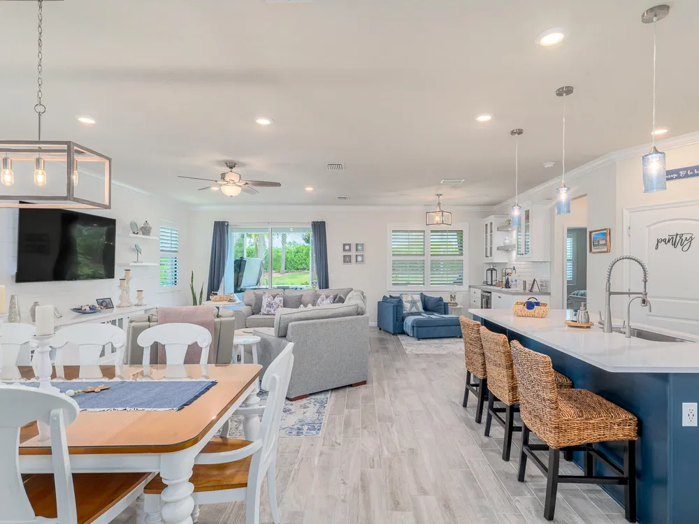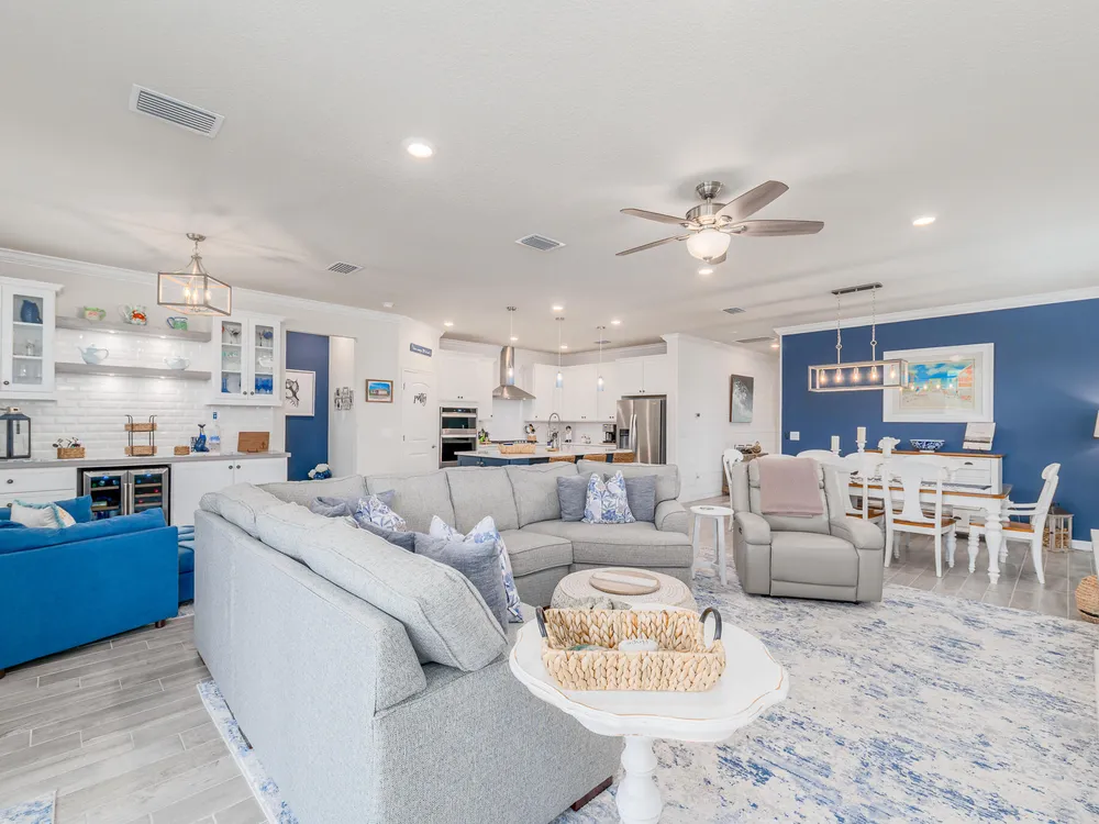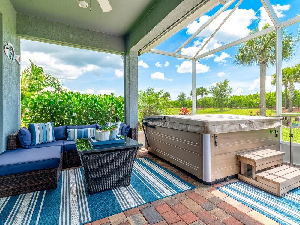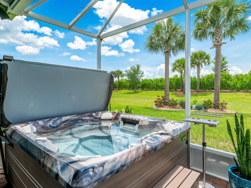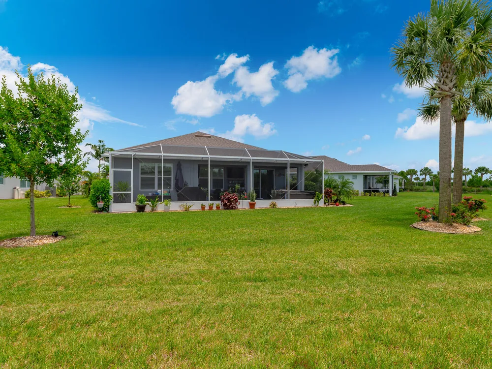 Live the good life in the premier 55+ community of Del Webb at Tradition! This 2022-built 3BR + den/office, 2BA, 2-car garage home is loaded with upgrades--impact windows, crown molding, plantation shutters, wood-look tile, and an airy open floor plan. The gourmet kitchen shines with quartz countertops, pantry, stainless steel appliances, wall oven, and gas cooktop. Retreat to the spacious primary suite with tray ceilings, walk-in closet, and spa-style en-suite. Step outside to your private backyard oasis with a screened patio, paver deck, hot tub, and room for a pool. All just minutes from shopping, dining, and major highways!