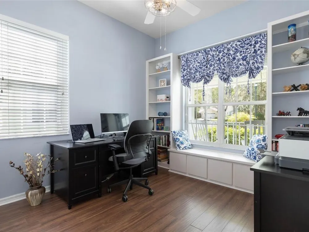 - Built-in Features, Ceiling Fan(s), Living/Dining Room, Open Floorplan, Main Level Primary, Solid-Wood Cabinets, Split Bedrooms, Stone Counters, Thermostat, Walk-In Closet(s), Window Treatments