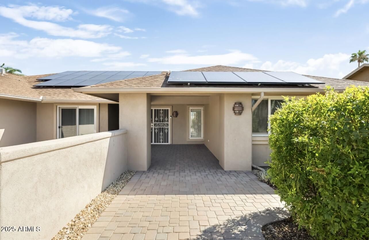 Don't miss the opportunity to own in Sun City West! This well-maintained 3 Bed/ 2 Bath home features a split floor plan that maximizes space and comfort. All windows and sliders have been updated with dual pane windows adding peace of mind for noise control and functionality, not to mention a prepaid solar lease, assisting in providing lower electric bills! Pavers in the front and back adds a touch of elegance. Wood like tile throughout the home and updated granite counter tops in bathrooms! Separate inside laundry room right off the garage that offers extra storage. Witha newer irrigation system, and an enclosed backyard providing privacy! Offers welcome!