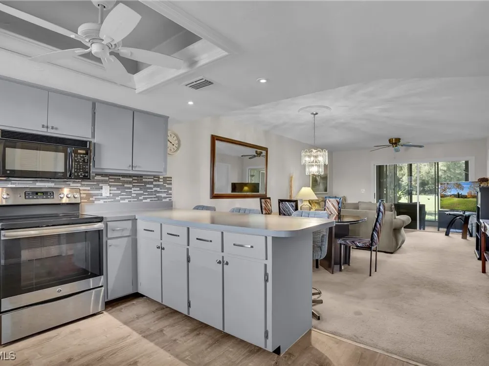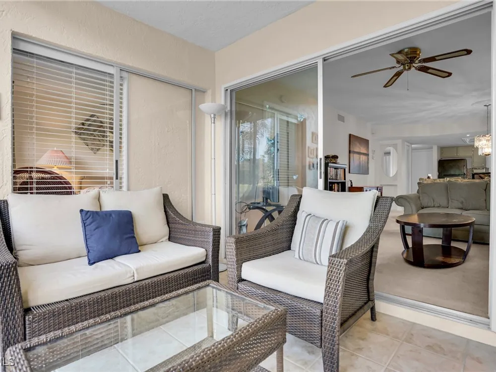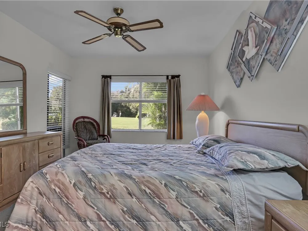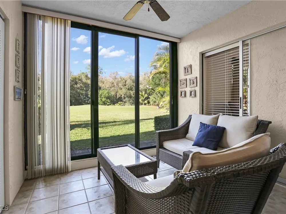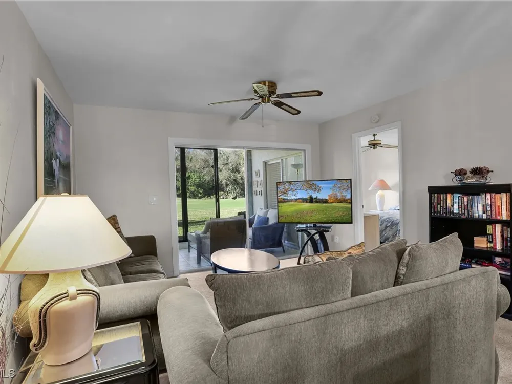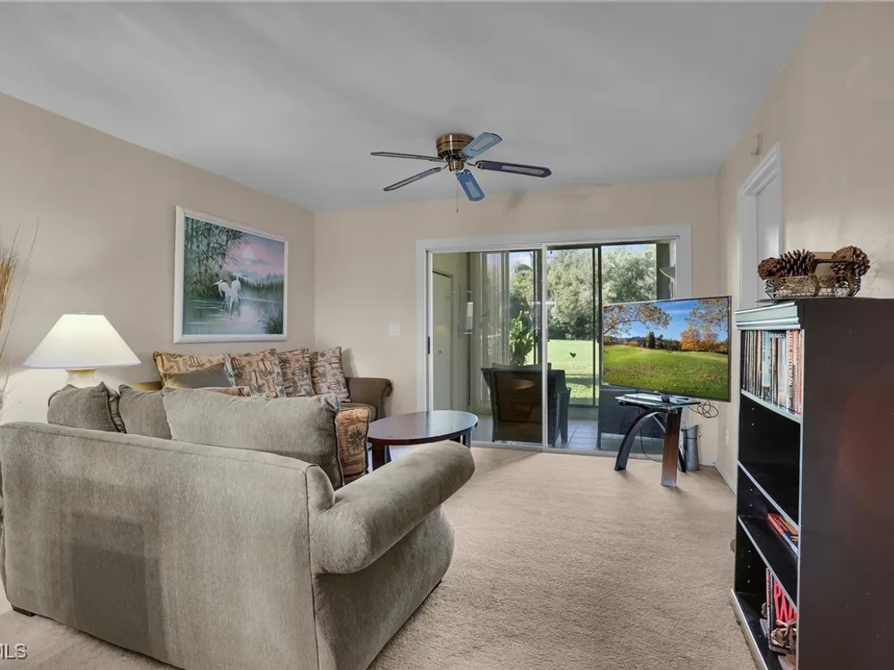 Welcome to your dream retreat at Cross Creek Country Club! This beautifully maintained 2-bedroom, 2-bathroom first-floor condo offers effortless living with stunning golf course views right from your living room. The spacious patio, enclosed with glass doors, seamlessly extends your living space—perfect for relaxing mornings or entertaining guests year-round. Step inside to find a thoughtfully designed layout featuring a welcoming entryway with a convenient coat closet and extra storage. The open-concept living and dining area is filled with natural light, while the kitchen boasts modern appliances and ample cabinetry. The primary suite includes a walk-in closet and a private bath, creating a peaceful sanctuary after a day on the course. Enjoy bundled golf membership included with your home—play as often as you like on the championship course! Cross Creek’s resort-style amenities also feature a heated pool, tennis courts, clubhouse, and scenic walking trails. Sports enthusiasts will appreciate the proximity to both Red Sox and Twins Spring Training Stadiums, while beach lovers can easily access nearby beaches. With quick connections to I-75 and SWFL International Airport, this condo is ideally situated for exploring all that Fort Myers has to offer. This vibrant community is just minutes from Gulf Coast Town Center, Bell Tower Shops, and top local dining like Cantina 109 and Two Meatballs in the Kitchen. Everyday essentials are close by with Publix Super Market and CVS Pharmacy. Enjoy a resort-style lifestyle with breathtaking views and the benefits of a first-floor unit. Don’t miss the chance to own this exceptional home