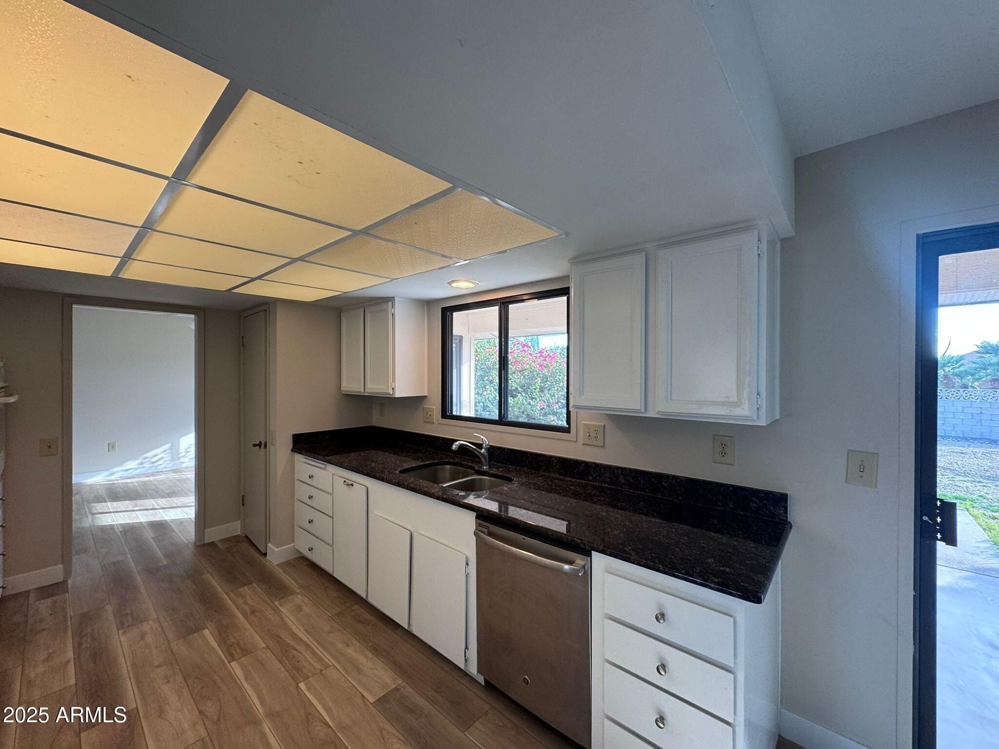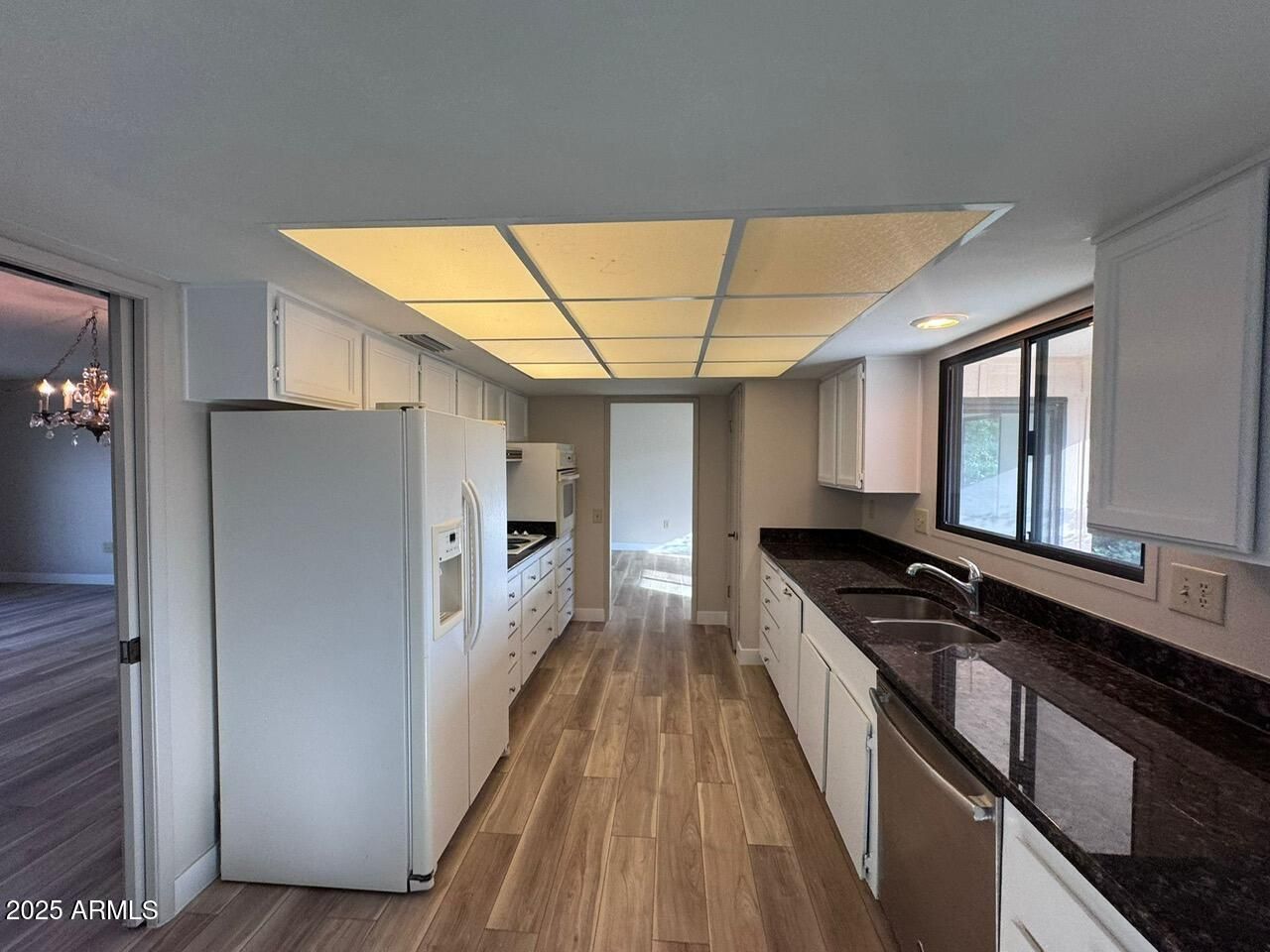 Located in the heart of Sun City West, this charming single-story home offers a great layout and the opportunity to enjoy an active lifestyle with access to the RH Johnson Recreation Center. The galley-style kitchen features granite countertops, white cabinetry, and a recessed panel light fixture that brightens the space. BRAND NEW vinyl wood flooring creates a bright, open, and airy feel throughout. Step outside to a covered lanai overlooking a spacious, desert-landscaped backyard—ideal for entertaining or relaxing under the Arizona sun. The community rec center offers a resort-style pool and spa, fitness facilities, tennis and pickleball courts, dog parks, miniature golf and many other amenities.