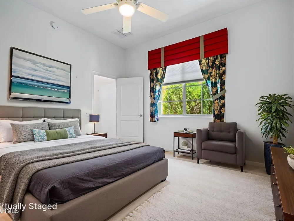 Don't miss this opportunity to join the beautiful 45+ Corte Bella Country Club community at a fantastic price. Spacious three bedroom home with 2.5 baths, attached two car garage and separate golf cart garage.. This home is ideal for entertaining, including a spacious den/library, kitchen with island (all appliances convey) open to a family room and adjacent covered patio. Enjoy the peaceful fountain while cooking on the built-in gas grill. Washer and dryer are included. Corte Bella is a premier retirement community that offers a golf course, clubhouse, workout facility, heated pool and spa, and an onsite restaurant to socialize and meet new friends.