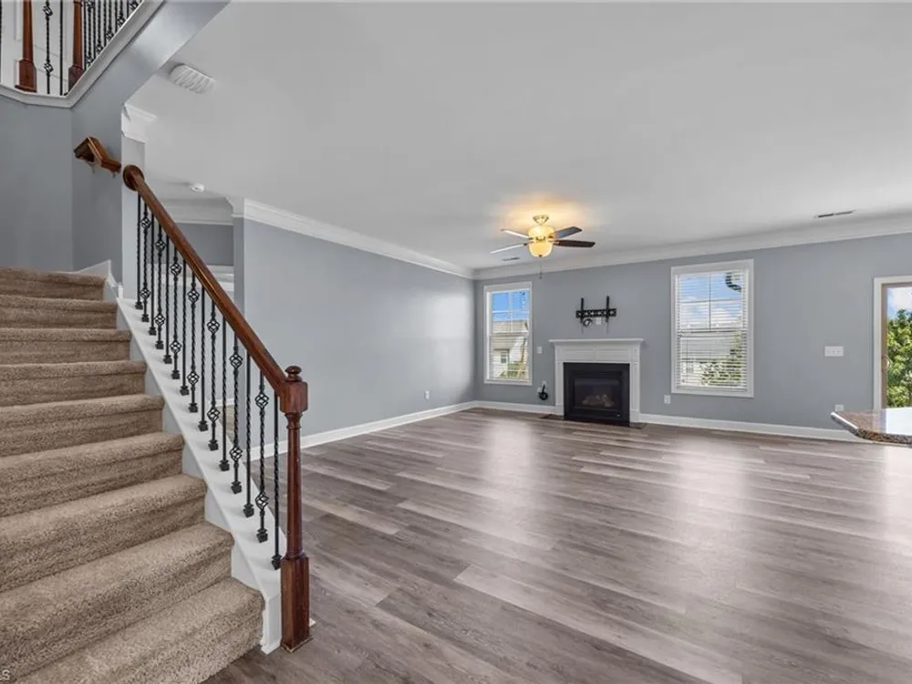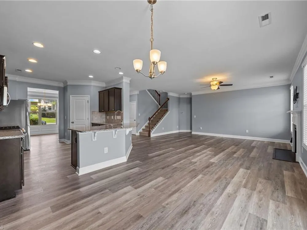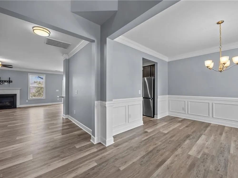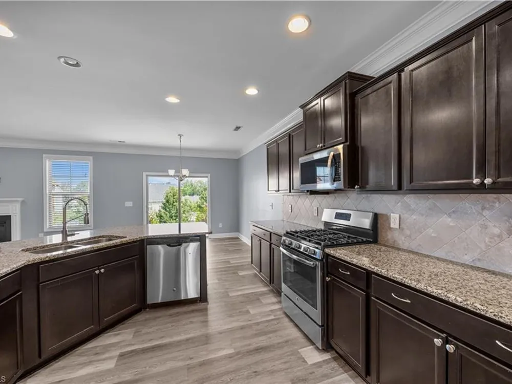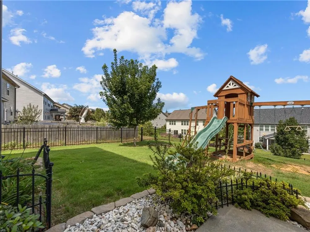 Welcome to this beautifully updated 4-bedroom plus lg bonus, 3.5 bath home in Mackintosh on the Lake! Thoughtful updates include brand-new main-level flooring and fresh paint, creating a bright welcoming feel. The living room with a cozy gas fireplace flows into the open kitchen featuring granite countertops, stainless steel appliances, gas stove, pantry, and breakfast area. A private dining room offers an elegant space for gatherings. The main-level primary suite is a true retreat with double vanity, soaking tub, walk-in shower, and large walk-in closet. The first floor also includes a convenient laundry room and half bath. Upstairs, enjoy a spacious, light-filled bonus room perfect as a second living area, playroom, or office, plus 3 bedrooms and 2 full baths, including a Jack & Jill. Outside, relax in the fenced backyard with playset and take advantage of the 2-car garage. Resort-style amenities include a pool, splash pad, sports courts, sidewalks, and community events for all ages!