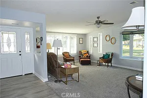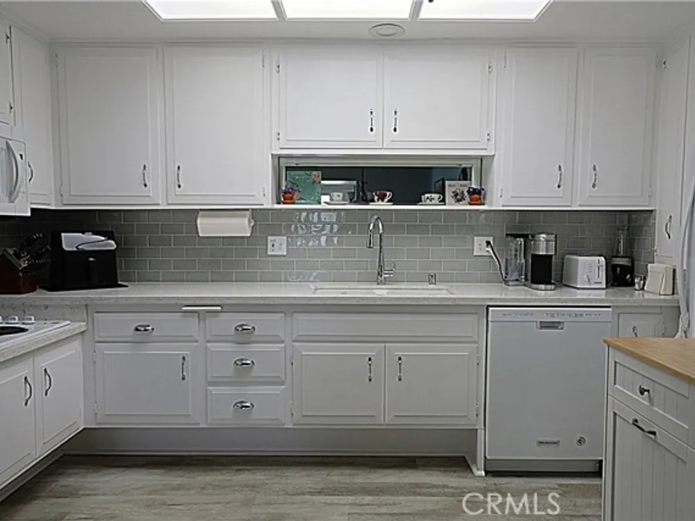 Cozy country cottage, Mutual 11 - 284F is a fully expanded 2 bedroom, 1 1/2 bath corner unit on a lovely greenbelt, with drive-up convenience. Among the many features are the following: vinyl plank flooring in entry, dining area, kitchen and bathrooms, carpet in living room and bedrooms, plantation shutters, skylights, ceiling fans, and central A/C and Heat. There is a walk-in closet in the master bedroom. Lots of storage throughout. Cut down walk-in shower in the master bathroom, along with a stacked washer/dryer. White cabinetry and Quartz counter tops in kitchen and bath. The kitchen features an electric stove top, a built-in microwave, oven, dishwasher and refrigerator with bottom freezer, also a pantry and a small peninsula counter with storage between the kitchen and the dining room. This home shows pride in ownership with many well thought out practical details, it is move-in ready...Carport parking is located in building 133 space 27. ...Leisure World is a 55+ Senior community. Resort like, guard gated with lots of free amenities, par 3 golf, pool, state of the art gym, 6 clubhouses with plenty of activities to keep you from getting bored. Located just 1.5 miles from the beach, we enjoy cool ocean breezes.