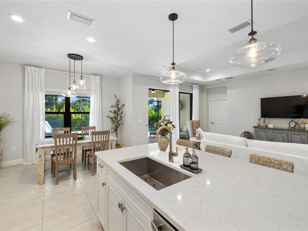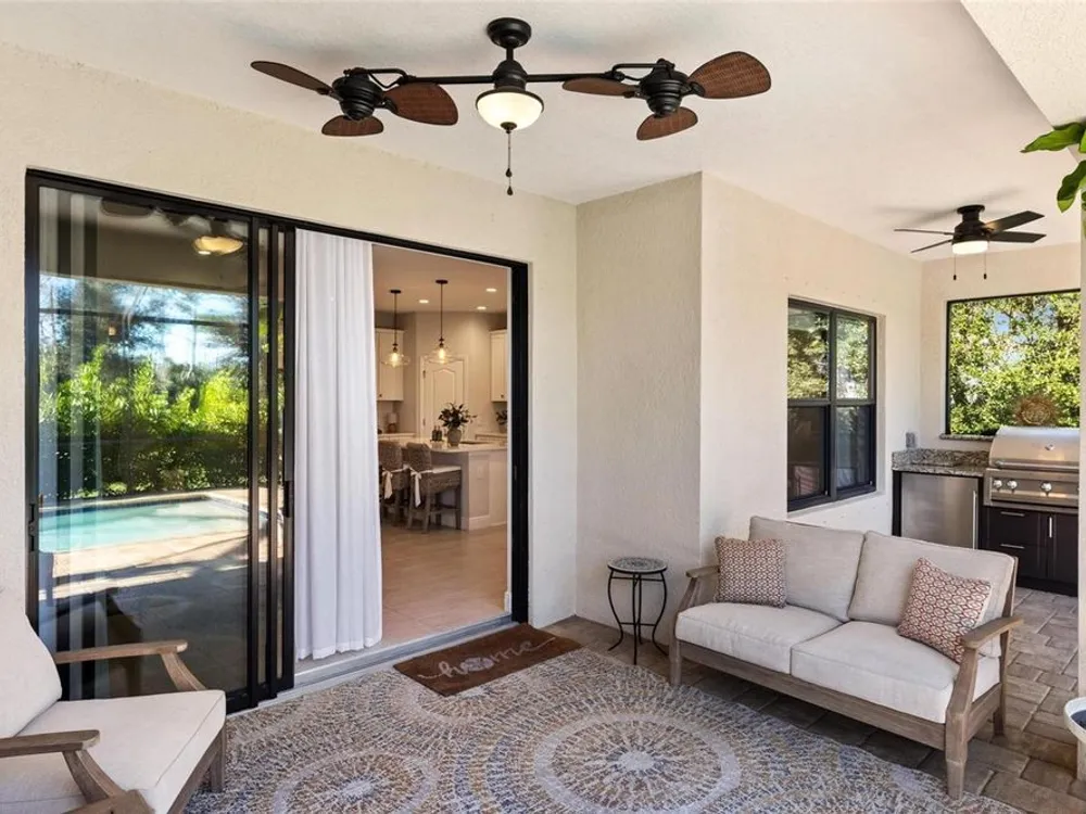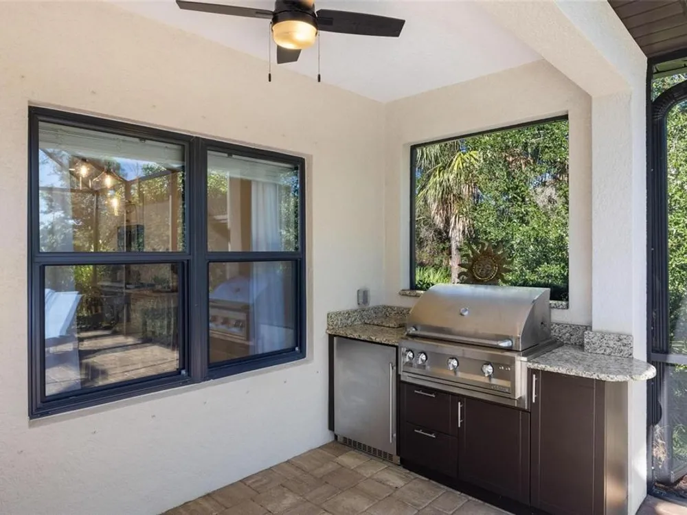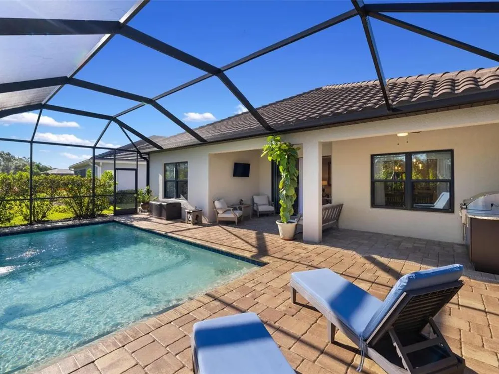 Welcome to 13145 Steinhatchee Loop, a 2020-BUILT home in GRAND PALM. This 3-BEDROOM, 2-BATH layout adds a flexible DEN up front and a 3-CAR GARAGE. Outside, enjoy a HEATED POOL with WATERFALL FEATURE and an OUTDOOR KITCHEN with built-in NATURAL GAS grill, refrigerator, GRANITE counters, and cabinets. Inside, the OPEN LAYOUT shines with SURROUND SOUND, DESIGNER LIGHTING, and QUARTZ COUNTERTOPS. Located in an X500 FLOOD ZONE where no flood insurance is required, minutes from WELLEN PARK, downtown Venice, and several local beaches!
