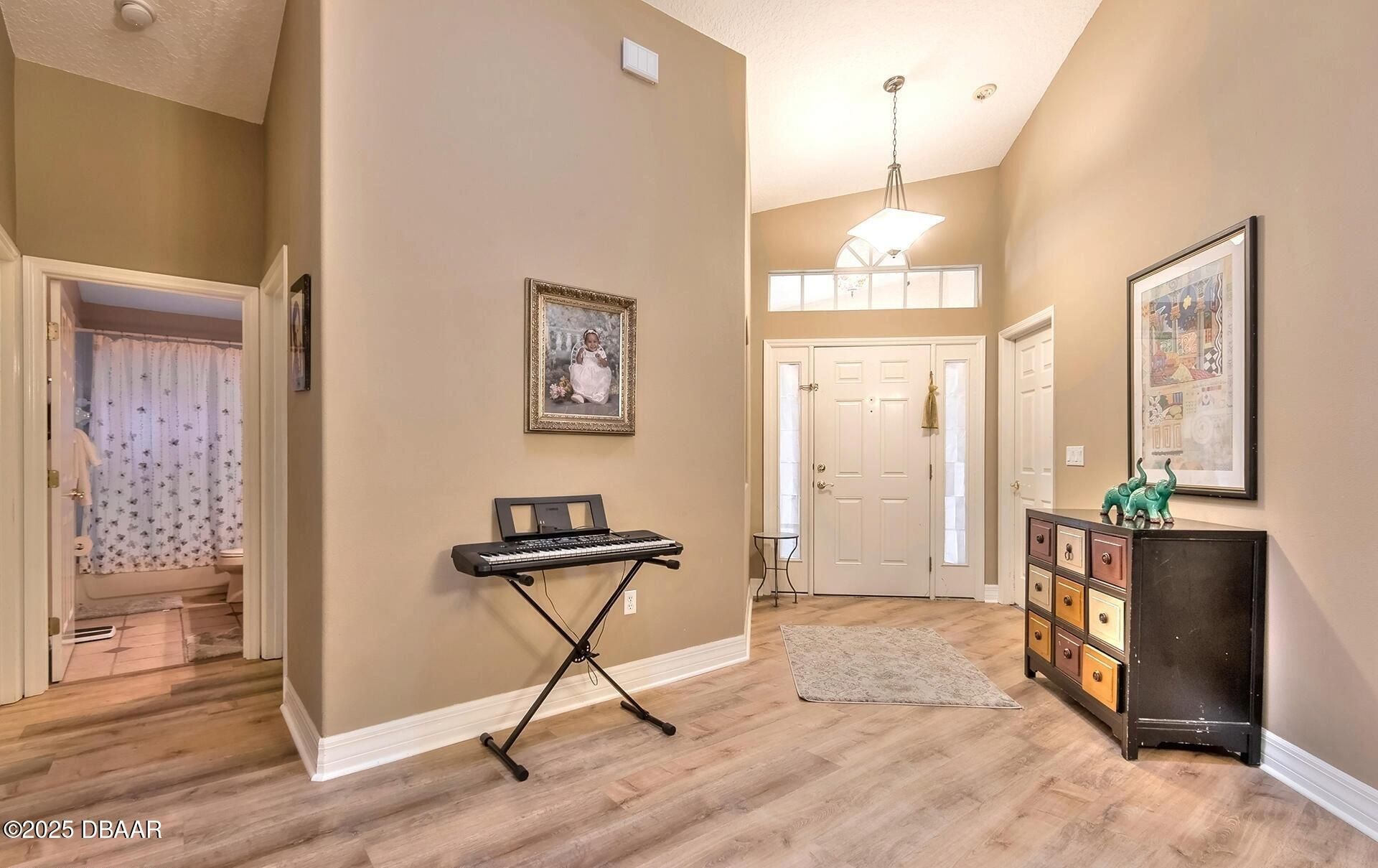 A Fantastic Buying Opportunity in ''Royal Palm'' one of the most sought after Gated Communities in Port Orange. Royal Palm boasts a fabulous Club House with a Premier Gym, 2 Pools, a Jacuzzi, Tennis & Pickleball courts & more! Located less than a mile from the Pavilion Shopping Center, Publix Grocery & fabulous restaurants. This beautiful 4 bed 2 bath Concrete Block home features a NEW ROOF & many upgrades including both Tile & Laminate flooring, Granite countertops & a recently installed Rainsoft Home Water Softener System to name a few. The house greets you with an open concept floor plan with a beautiful Vaulted Ceiling Living Room, adjacent dining room & kitchen. The Master Bed is spacious with marble floors in the Master Bath. This home has a large garage and a huge backyard with plenty of space to fit a swimming pool, if desired. All homes are pressure washed yearly, painted every 5 yrs, fresh mulch yearly, Cable TV, Internet, Lawn, Pest Control are included in the HOA Fees!