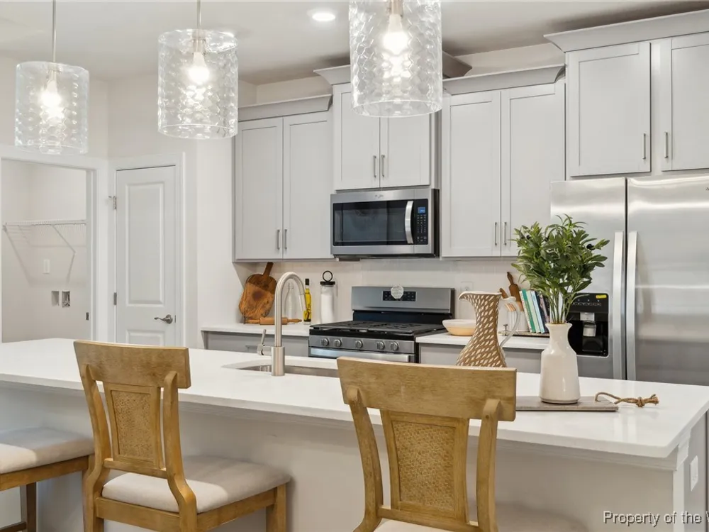 Welcome home to the Lafayette, our two-story townhome boasting 2,879 square feet of flexible space featuring four bedrooms, three full bathrooms, and a two-car garage. The first-floor primary bedroom offers space and luxury with a primary bath featuring two large closets, counter height double vanity, separate water closet for privacy, roomy walk-in shower, complete with tiled walls to the ceiling and tiled floors and glass doors. The additional first floor guest room is convenient with an attached bathroom complete with counter height vanity and tub/shower combination. The kitchen boasts an expansive quartz countertop island that can easily entertain six to eight of your friends, as well as stainless steel appliances, tile backsplash, and is open to the dining and hearth room. The laundry room and access to the two-car garage are conveniently adjacent to the kitchen. Upstairs, you will find an expansive loft area that could offer a second entertainment space, lounge area, you’re only limited by your imagination. Off the loft, you’ll find two large bedrooms and a full bath with tile floor, counter height vanity and storage closet.