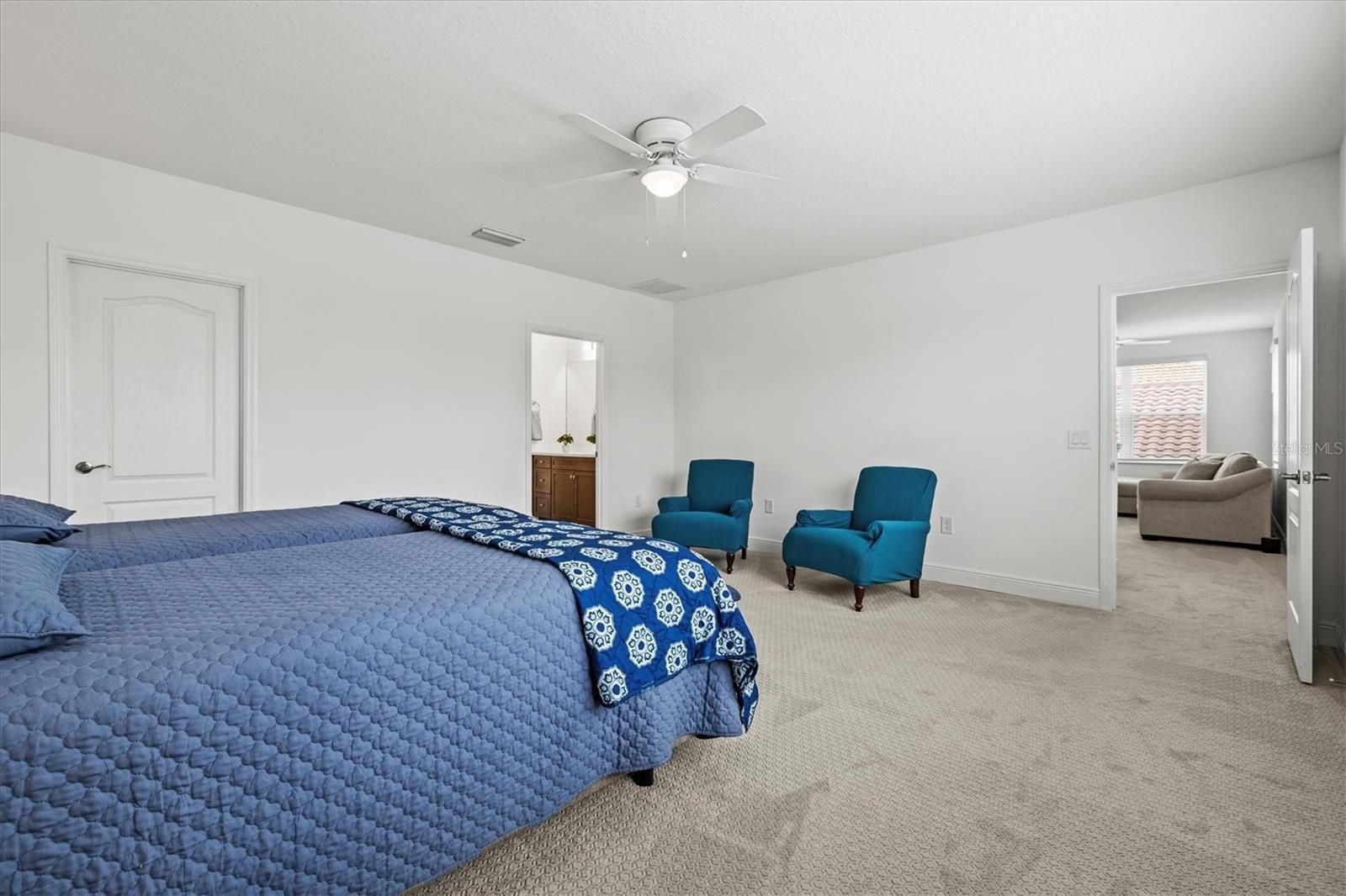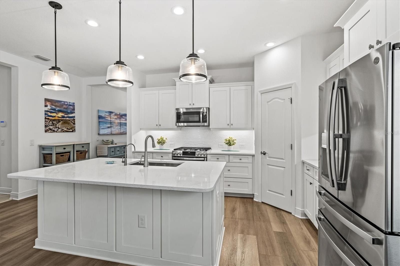Meticulously maintained Laurel II by Neal Communities, this expansive 5-bedroom, 3.5-bath residence is nestled in the highly sought-after Grand Palm at Wellen Park, offering the perfect blend of luxury, comfort, and flexible living. Every bedroom in the home features a walk-in closet, providing exceptional storage and organization throughout. Thoughtfully designed for today’s lifestyle, the home offers dual primary suites, including a private main-level owner’s retreat with double-door bath entry and an oversized walk-in closet. Guests can enjoy a generously sized front-of-home suite with a close by half bath—ideal for hosting guests, working from home, or multigenerational living. A fresh coastal aesthetic flows throughout the home with soft-close light cabinetry, decorative kitchen island paneling, luxury vinyl plank flooring in the main living areas, and upgraded plush carpeting in the bedrooms and loft. The open-concept design is perfect for entertaining, seamlessly connecting the kitchen, dining, and living spaces to the extended screened lanai, which overlooks a private, newly landscaped backyard with southwest-facing exposure—your own peaceful Florida retreat. Upstairs, a generous loft creates an additional living or media space, while three spacious bedrooms and two full bathrooms—including a private ensuite—comfort and privacy for family and guests. This home is loaded with premium upgrades, including Aqua Systems whole-home water softener, reverse osmosis system, BLU-UV air purification, impact-rated windows upstairs, fresh interior paint, and a commercial-grade washer and dryer. The epoxy-coated garage with overhead storage racks adds both functionality and style, while ample closet space and optional furnishings available on a separate contract complete this exceptional offering. Located in one of Venice’s most desirable resort-style communities, residents enjoy access to multiple heated pools, a state-of-the-art fitness center, pickleball, tennis and basketball courts, 15 miles of walking and biking trails, lakes and nature preserves, kayak launch, splash pad, playgrounds, dog parks, and a vibrant clubhouse with year-round social events. Enjoy quick and convenient access to the expressway and I-75, just minutes from your doorstep. Conveniently situated near Costco, Wellen Park, Historic Venice Island, and the area’s beautiful Gulf beaches, this home delivers the ultimate Southwest Florida lifestyle in a beautifully upgraded, move-in-ready package.