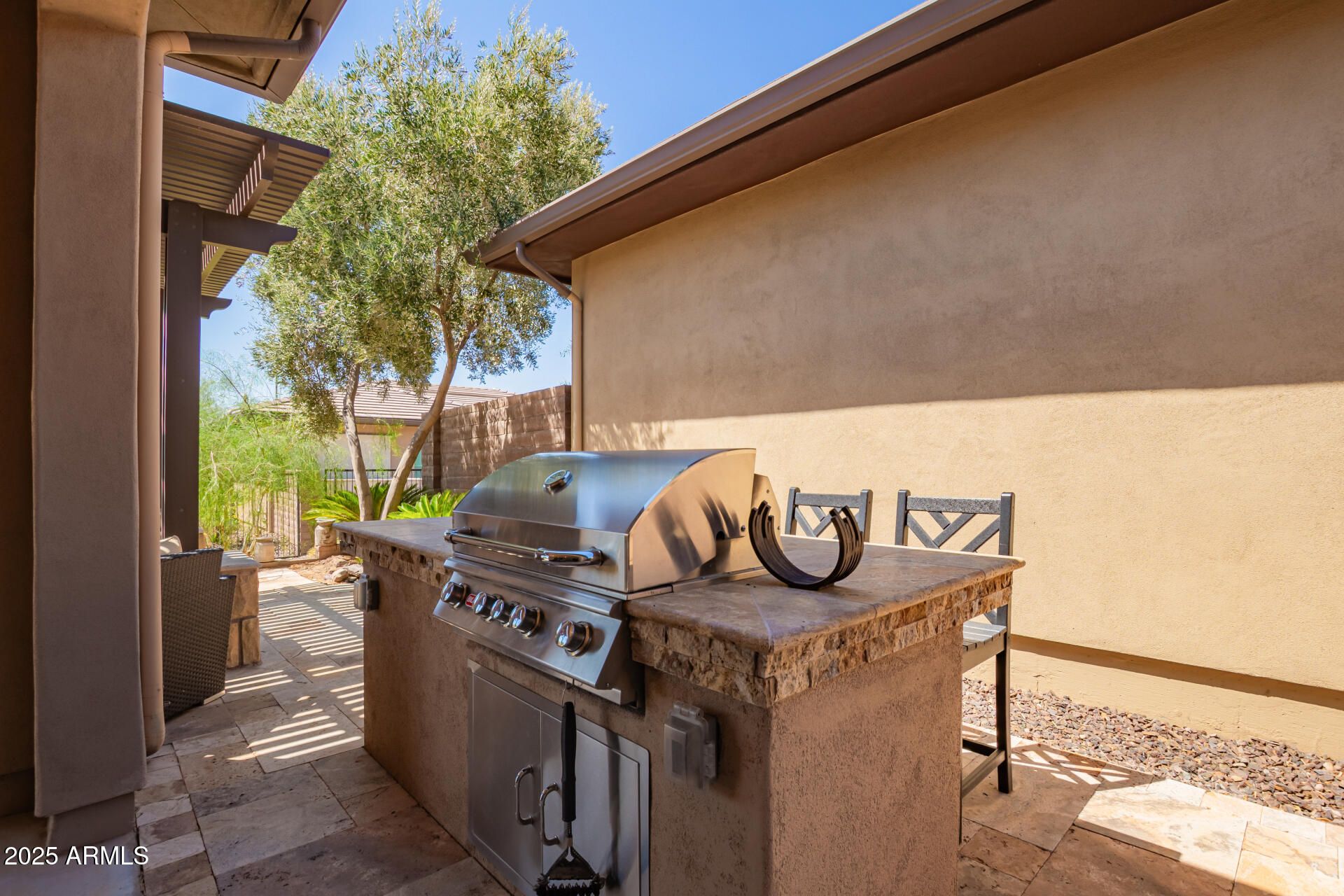 MOTIVATED SELLER! THIS HIGHLY UPGRADED FORMER MODEL HOME IN THE AWARD-WINNING TRILOGY AT VISTANCIA OFFERS A LUXURIOUS, LOW-MAINTENANCE LIFESTYLE. THE HOUSE HAS SOARING 9-FOOT CEILINGS, HIGH-END FLOORING, AND DESIGNER WINDOW TREATMENTS. THE GOURMET KITCHEN IS A CHEF'S DELIGHT, WITH QUARTZ COUNTERTOPS, A DESIGNER GLASS TILE BACKSPLASH, AND A GAS COOKTOP. IT FLOWS INTO AN OPEN-CONCEPT GREAT ROOM, WHICH FEATURES SURROUND SOUND AND CORNER MULTI-SLIDING DOORS THAT CREATE A SEAMLESS TRANSITION TO THE OUTDOORS. THE DREAM CUSTOM PATIO IS PERECT FOR RELAXING AND ENTERTAINING! THE PATIO HAS A BEAUTIFUL WATER FEATURE! RELAX WITH THE SOUND OF YOUR OWN WATERFALL! THE PRIVATE PRIMARY SUITE IS A TRUE RETREAT, WITH A SPA-INSPIRED BATHROOM THAT INCLUDES A WALK-IN SHOWER AND ELEGANT FINISHES.... THE BACKYARD IS AN ENTERTAINER'S DREAM, FEATURING A COVERED PATIO, A SOOTHING WATER FEATURE, SYNTHETIC GRASS, AND A BUILT-IN BULL BBQ WITH BAR SEATING. THE PROPERTY ALSO HAS GREAT CURB APPEAL WITH PROFESSIONALLY MAINTAINED DESERT LANDSCAPING. THIS EXCEPTIONAL, MOVE-IN-READY HOME OFFERS THE BEST OF TRILOGY AT VISTANCIA LIVING. FURNISHINGS ARE AVAILABLE SEPARATELY. THIS PROPERTY IS ALSO FOR LEASE.
