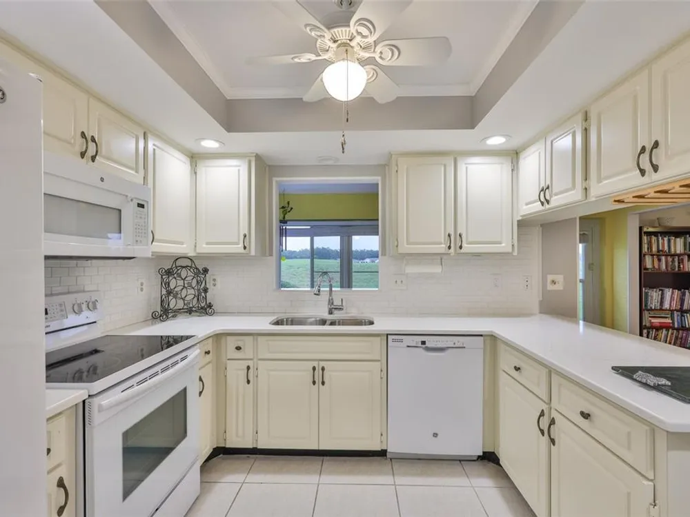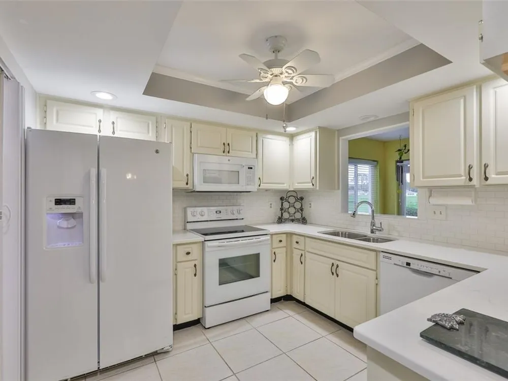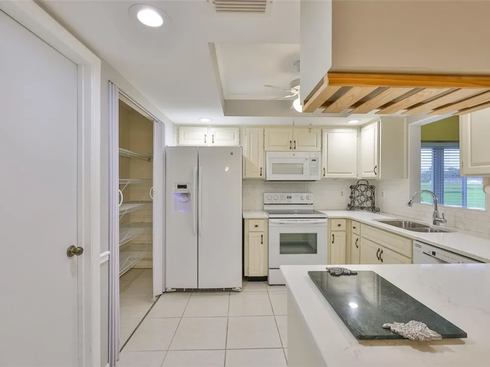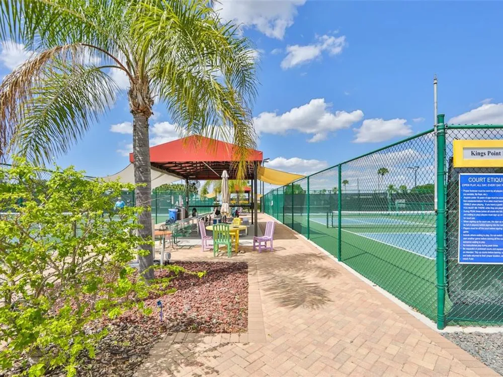 What a deal! Below average Sq.Ft. price. TURNKEY, FULLY FURNISHED, **UPDATED** PET FREE & SMOKE FREE Condo, NO FLOOD ZONE, located right on a GREENBELT (retired golf course)/WATER VIEW w/maximum PRIVACY in backyard, MOVE-IN READY, MAINTENANCE FREE, Augusta floorplan, nestled in highly desired LANCASTER II, in the PREMIER GATED community of Kings Point with 24/7 MANNED SECURITY, is ready to be yours!. Lancaster II is known for its open green space, large trees & meandering streets to create a park-like setting. This 2/2 FULLY FURNISHED condo, offers ULTIMATE PRIVACY from backyard neighbors, as it backs onto a green belt & a WATER barrier. A large SCREENED LANAI welcomes you as you walk up to the front door (perfect for enjoying coffee or tea in the mornings), when you walk in, you have a PANARAMIC VIEW OF THE GREENBELT. OVERSIZED WINDOWS allow Florida sunshine to filter throughout the home. *The living room boasts of a SOLAR TUBE, for natural light, BEAUTIFUL laminate flooring, a LARGE OPEN SPACE to both the dining room & the FLORIDA ROOM. *The REMODELED, SPARKLING, EAT-IN kitchen is SPACIOUS & BRIGHT, with NEWER appliances, LOVELY CORIAN countertops, FULL WALL PANTRY, & LOTS of SOLID WOOD cabinetry for storage. The PASS THRU kitchen window was enlarged for better visibility of the GREEN SPACE & a more spacious feel. *The Florida room is a true JOY, with the vista of the retired GOLF COURSE, large flat TV, along with being filled with an abundance of natural light, due to the LARGE UPDATED WINDOWS. From this room, you have access to the BACK PATIO, which makes watching the wild life, the perfect spot to relax & unwind while enjoying the sea breezes. *The OWNERS SUITE is COMFORTABLE & HUGE with a king size bed, dressers, shelves & still having enough room for a reading nook. It boasts of sliding doors (for tons of NATURAL LIGHT), a ceiling fan, & a REMODELED EN-SUITE BATH with a WALK IN SHOWER, SOFT CLOSE DRAWERS & GRANITE countertops, which matches the guest bathroom. *Guest bedroom is LARGE & INVITING and is conveniently next to the guest bath. *The laundry room is located INSIDE the home and is equipped with a NEW WASHER & DRYER & TONS of storage space. *An AIR-CONDITIONED BONUS ROOM can be used as a workshop, home office, craft or gaming room, your choice! *The 1.5 garage space is perfect for a car & golf cart/bicycles/storage. Kings Point is an ACTIVE 55+ community with luxurious amenities including two clubhouses, 6 heated indoor/outdoor pools, SPAS & hot tubs, craft rooms, fitness center, multiple golf courses, pickle ball, tennis courts, billiards, an 850-seat theater, and numerous weekly activities, social, sports clubs & restaurants, along with scheduled social activities. Kings Point offers free transportation, and golf carts are a popular way to navigate the community and access nearby doctors, hospitals, shopping, banking, and restaurants. HASSLE FREE MAINTENANCE INCLUDES: the building exterior and grounds, premium cable, internet, pest control, recreational facilities, 24/7 security with guarded gates, private roads, water, & sewer. UPDATES: Roof-2020 (Covered by COA); A/C-2021; 2 Bathroom Updates-2021; Hurricane Impact Garage Door-2021; NEWER DOUBLE PANE WINDOWS in Florida Room-2022; Interior Painting-2022-2024; Exterior Painting-2023 (Covered by COA) VOTED #1 Retirement Community in the USA by Realtorcom & Travel & Leisure. ALL FURNISHINGS IN HOME CONVEYS WITH SALE.