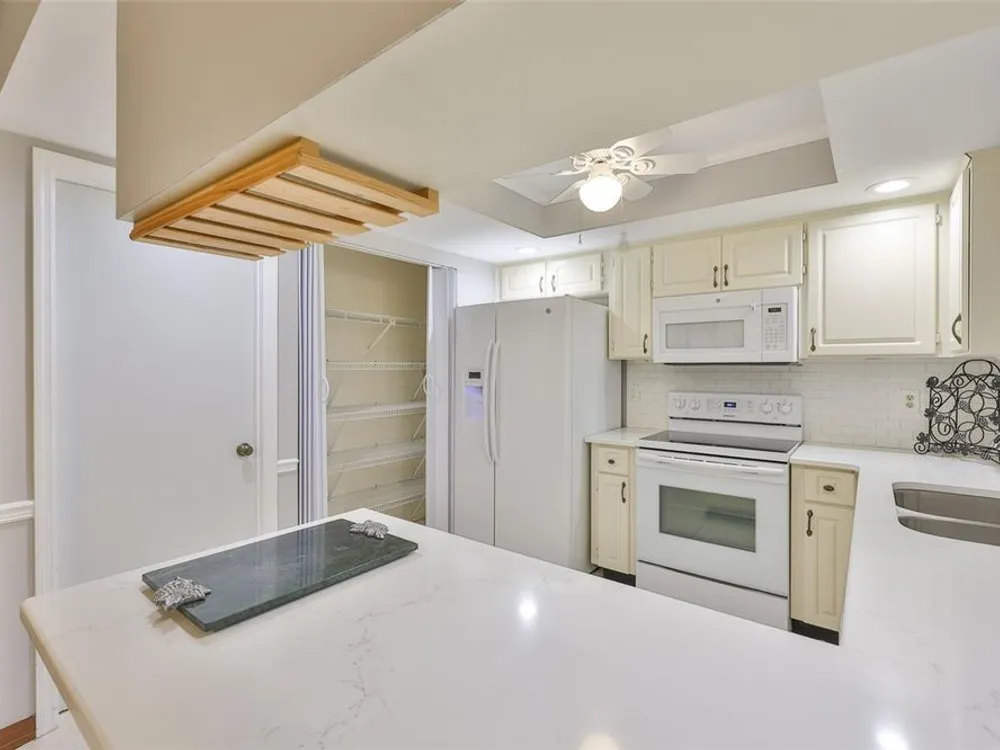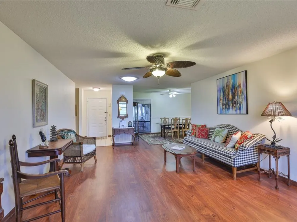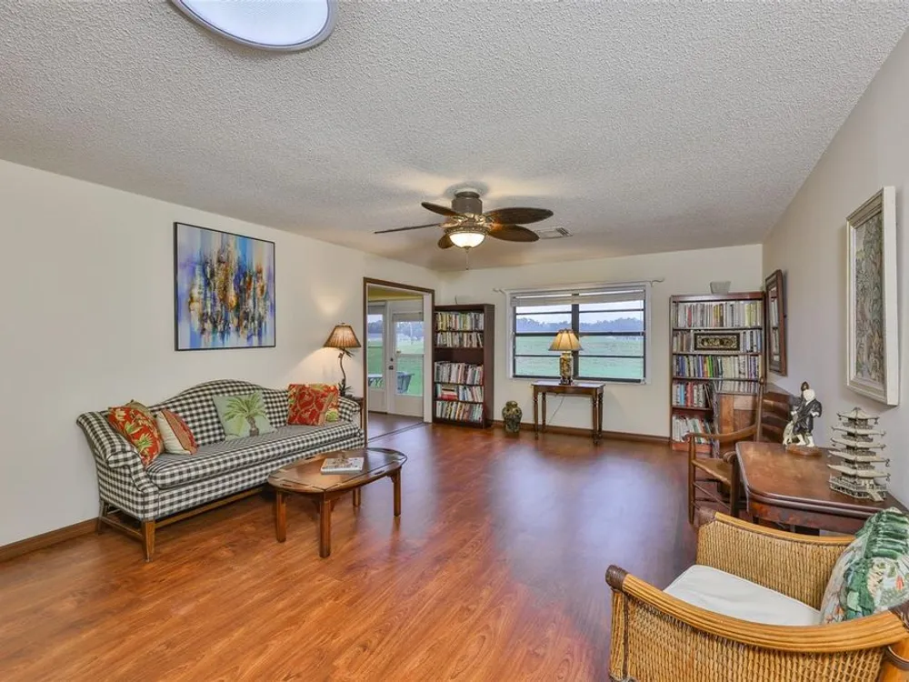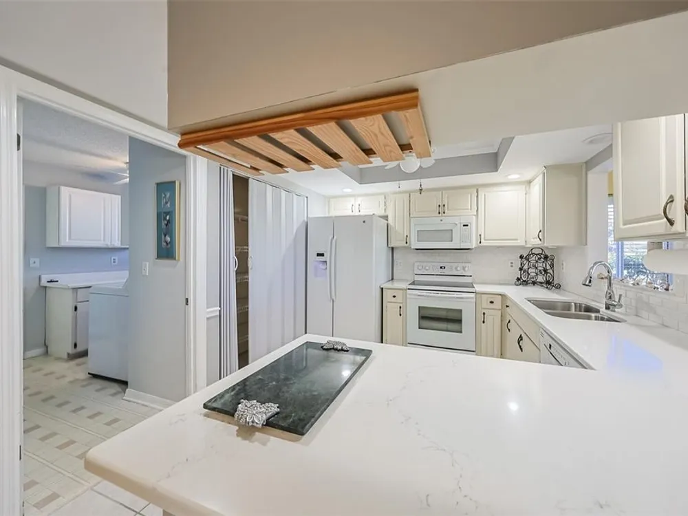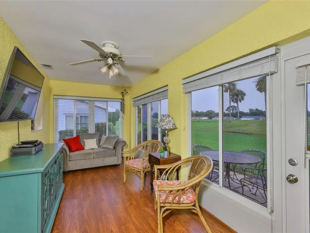 What a deal! Below average Sq.Ft. price. TURNKEY, FULLY FURNISHED, **UPDATED** PET FREE & SMOKE FREE Condo, NO FLOOD ZONE, located right on a GREENBELT (retired golf course)/WATER VIEW w/maximum PRIVACY in backyard, MOVE-IN READY, MAINTENANCE FREE, Augusta floorplan, nestled in highly desired LANCASTER II, in the PREMIER GATED community of Kings Point with 24/7 MANNED SECURITY, is ready to be yours!. Lancaster II is known for its open green space, large trees & meandering streets to create a park-like setting. This 2/2 FULLY FURNISHED condo, offers ULTIMATE PRIVACY from backyard neighbors, as it backs onto a green belt & a WATER barrier. A large SCREENED LANAI welcomes you as you walk up to the front door (perfect for enjoying coffee or tea in the mornings), when you walk in, you have a PANARAMIC VIEW OF THE GREENBELT. OVERSIZED WINDOWS allow Florida sunshine to filter throughout the home. *The living room boasts of a SOLAR TUBE, for natural light, BEAUTIFUL laminate flooring, a LARGE OPEN SPACE to both the dining room & the FLORIDA ROOM. *The REMODELED, SPARKLING, EAT-IN kitchen is SPACIOUS & BRIGHT, with NEWER appliances, LOVELY CORIAN countertops, FULL WALL PANTRY, & LOTS of SOLID WOOD cabinetry for storage. The PASS THRU kitchen window was enlarged for better visibility of the GREEN SPACE & a more spacious feel. *The Florida room is a true JOY, with the vista of the retired GOLF COURSE, large flat TV, along with being filled with an abundance of natural light, due to the LARGE UPDATED WINDOWS. From this room, you have access to the BACK PATIO, which makes watching the wild life, the perfect spot to relax & unwind while enjoying the sea breezes. *The OWNERS SUITE is COMFORTABLE & HUGE with a king size bed, dressers, shelves & still having enough room for a reading nook. It boasts of sliding doors (for tons of NATURAL LIGHT), a ceiling fan, & a REMODELED EN-SUITE BATH with a WALK IN SHOWER, SOFT CLOSE DRAWERS & GRANITE countertops, which matches the guest bathroom. *Guest bedroom is LARGE & INVITING and is conveniently next to the guest bath. *The laundry room is located INSIDE the home and is equipped with a NEW WASHER & DRYER & TONS of storage space. *An AIR-CONDITIONED BONUS ROOM can be used as a workshop, home office, craft or gaming room, your choice! *The 1.5 garage space is perfect for a car & golf cart/bicycles/storage. Kings Point is an ACTIVE 55+ community with luxurious amenities including two clubhouses, 6 heated indoor/outdoor pools, SPAS & hot tubs, craft rooms, fitness center, multiple golf courses, pickle ball, tennis courts, billiards, an 850-seat theater, and numerous weekly activities, social, sports clubs & restaurants, along with scheduled social activities. Kings Point offers free transportation, and golf carts are a popular way to navigate the community and access nearby doctors, hospitals, shopping, banking, and restaurants. HASSLE FREE MAINTENANCE INCLUDES: the building exterior and grounds, premium cable, internet, pest control, recreational facilities, 24/7 security with guarded gates, private roads, water, & sewer. UPDATES: Roof-2020 (Covered by COA); A/C-2021; 2 Bathroom Updates-2021; Hurricane Impact Garage Door-2021; NEWER DOUBLE PANE WINDOWS in Florida Room-2022; Interior Painting-2022-2024; Exterior Painting-2023 (Covered by COA) VOTED #1 Retirement Community in the USA by Realtorcom & Travel & Leisure. ALL FURNISHINGS IN HOME CONVEYS WITH SALE.