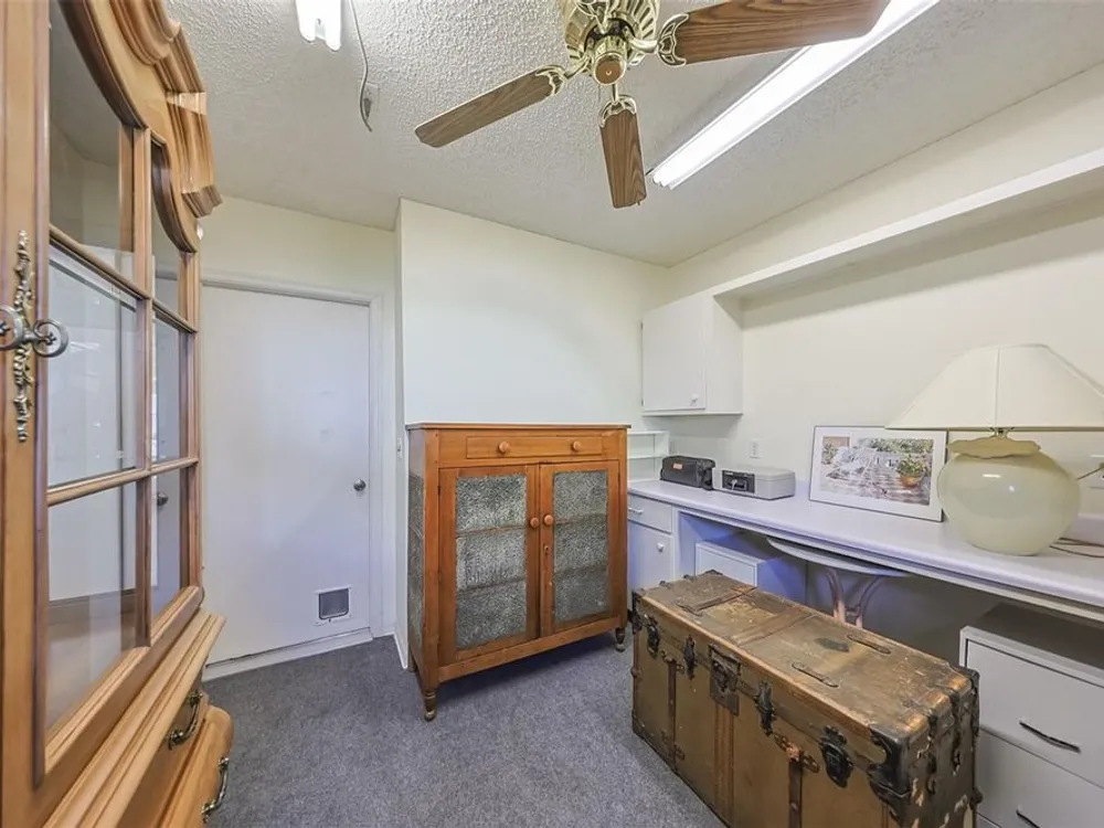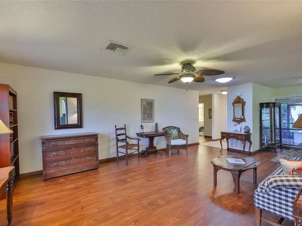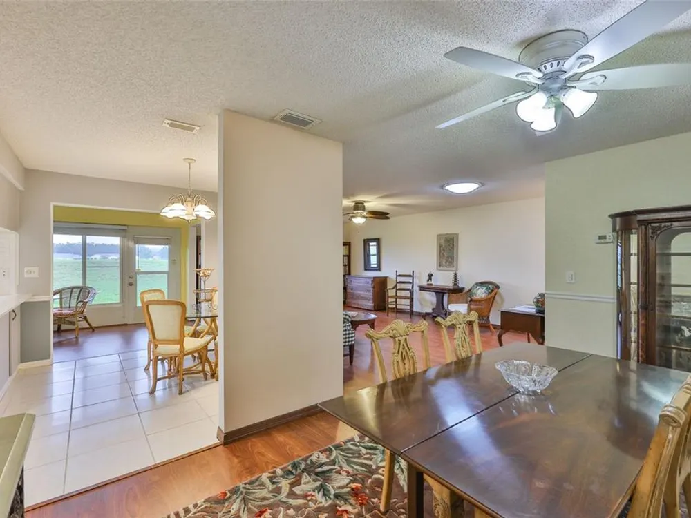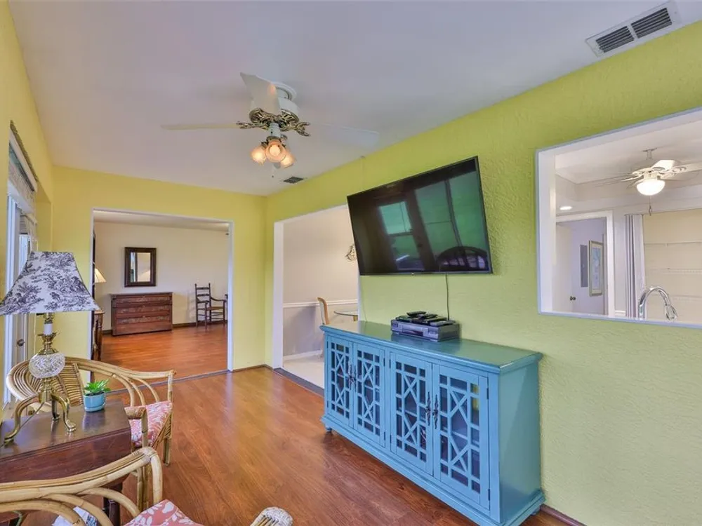 - Ceiling Fan(s), Eat-in Kitchen, Living/Dining Room, Main Level Primary, Solid-Wood Cabinets, Thermostat, Vaulted Ceiling(s), Window Treatments