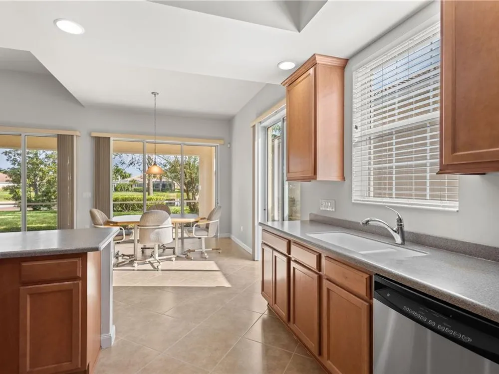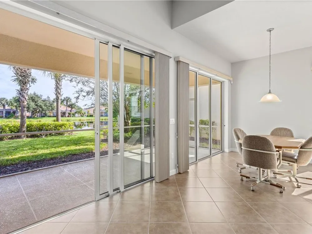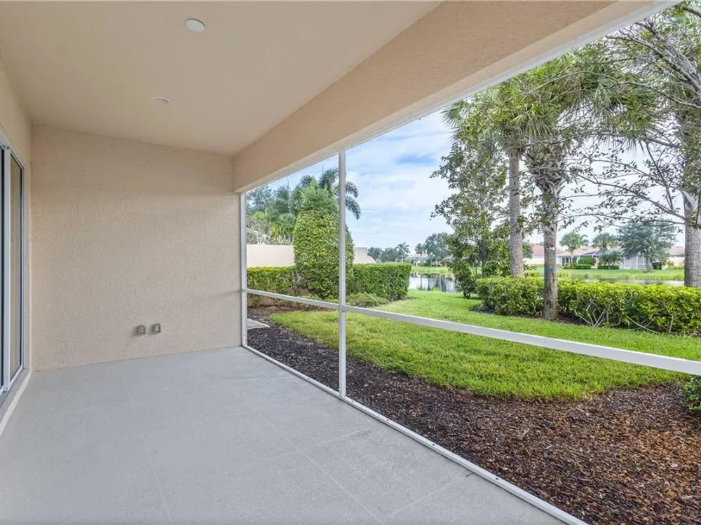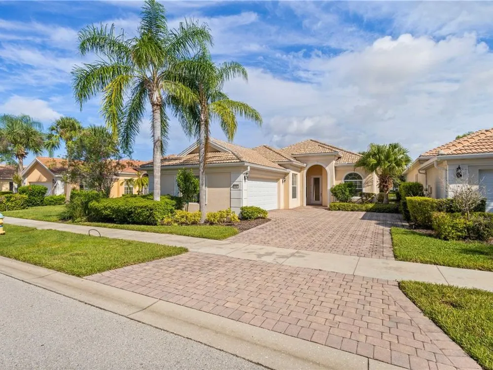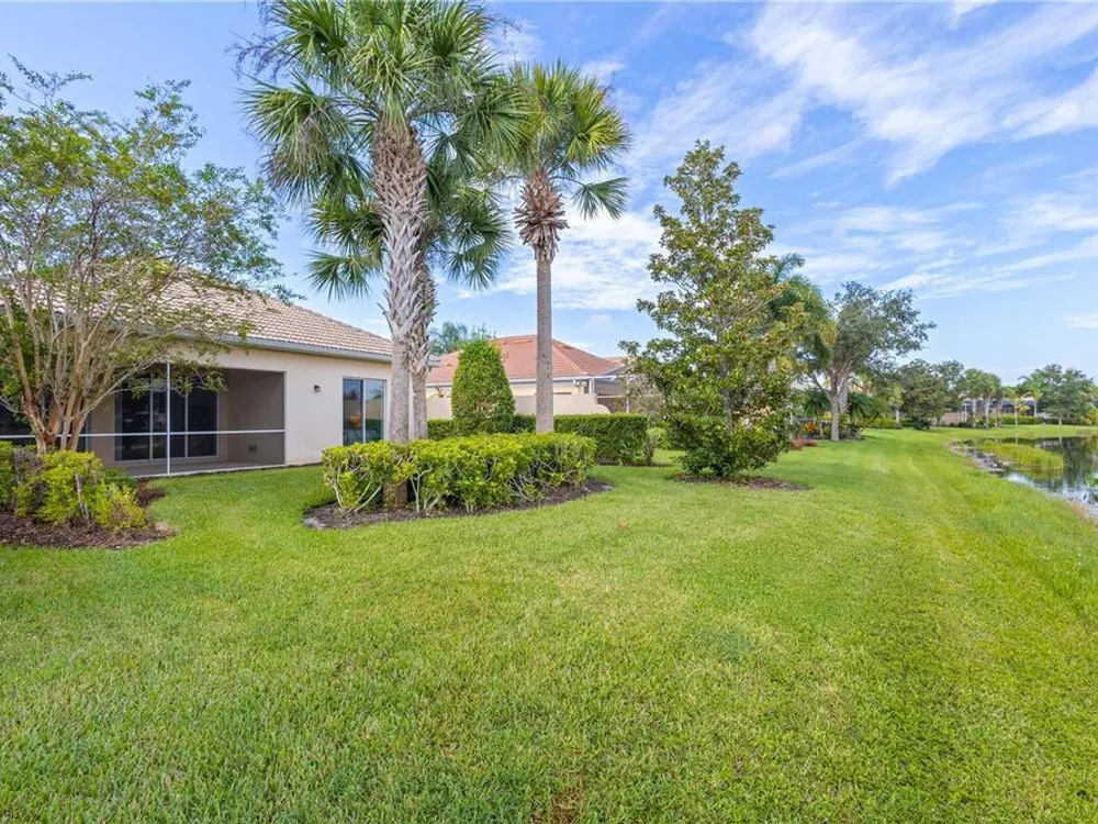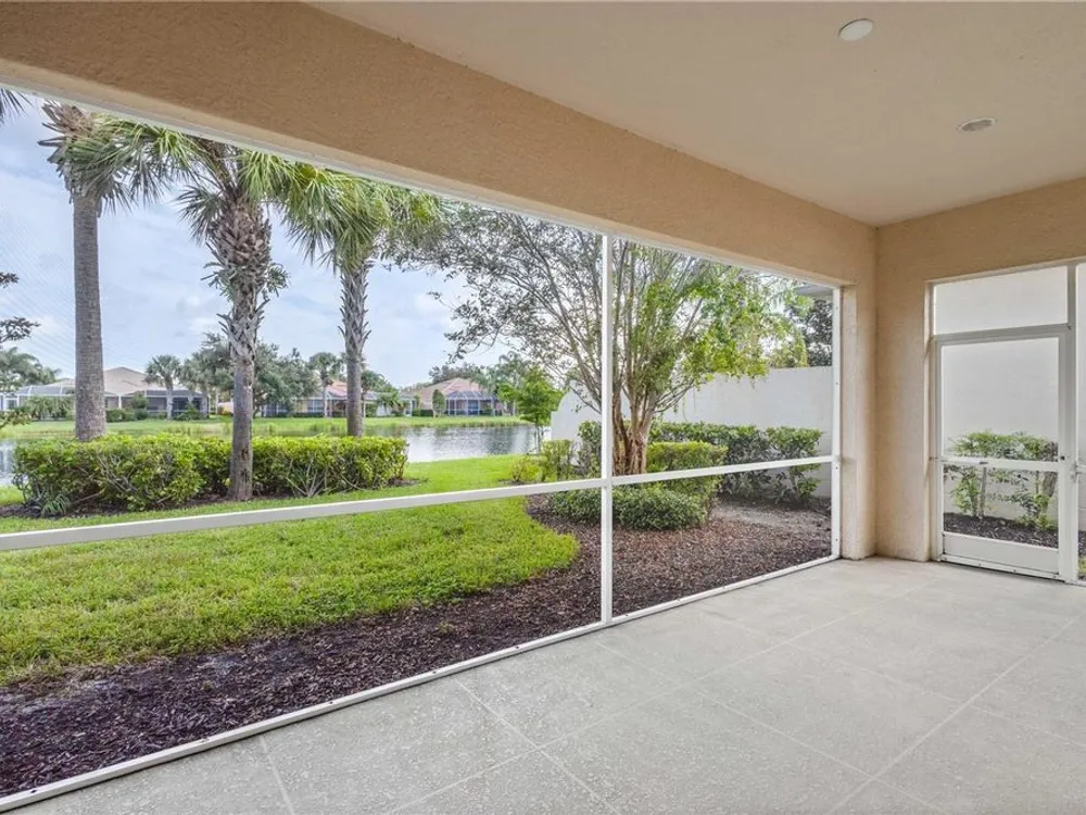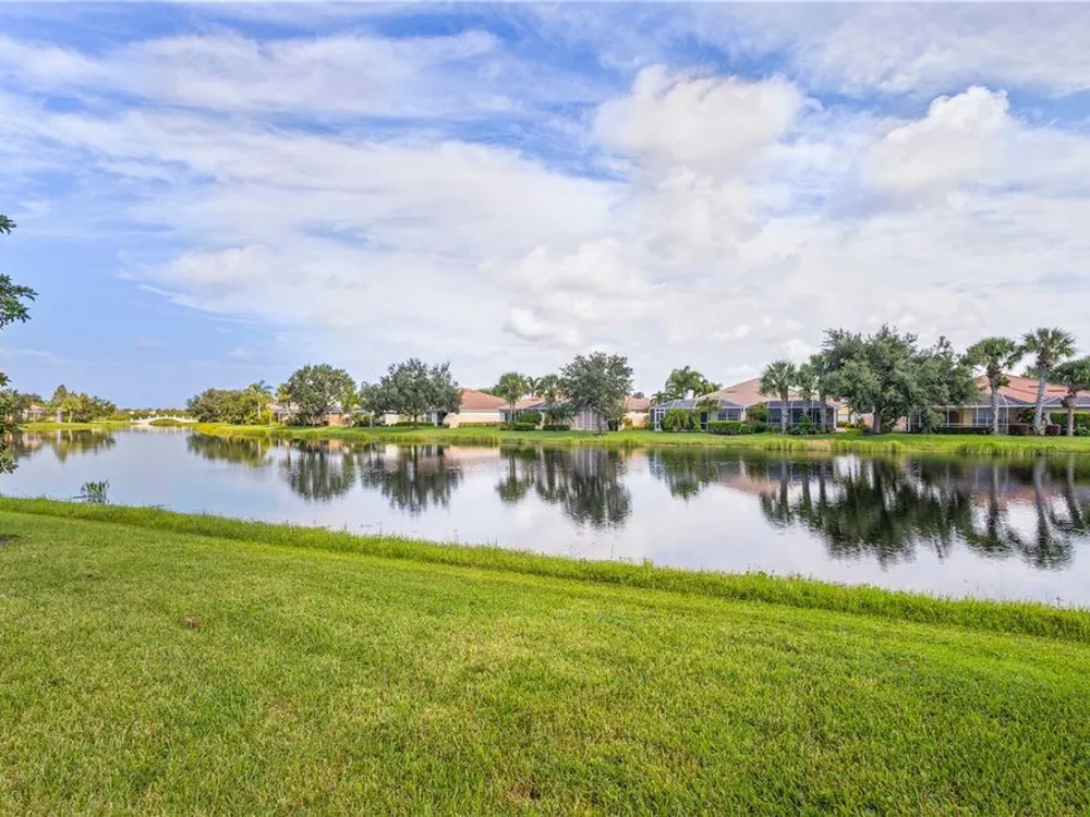 One or more photo(s) has been virtually staged. $105k price improvement! Welcome to this impeccably maintained Divosta Oakmont model, owned by a single owner. As you enter, you'll be greeted by breathtaking lake views and an open, flowing layout that seamlessly connects the Great Room, Dining Room, and Kitchen—ideal for both daily living and entertaining. The kitchen is a chef’s dream, featuring maple cabinetry, Corian countertops, and stainless steel appliances, all designed to keep you engaged with guests in the adjacent living area. High ceilings and 8-foot doors enhance the home’s spacious ambiance. The air conditioning system, just four years old, includes a transferable warranty and has been serviced biannually, with two additional service visits already paid for. The primary suite serves as a serene retreat with ample closet space and generously sized his and hers bathrooms. The split floor plan ensures privacy, with two additional bedrooms and a guest bathroom on the opposite side of the home. A versatile den offers a quiet space for work or relaxation and can be easily closed off for uninterrupted focus. The large laundry room features a drop sink and cabinets for added storage, leading to an oversized side-entry garage with an extended driveway. Step outside to the expansive covered and screened lanai, perfect for dining, entertaining, or simply relaxing while taking in the gentle breeze and panoramic water views. Privacy walls between you and your neighbors further enhance your outdoor enjoyment. Islandwalk is a pristine 830-acre gated community surrounded by lakes and preserves. With a full-time Lifestyle Director, the community offers a wealth of events, clubs, and activities to foster a vibrant social life. Amenities include three amenity buildings, a heated lagoon pool, a heated outdoor lap pool, bocce ball courts, pickleball courts, Har-Tru tennis courts, a dog park, a playground, a basketball court, and a community garden. The beautifully maintained grounds feature miles of nature and biking trails, Venetian bridges, and scenic water views. The location is exceptionally convenient, with a rear exit to Cool Today Park, the Atlanta Braves Spring Training Stadium, and the new Downtown Wellen Park, all just a short bike or golf cart ride away. Enjoy easy access to shopping, medical services, dining, and the stunning Gulf Beaches, with quick access to I-75. This home is being offered turnkey with all furnishings, dishes, cookware, silverware, TVs, and more. Don’t miss this opportunity to embrace the Florida sunshine and relaxed lifestyle!