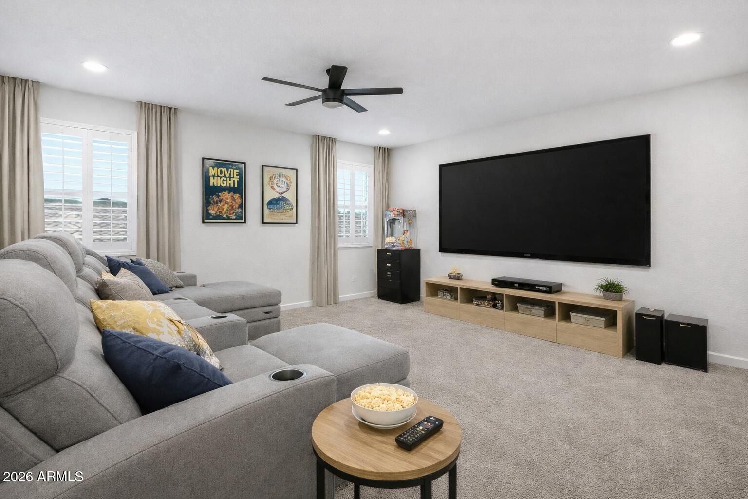 Welcome to this must-see home with over $150K worth of upgrades. Offering a spacious open floor plan, warm modern finishes, and an inviting backyard perfect for gathering with family and friends. The outdoor space features a sparkling swimming pool, relaxing spa, outdoor fireplace, TV hookup, and a covered patio designed for year-round enjoyment. Inside, the chef-inspired kitchen includes white shaker cabinets, white quartz countertops, a large island, an induction cooktop with an option for gas, and a stainless steel hood vent. A large enclosed home office/study with custom built-ins provides a comfortable and functional space to work or unwind. Upstairs, you'll find a generous owner's suite, three guest bedrooms, three full bathrooms, a spacious laundry room, and a bright open loft Nestled in a quiet pocket at the back of Vistancia, this home offers easy access to beautiful walking and hiking trails, greenbelts, mountain views, and playgrounds. Just minutes away, the newly completed Fry's shopping center brings everyday convenience with a coffee shop, veterinary and dental services, restaurants, and more. Thoughtfully upgraded and warmly designed, this home blends comfort, style, and convenience in one of the most sought-after areas of Vistancia/North Peoria