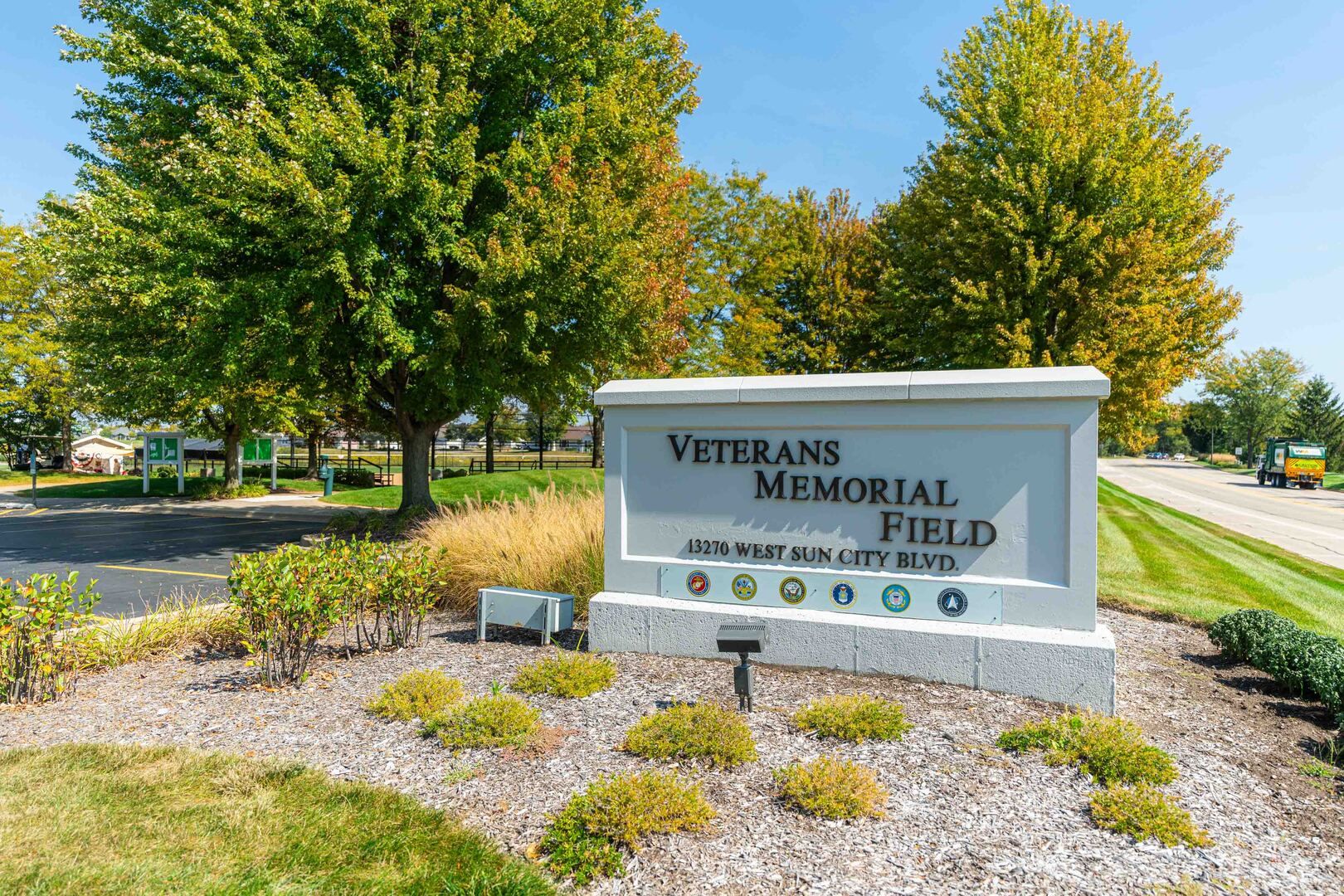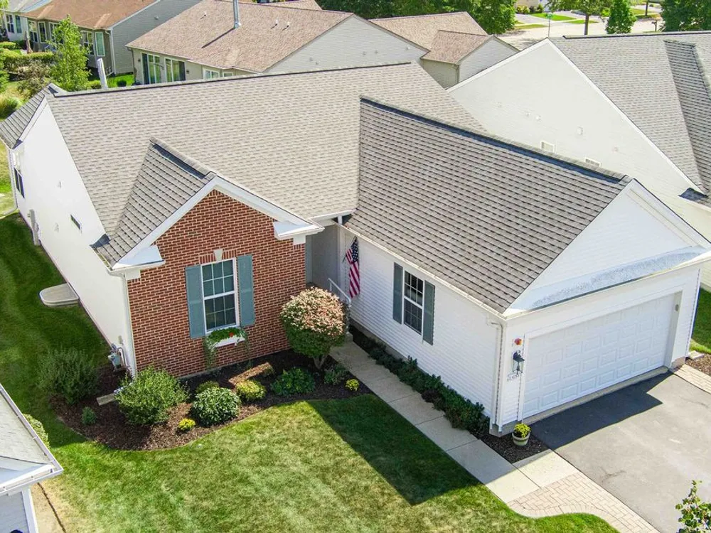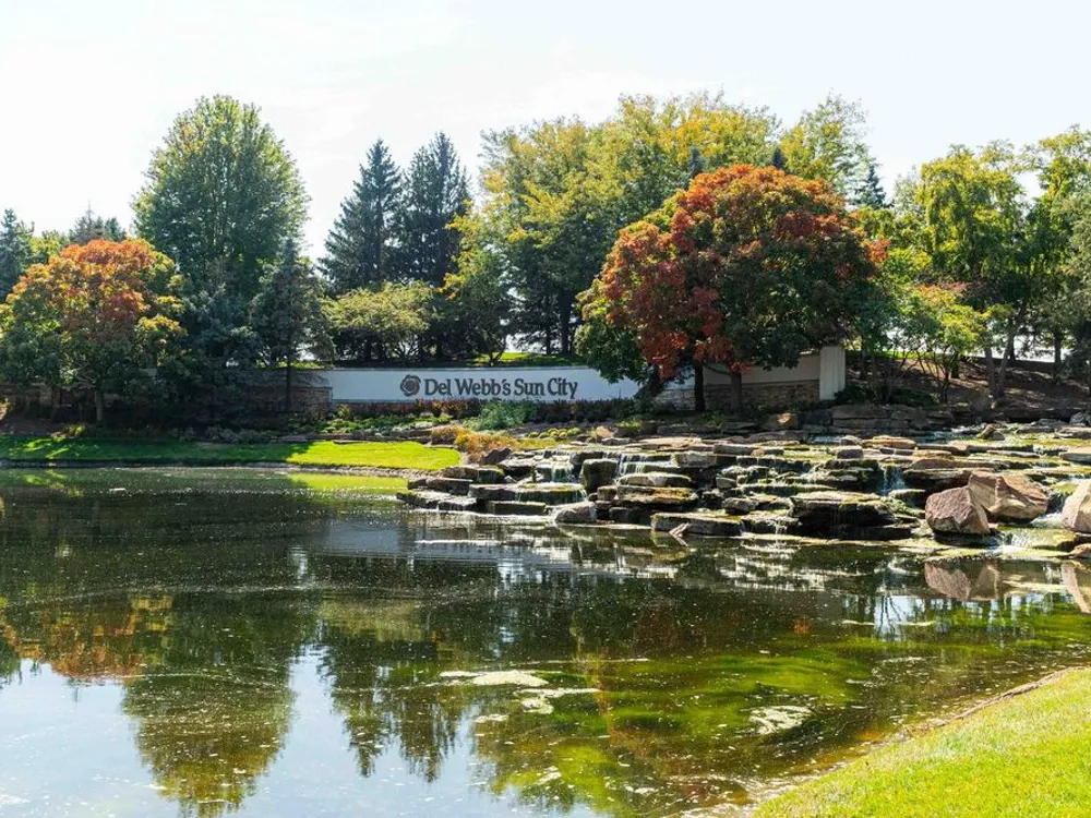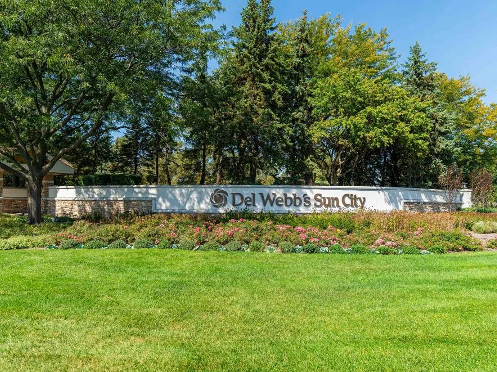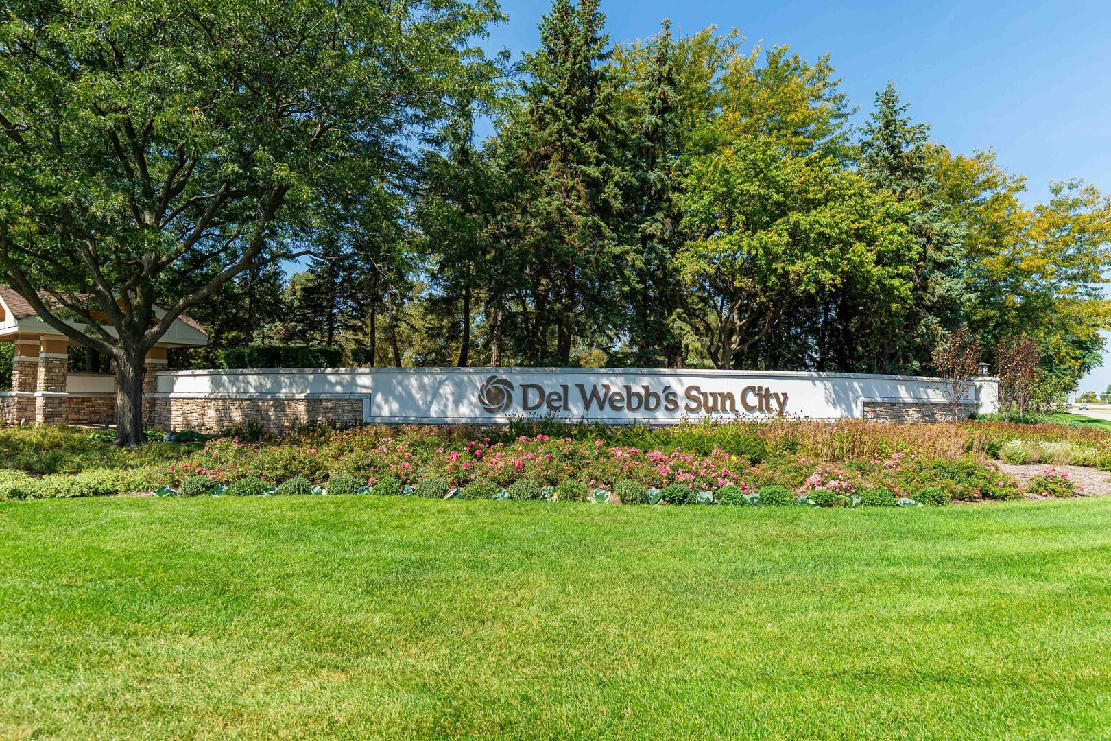 Well maintained ranch home located in the gated 55 and older in Highly Desirable Del Webb Sun City Community, which offers pools, golf course, tennis courts, steakhouse house restaurant, and much More! This two bedroom with a first floor office / study, includes two full bathrooms (1/2 bath roughed in basement), and a full unfished basement! Master bedroom offers a bay window - roomy bath - and a walk in closet. Custom vertical and pleated blinds thru-out. Open floor viewing kitchen / LR / DR / and Sun Room all in one glance. New Roof and gutters installed in 2019, new water heater in 2023, new sump pump in 2024, new front aluminum hand rail in 2024. Great location with sun room and living room looking down an open green area between rear homes. Upgraded elevation with front brick on exterior of home. Enter home to an open staircase to basement that currently offers a stair lift (seller will remove if buyer wants). Bright and airy floor plan (9 foot ceilings thru-out) offers tons of natural light. Kitchen offers raised panel oak cabinets, white appliances, and Corian countertops. 11ft x 10ft Sunroom really adds openness to the first floor with its many windows and access to the rear yard patio. First floor utility room has front loan washer and dryer and a utility sink, plus a service door to the garage. Huge unfinished basement has outside walls insulated - 1/2 bath roughed in - high efficiency gas furnace / water heater. As built, the home is equip with a sprinkler system. Driveway was widened on both sides with brick pavers for added exterior parking. Great Home - make your appointment to see it soon!