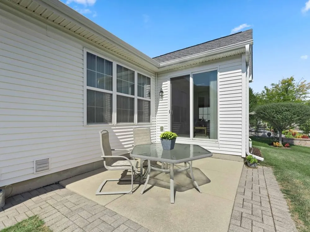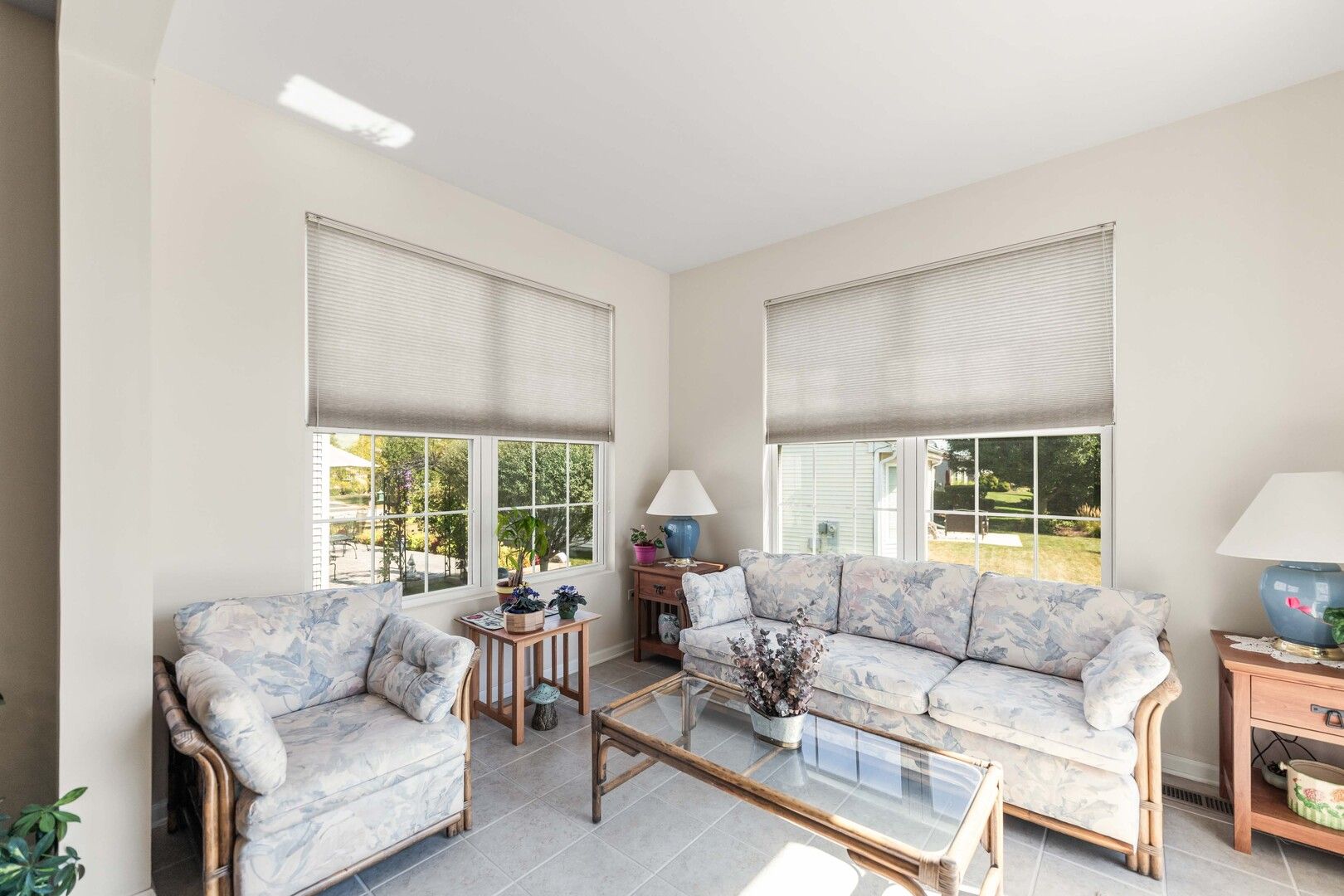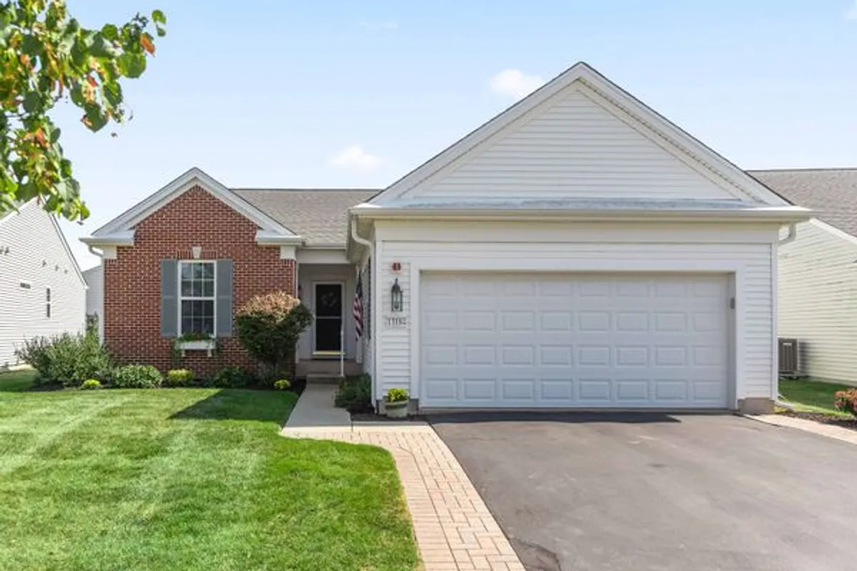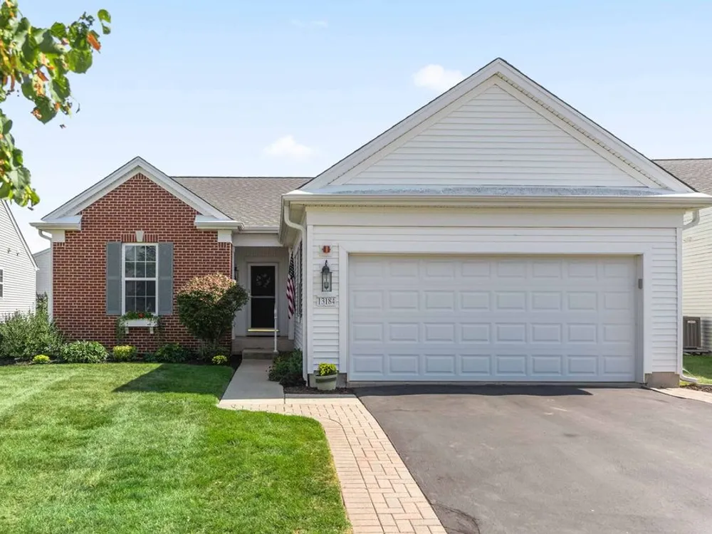 Well maintained ranch home located in the gated 55 and older in Highly Desirable Del Webb Sun City Community, which offers pools, golf course, tennis courts, steakhouse house restaurant, and much More! This two bedroom with a first floor office / study, includes two full bathrooms (1/2 bath roughed in basement), and a full unfished basement! Master bedroom offers a bay window - roomy bath - and a walk in closet. Custom vertical and pleated blinds thru-out. Open floor viewing kitchen / LR / DR / and Sun Room all in one glance. New Roof and gutters installed in 2019, new water heater in 2023, new sump pump in 2024, new front aluminum hand rail in 2024. Great location with sun room and living room looking down an open green area between rear homes. Upgraded elevation with front brick on exterior of home. Enter home to an open staircase to basement that currently offers a stair lift (seller will remove if buyer wants). Bright and airy floor plan (9 foot ceilings thru-out) offers tons of natural light. Kitchen offers raised panel oak cabinets, white appliances, and Corian countertops. 11ft x 10ft Sunroom really adds openness to the first floor with its many windows and access to the rear yard patio. First floor utility room has front loan washer and dryer and a utility sink, plus a service door to the garage. Huge unfinished basement has outside walls insulated - 1/2 bath roughed in - high efficiency gas furnace / water heater. As built, the home is equip with a sprinkler system. Driveway was widened on both sides with brick pavers for added exterior parking. Great Home - make your appointment to see it soon!