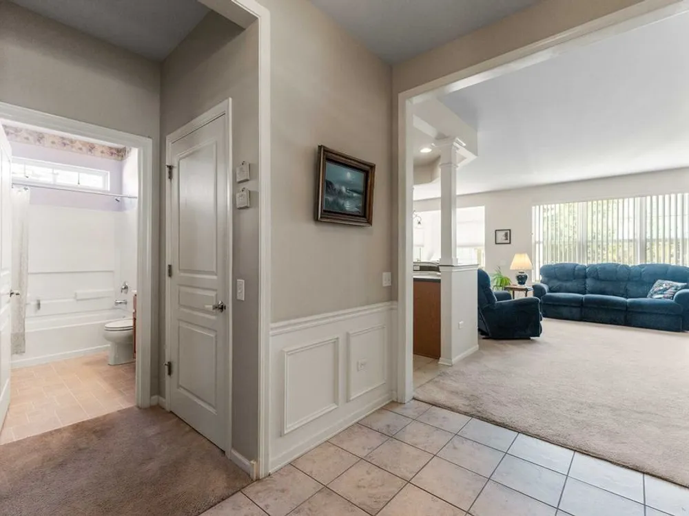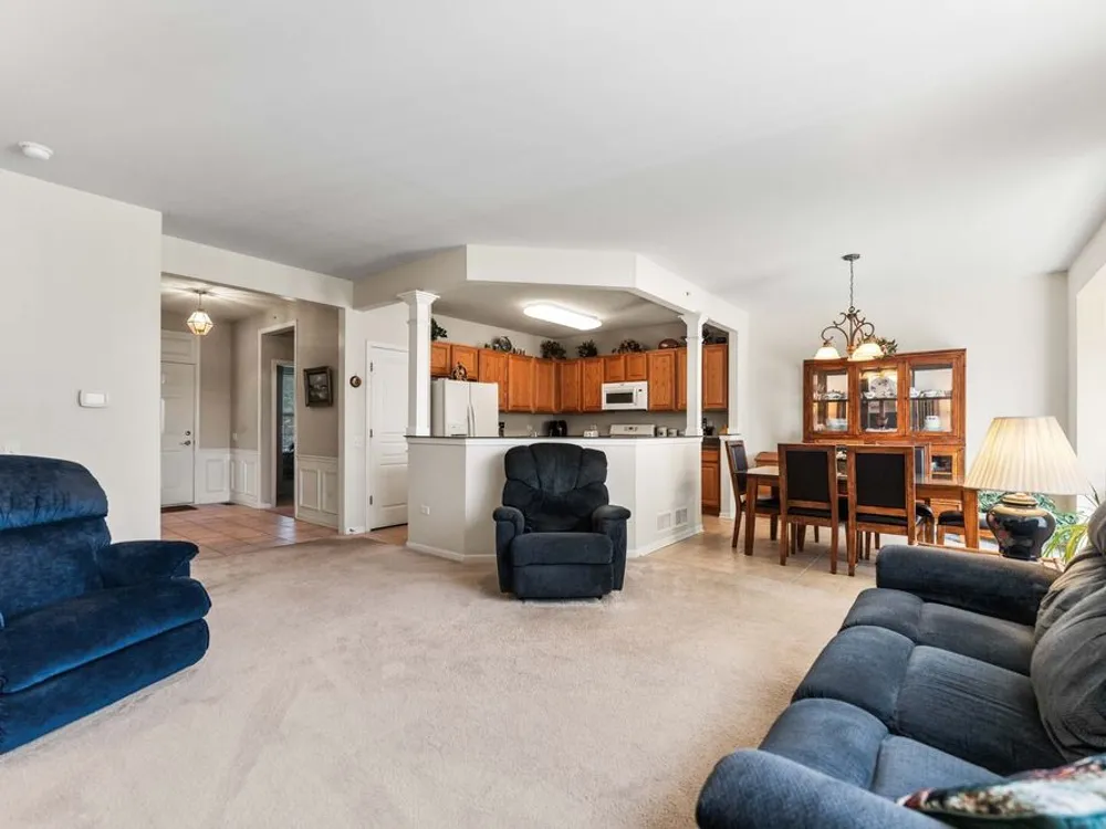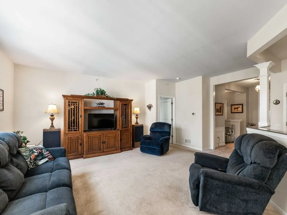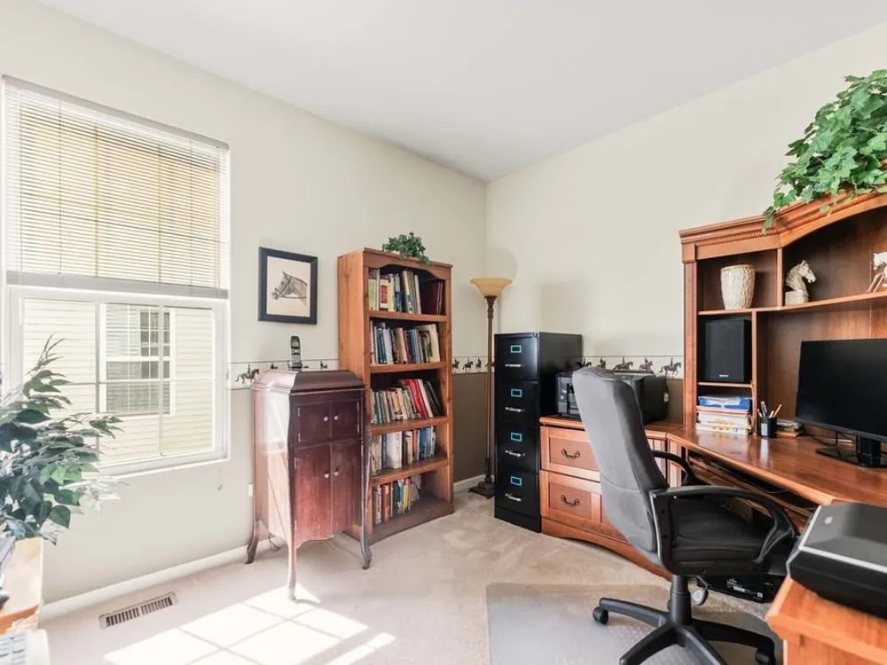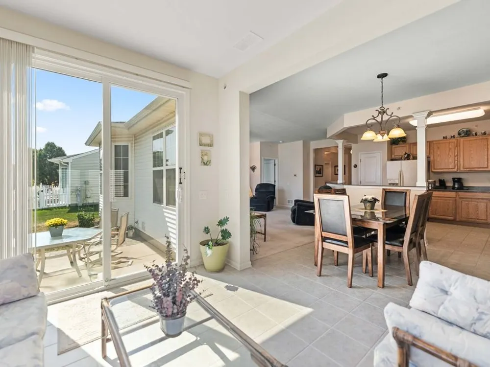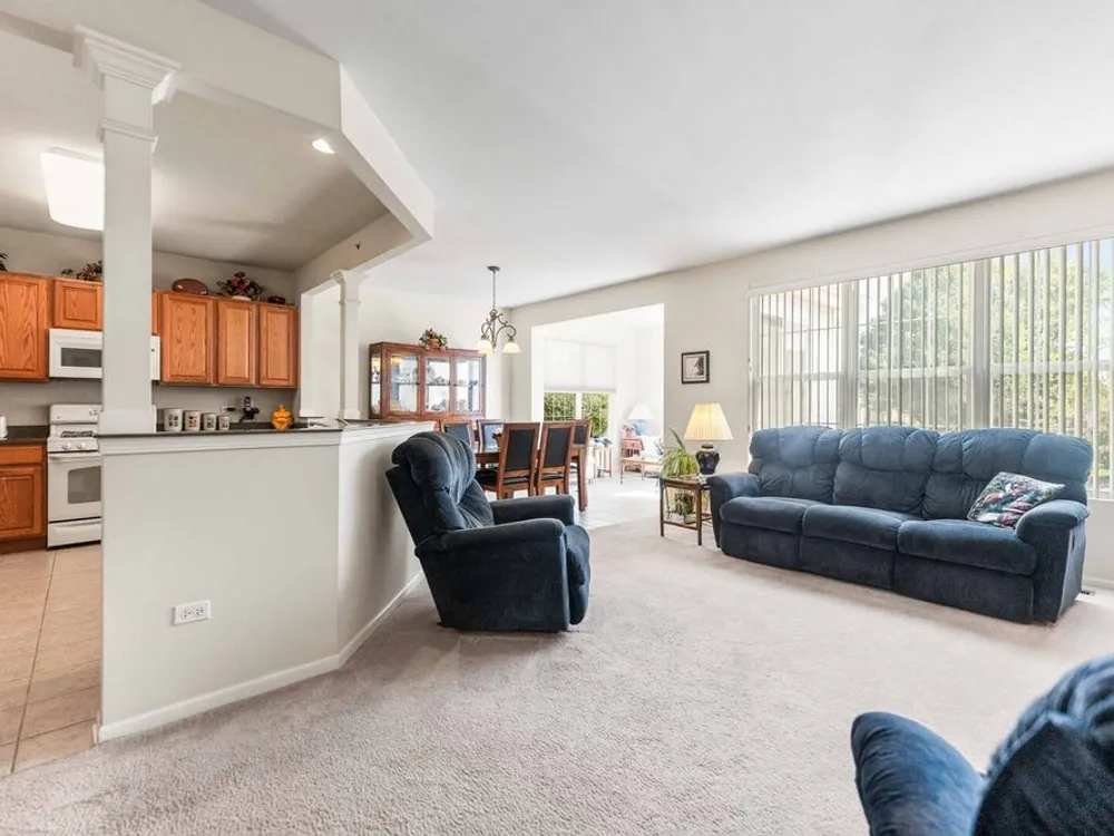 Well maintained ranch home located in the gated 55 and older in Highly Desirable Del Webb Sun City Community, which offers pools, golf course, tennis courts, steakhouse house restaurant, and much More! This two bedroom with a first floor office / study, includes two full bathrooms (1/2 bath roughed in basement), and a full unfished basement! Master bedroom offers a bay window - roomy bath - and a walk in closet. Custom vertical and pleated blinds thru-out. Open floor viewing kitchen / LR / DR / and Sun Room all in one glance. New Roof and gutters installed in 2019, new water heater in 2023, new sump pump in 2024, new front aluminum hand rail in 2024. Great location with sun room and living room looking down an open green area between rear homes. Upgraded elevation with front brick on exterior of home. Enter home to an open staircase to basement that currently offers a stair lift (seller will remove if buyer wants). Bright and airy floor plan (9 foot ceilings thru-out) offers tons of natural light. Kitchen offers raised panel oak cabinets, white appliances, and Corian countertops. 11ft x 10ft Sunroom really adds openness to the first floor with its many windows and access to the rear yard patio. First floor utility room has front loan washer and dryer and a utility sink, plus a service door to the garage. Huge unfinished basement has outside walls insulated - 1/2 bath roughed in - high efficiency gas furnace / water heater. As built, the home is equip with a sprinkler system. Driveway was widened on both sides with brick pavers for added exterior parking. Great Home - make your appointment to see it soon!