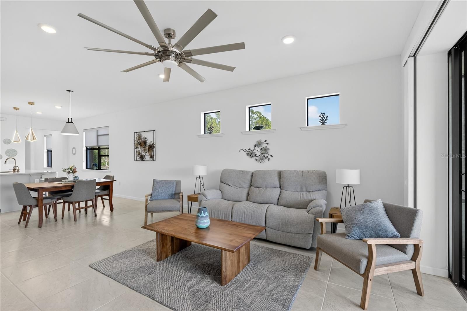 - Ceiling Fan(s), High Ceilings, Open Floorplan, Main Level Primary, Solid Surface Counters, Walk-In Closet(s), Window Treatments