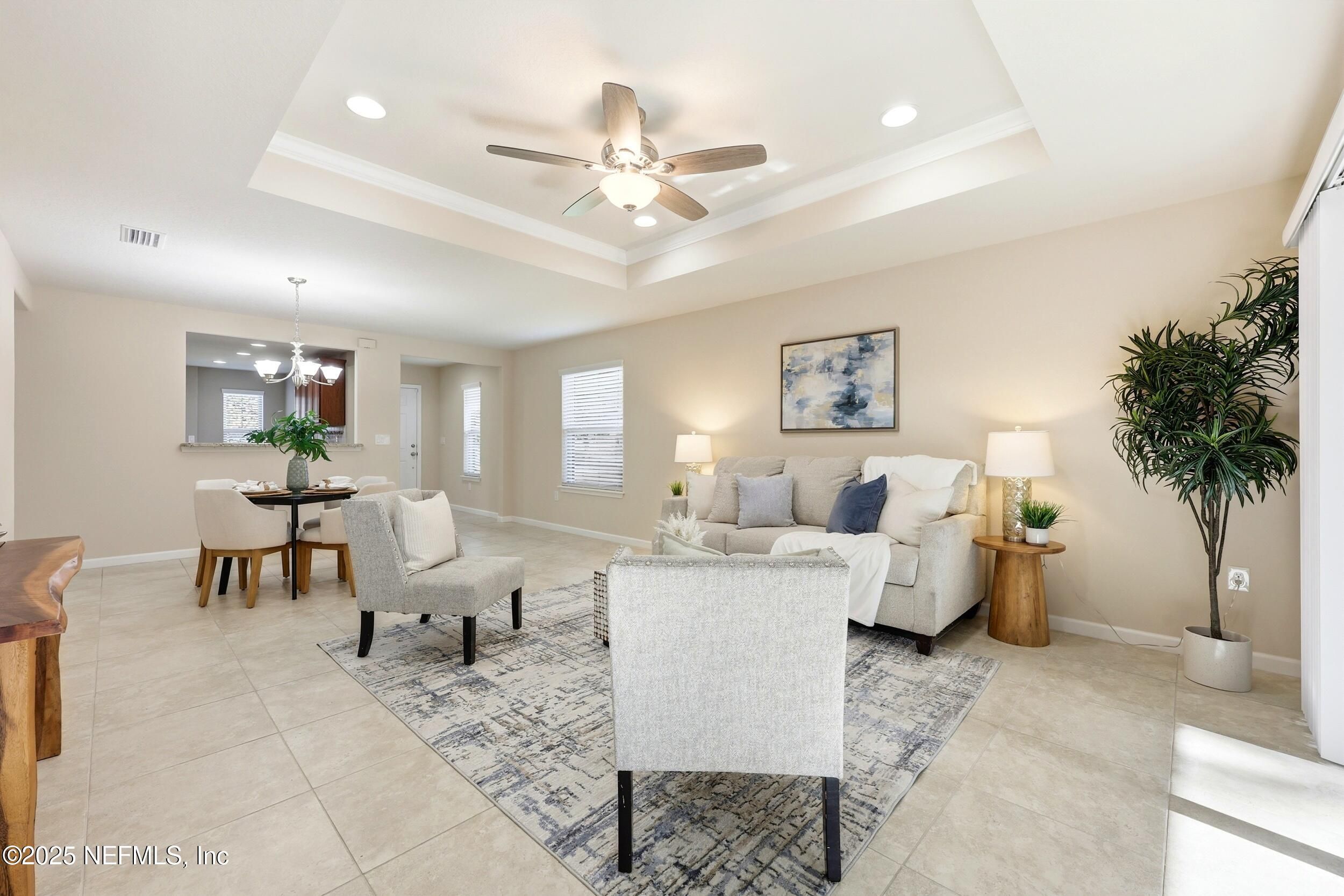 Welcome to 132 Cypress Bay Drive, an impeccably maintained home in the sought-after Del Webb Nocatee 55+ community. This recently painted pristine home offers 3-bedrooms, 2-bathrooms and generous side yards with a private backyard—perfect for enjoying your own peaceful retreat. The open floor plan features tray ceilings in the living room and primary bedroom, adding height and a touch of architectural elegance. Every detail has been thoughtfully maintained—from fresh interior paint including the front and garage doors to refreshed flower beds and a freshly washed driveway—making this home truly turn-key ready. You'll be surprised by how much storage this home offers. Closets in every bedroom, two linen closets (including an oversized one in the primary suite) and a hallway closet provide ample storage space. There's also overhead storage in the garage and upgraded garage flooring. Enjoy the resort-style amenities including a state-of-the-art fitness center, indoor and outdoor pools, tennis and pickle ball courts, bocce ball, a library and countless social clubs and events, classes, scenic walking trails, a community garden & golf cart paths. Whether you're looking to relax, stay active, or make new connections, this home and community offer the perfect next chapter. Don't miss your chance to own one of the most private and well-kept homes in Del Webb. Schedule your showing today!