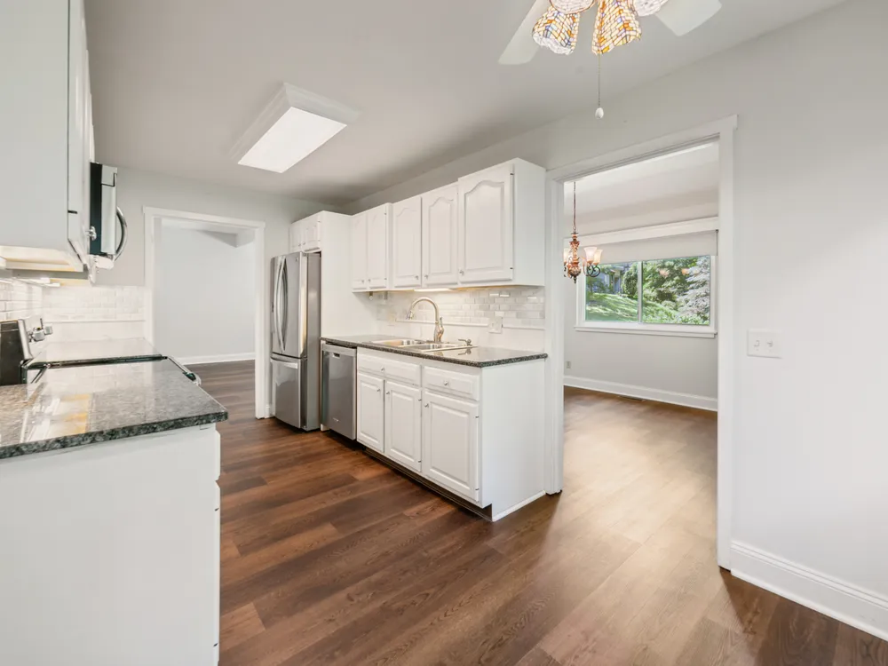 Start your next chapter in this freshly painted 3 bedroom 2 bath unit with new luxury vinyl plank flooring throughout. New split system heating and central air conditioning installed in 2022. The gorgeous kitchen features stainless steel appliances (the range has double ovens) and granite countertops with sparkling white stone backsplash. The primary bedroom suite contains double closets in addition to a walk-in dressing area containing a second double closet and bath with walk-in shower. The livingroom with fireplace and slider leads out to a private, lightly wooded fieldstone patio and backyard. Utilize storage in the insulated attic with pull down stairs and plywood flooring. All energy conscious thermalpane windows and slider. Don't miss the opportunity to make this updated, well maintained unit yours! Enjoy all the amenities the Heritage Village country club lifestyle offers or simply take in quiet country living! HOA's include cable and internet service, 24-hour security, pool heating and maintenance, library, ponds and walking trails, snow and trash removal, exterior lighting, exterior building maintenance, road repair and maintenance and landscaping.