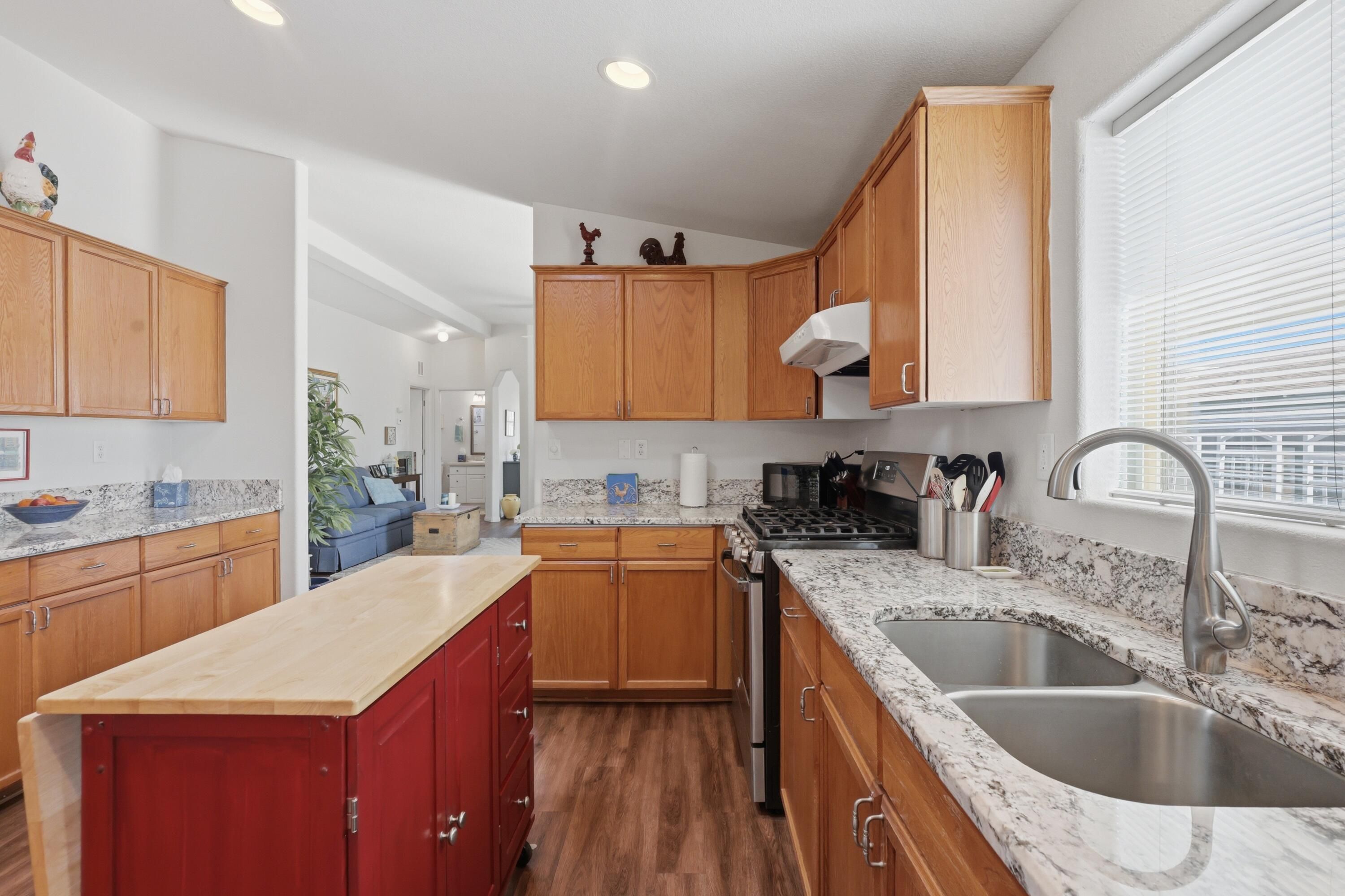 Welcome to this beautifully maintained home in a desirable 55+ community offering comfort, functionality, and modern touches throughout. The open floor plan creates a bright and inviting living space. The kitchen features granite countertops and stainless steel refrigerator, dishwasher and stove, making it both stylish and practical. This home has been very well maintained and includes thoughtful updates such as a newer roof and a recently installed garbage disposal. The spacious bedrooms provide plenty of comfort, while a flexible bonus room offers the potential to be used as a home office, hobby room, or additional bedroom with the addition of a privacy door. The oversized two-car garage includes built-in cabinetry, providing excellent storage and organization.