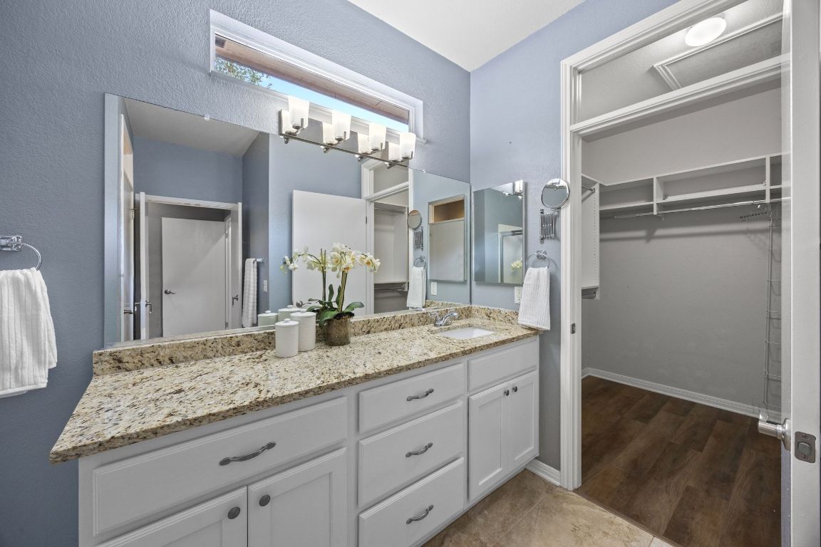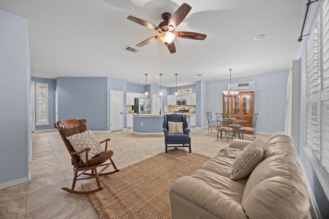 - Breakfast Bar, Ceiling Fan(s), Granite Counters, High Ceilings, Main Level Primary, Open Floorplan, Recessed Lighting, Walk-In Closet(s)