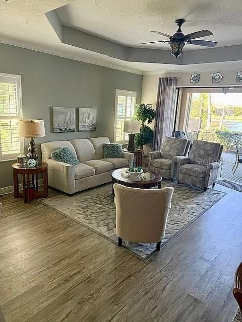 Step into effortless Florida living with this pristine, turnkey waterfront villa, beautifully appointed with quality furniture, tasteful décor, and curated finishes throughout. Located in the prestigious, guard-gated community of Boca Royale Golf & Country Club, this residence offers serene lake views and is just minutes from Southwest Florida’s stunning beaches. This thoughtfully updated home features wood-look vinyl flooring throughout, a spacious great room with an elegant tray ceiling, and refined 4-inch crown and floor molding that enhance the home’s upscale feel. The turnkey interior includes quality furnishings that perfectly complement the space, allowing for immediate enjoyment or a seamless seasonal retreat. The updated kitchen showcases stylish cabinetry and quartz countertops, while glass-panel French doors open to a versatile den—ideal as a home office or additional guest space. Set on a generously sized lot overlooking the lake, the home offers peaceful water views and a relaxed indoor-outdoor lifestyle. Every detail has been carefully maintained, making this residence truly move-in ready—just bring your suitcase. Residents of Boca Royale enjoy an exceptional resort-style lifestyle with 24-hour guard-gated security, two clubhouses with dining, tennis and racquetball courts, and a championship 18-hole golf course. Additional amenities include a driving range, putting green, chipping and pitching areas, sand bunker, and Pro Shop. The community also features six lighted Har-Tru clay tennis courts, eight lighted pickle ball courts, and a variety of golf, racquet, fitness, and social memberships. The elegant Georgian-style clubhouse offers panoramic golf course views and multiple dining options, from fine dining in the Fairway Dining Room to casual meals at the 19th Hole and the Outdoor Dining Pavilion. The Resort Pool amenity center provides a resort-style pool, spa, and clubroom facilities for year-round enjoyment. Perfectly situated in Englewood, Boca Royale is surrounded by pristine lakes and nature preserves while offering easy access to beaches, shopping, and dining—making this turnkey waterfront villa an exceptional opportunity for refined, carefree Florida living.