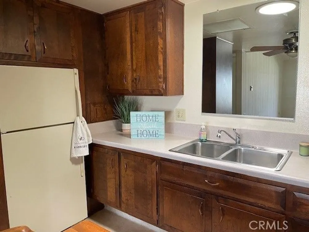 (Mutual 9-207-I) OPPORTUNITY KNOCKS ... now is your chance to make this unit into your perfect home - just add a little TLC! Located on a lovely courtyard with a large "L" shaped covered patio, a large storage closet that has been made into a workshop - complete with a vice and drawers, plus there is another storage cabinet at the side patio for your extra treasures. This light and bright two bedroom, one bath, has dual pane windows with the exterior living room and bedroom walls being raised giving more wall space for furniture and it gives that home feel, built-in microwave, solar tube and skylights. A new kitchen Formica counter-top will be installed during escrow, buyer has the choice of color with 3 to pick from. One Assigned Carport in Building #104; Space #19.