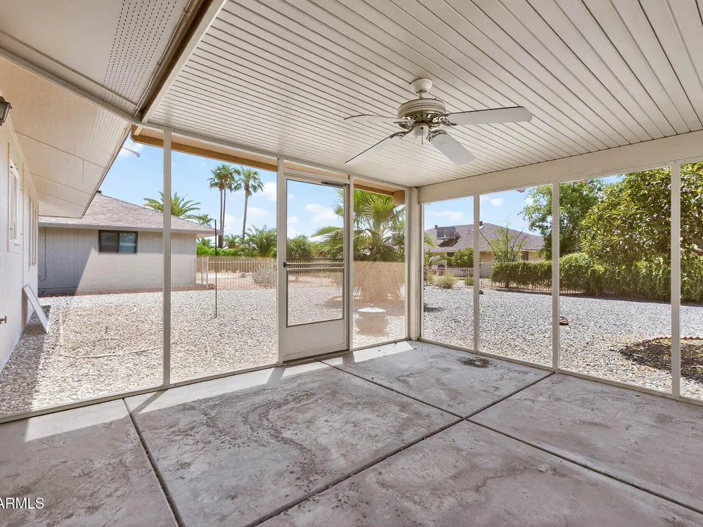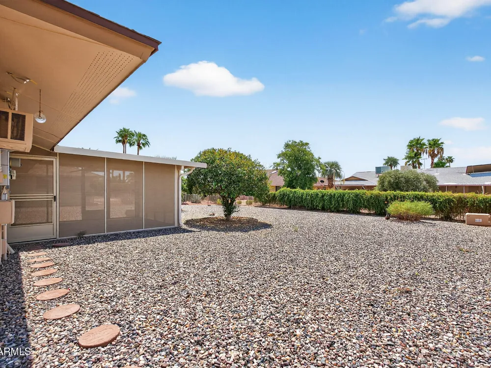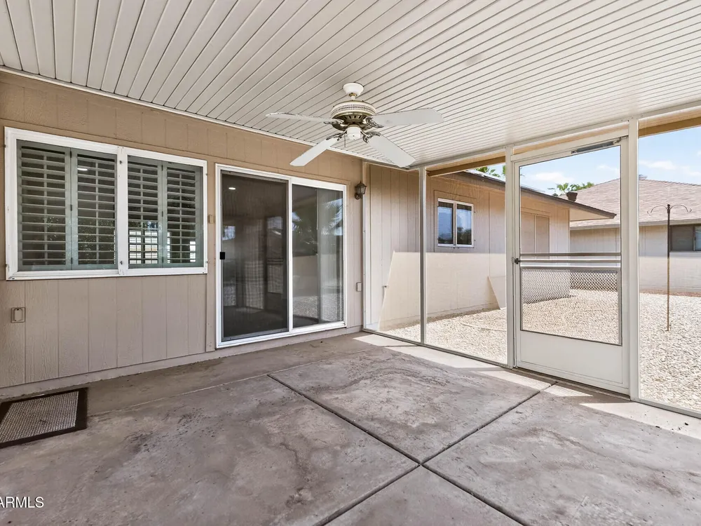 Beautifully maintained and move-in ready, this 1,531 sq ft expanded Bradford model offers a bright open floorplan with plantation shutters throughout. Major updates include a new roof (2017), HVAC (2023), water heater (2017), and fresh interior paint (2025). Double-pane vinyl windows enhance efficiency, while new bedroom carpet (2025) adds comfort. Enjoy the screened-in porch added just 3 years ago, plus an exterior repaint completed 2 years ago. All the updates have been done! This home is ready for you to enjoy Sun City West living at its best, where residents enjoy 7 golf courses, 4 recreation centers, pools, fitness, pickleball, clubs, and endless activities.