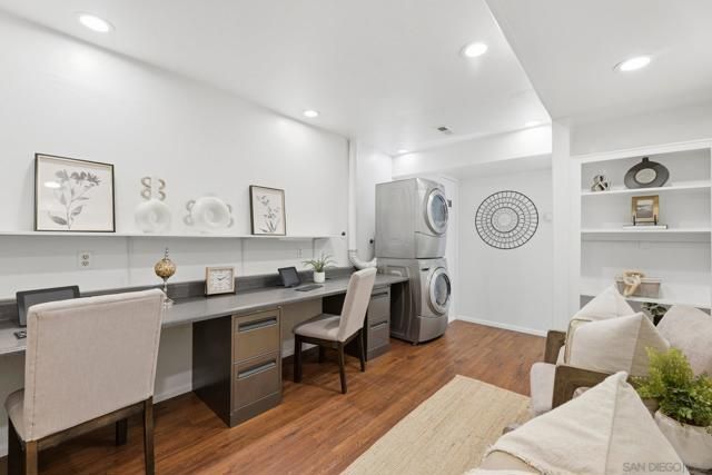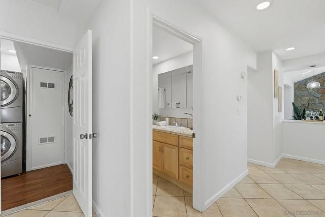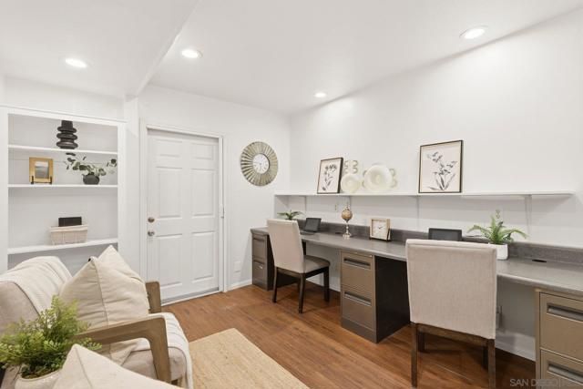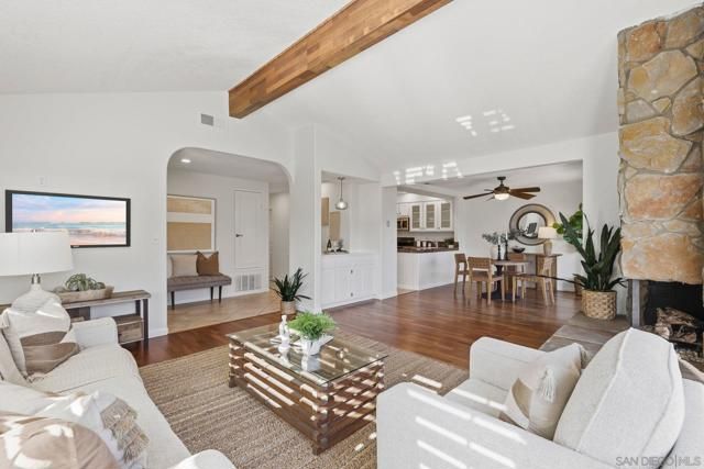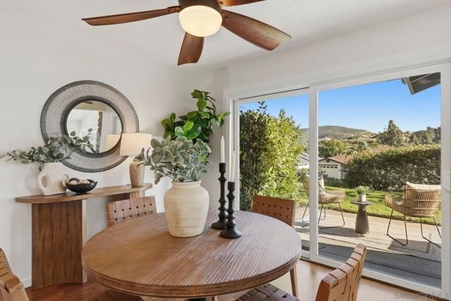 Welcome home to effortless, no-step, single-story living in this charming Country Greens cul-de-sac home in coveted Lake San Marcos. From the moment you step inside, you're greeted by tranquil hill views, abundant natural light, and an open floor plan that lives comfortably for both entertaining and every day. Large, newer sliders and windows create a seamless indoor-outdoor flow, while the striking statement fireplace and existing plumbing for a wet bar set the scene for a warm and welcoming gathering space. The thoughtfully laid out kitchen sits at the heart of the home, allowing for beautiful sight-lines and ample counters. With two bedrooms, two bathrooms, and a flex space that is perfect for an office, this airy 1491 ESF home offers a convenient and flowing layout. The generous primary suite is a true retreat with its vaulted ceiling, private patio, and dual vanity in the attached bathroom. With indoor laundry, storage throughout, a bathtub in the second bathroom, and an attached two car garage, this home offers daily conveniences that simplify life. Lake San Marcos living shines here, with nearby golf courses and access to Country Greens and community amenities including pools, spas, pickleball courts, and lake access, all just minutes from restaurants and shops. Set against a scenic backdrop, comfort and living well take center stage here on El Corral Lane. Some images have been digitally altered. Originals are hyperlinked on the MLS.