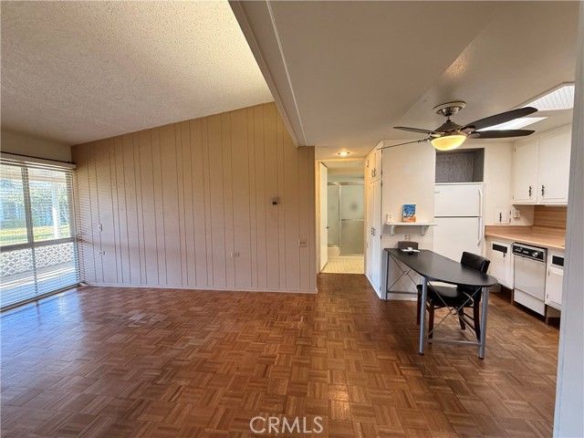 Welcome to this spacious Mutual 7 two-bedroom, one-bath home, situated along an expansive, peaceful greenbelt that offers open views, natural light, and a sense of privacy rarely found in Leisure World. The home features one of the community’s most desirable layouts with an expansive front patio, an enclosed entry courtyard, and large windows spanning the living room and bedrooms. Inside, the generous living room offers parquet wood flooring, vaulted ceilings, and a full wall of windows overlooking the greenbelt. The bright kitchen features ample cabinetry, a full-size refrigerator, and convenient access to the patio for easy outdoor dining or gardening. Both bedrooms are comfortably sized and enjoy sliding doors or large windows that bring in light and garden views. The bathroom offers a large vanity, a walk-in shower, and an overhead skylight. The enclosed front patio area, finished with tile flooring and a ceiling fan, creates a versatile space for storage, hobbies, or quiet relaxation. With an excellent location, an open and airy floor plan, and abundant outdoor living space, this home offers outstanding potential for cosmetic upgrades and customization. Mutual 7, Carport 181, space 30.SENIOR COMMUNITY-OFFERS THE FOLLOWING AMENITIES: 9 Hole Golf Course, Swimming Pool, Jacuzzi, Gym, Table Tennis, Shuffle Board, Billiards, Pickle Ball, and Bocce Ball courts. Amphitheater, 6 Clubhouses featuring: Art Room, Sewing, Crafts, Wood Shops, Lapidary, Pool Tables, Over 200 Clubs, LWSB is a Security-Guard-Gated Community. Also Library, Friends of Library Bookstore, Credit Union, Health Care Center, Pharmacy and Post Office.