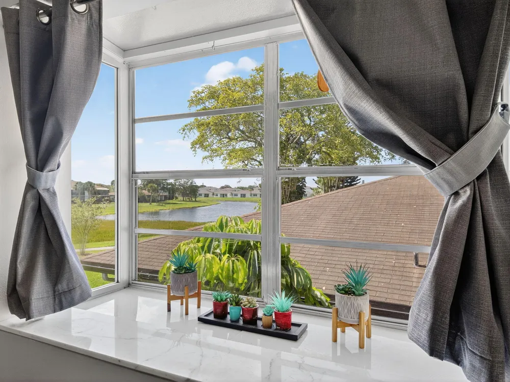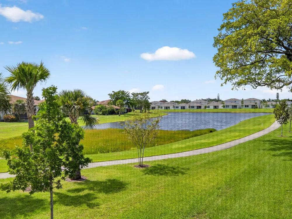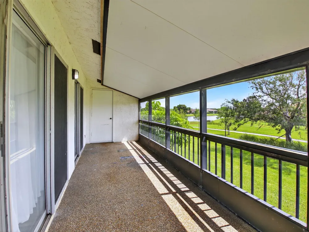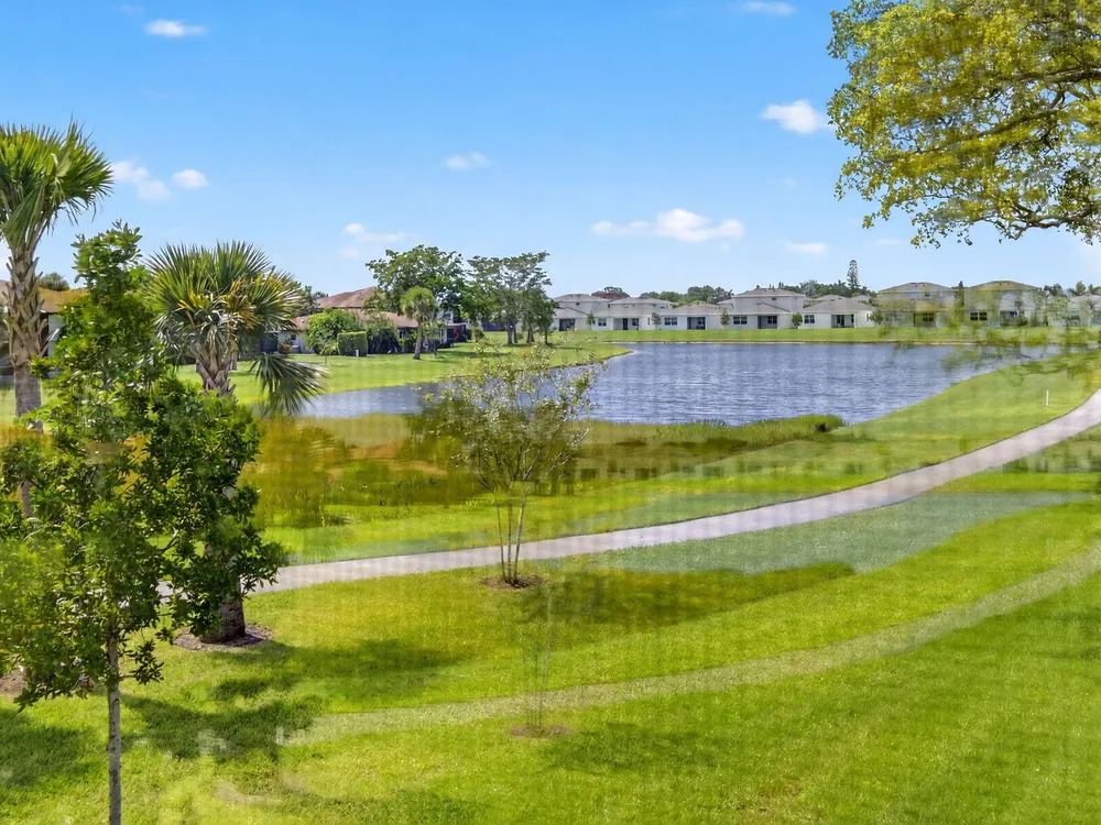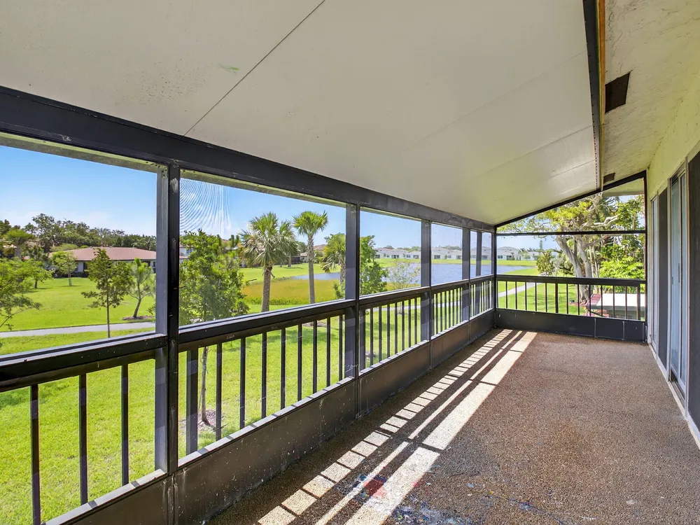 Serene Living in Palm Greens - 2 Bedroom, 2 Bath Corner UnitWelcome to this beautifully situated 2-bedroom, 2-bathroom corner residence on the second floor, offering unobstructed lake and lush garden views in the highly desirable 55+ active adult community of Palm Greens.This light-filled condo is the perfect balance of privacy and community. Enjoy peaceful mornings from your private corner unit, or immerse yourself in the vibrant social scene Palm Greens is known for. Just a short stroll to a nearby satellite pool--and with full access to the soon-to-be-completed new clubhouse--you can be as active or as relaxed as you wish.Step inside to an expansive living area bathed in natural light from a wall of windows. The open-concept design flows seamlessly to a spacious balcony,