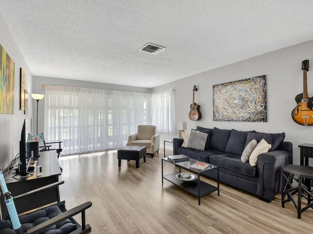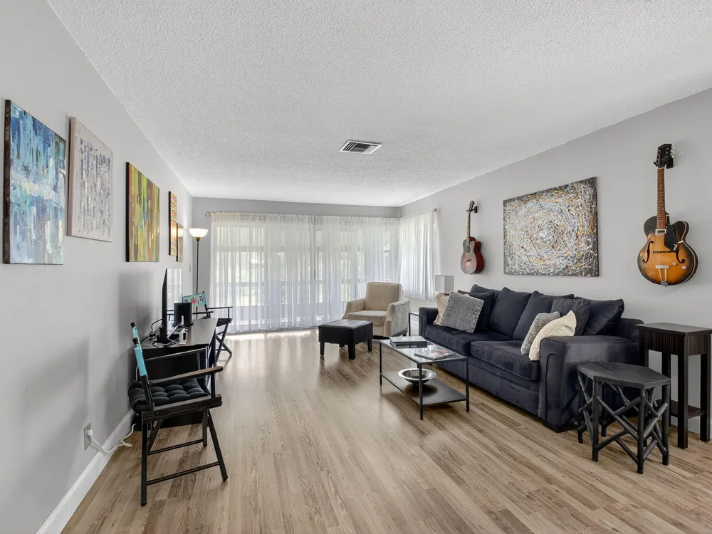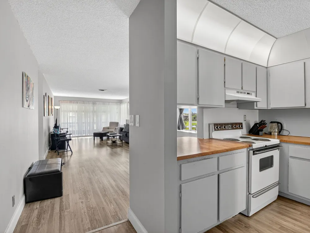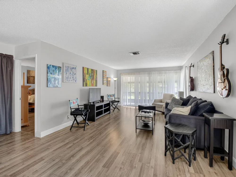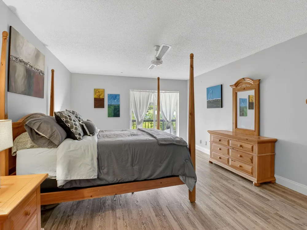 Serene Living in Palm Greens - 2 Bedroom, 2 Bath Corner UnitWelcome to this beautifully situated 2-bedroom, 2-bathroom corner residence on the second floor, offering unobstructed lake and lush garden views in the highly desirable 55+ active adult community of Palm Greens.This light-filled condo is the perfect balance of privacy and community. Enjoy peaceful mornings from your private corner unit, or immerse yourself in the vibrant social scene Palm Greens is known for. Just a short stroll to a nearby satellite pool--and with full access to the soon-to-be-completed new clubhouse--you can be as active or as relaxed as you wish.Step inside to an expansive living area bathed in natural light from a wall of windows. The open-concept design flows seamlessly to a spacious balcony,