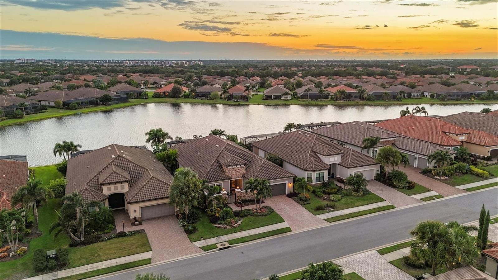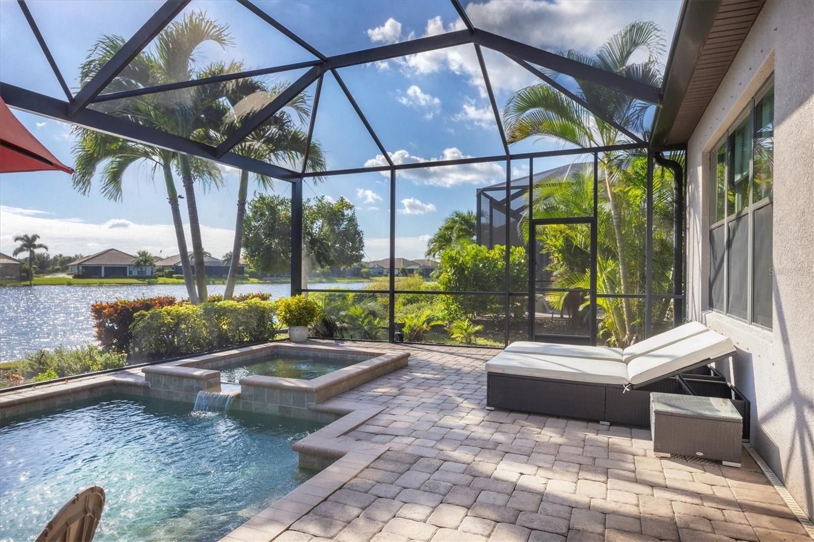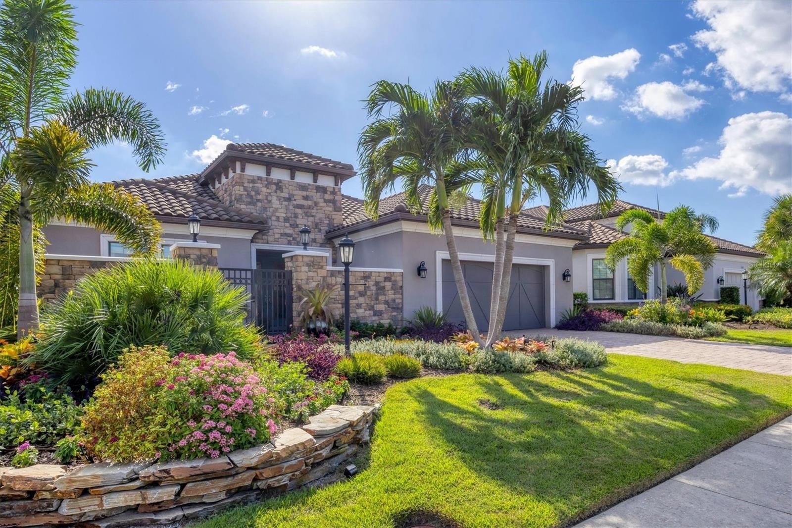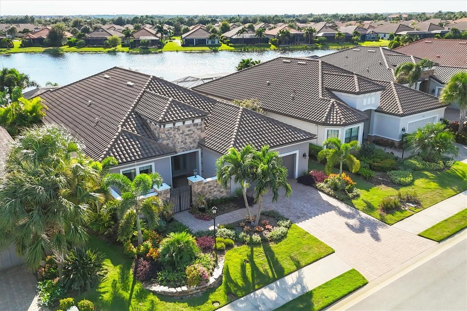 Embrace the ultimate resort-style living in this stunning water view home, featuring the coveted Pallazio VII floor plan with an added nook. This residence boasts an expansive outdoor living space with a gas fireplace, perfect for both relaxation and entertainment, enhanced by Elevation C with a 4 ft garage extension. With a FULL GOLF MEMBERSHIP included, you can enjoy the best of golf and leisure right at your doorstep! As you enter through the charming, gated courtyard and double doors, you will be welcomed by impressive columns and soaring ceilings that set the tone for elegance. The open-concept great room, adorned with crown molding and bathed in natural light from disappearing pocket sliding doors, seamlessly connects to the lanai with breathtaking southwest facing views of the pool and outdoor oasis. The upgraded gourmet kitchen is a chefs dream, featuring stainless-steel appliances including Quartz Cambria countertops, a 36-inch natural gas cooktop, and a built-in oven. The oversized island, highlighted by stylish pendant lighting, offers ample storage and is perfect for entertaining or family meals. Enjoy morning coffee in the extended breakfast area, with sliding glass pocket doors that open to the lanai. Retreat to the grand primary bedroom, a private sanctuary complete with a spacious en-suite bathroom featuring dual sinks, a frameless glass shower, and a large walk-in closet. Two guest bedrooms provide comfort and privacy, one with an en-suite bathroom and the other with convenient access to a separate bath. The generously sized study/den, accessible through elegant 8 ft. French double doors, offers versatility for work or can easily be transformed into a fourth bedroom. Step outside to the extended screened lanai, where the expansive paver deck and endless water views invite you to soak up Florida’s sunshine. With a wealth of community amenities, including an 18-hole championship golf course, tennis and pickleball courts, two resort-style pools, and a full-service spa, you will never run out of things to do. Enjoy fine dining at the Barrel House Bistro, or casual meals at the Bahama Bar, along with an active social calendar filled with events. Located in award-winning Lakewood Ranch, you are just moments away from shopping, dining, local farmers? markets, scenic trails, and beautiful beaches. Don't miss your chance to own this meticulously designed home in one of Florida's premier communities, schedule your showing today and step into your dream lifestyle! GREAT ROOM AND PRIMARY BEDROOM LIGHT FIXTURES DO NOT CONVEY.