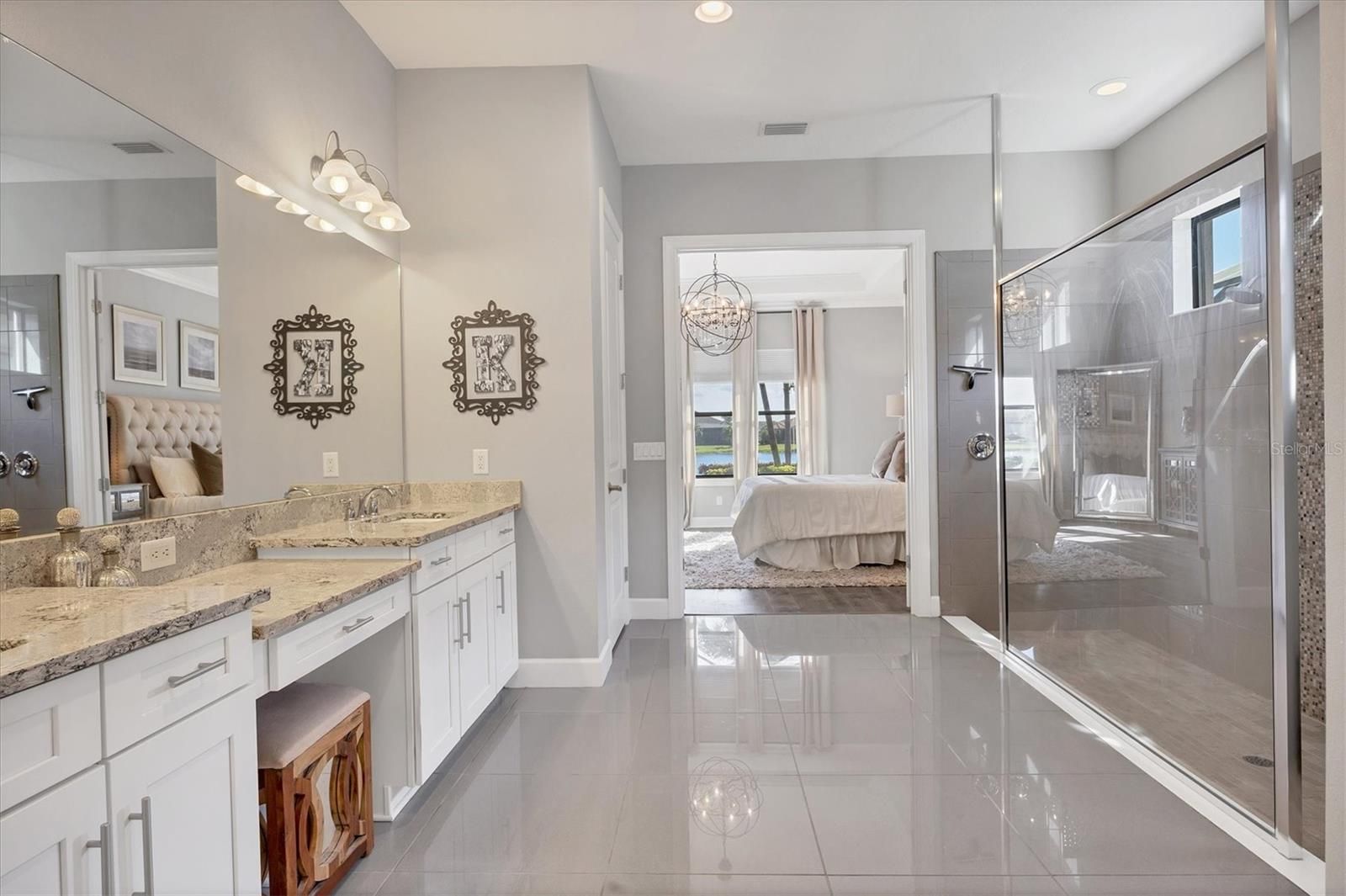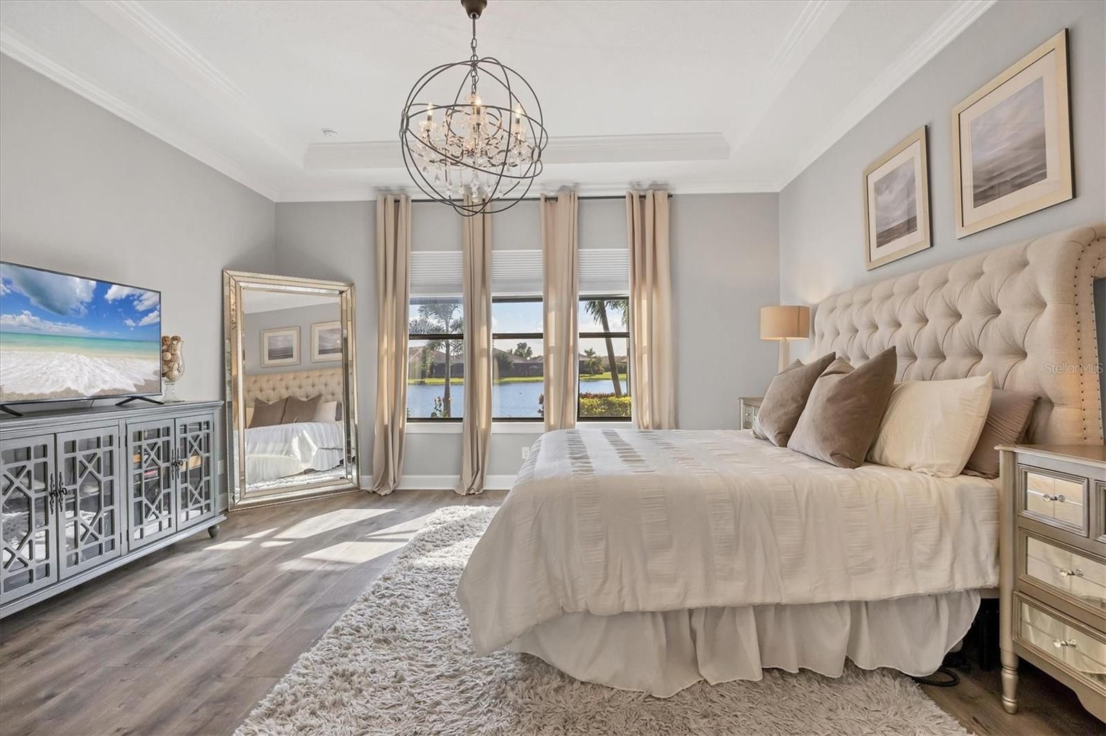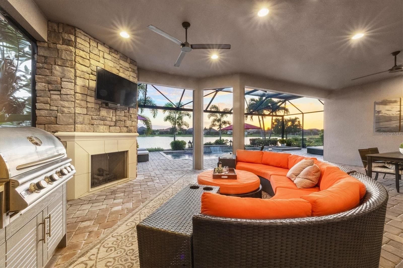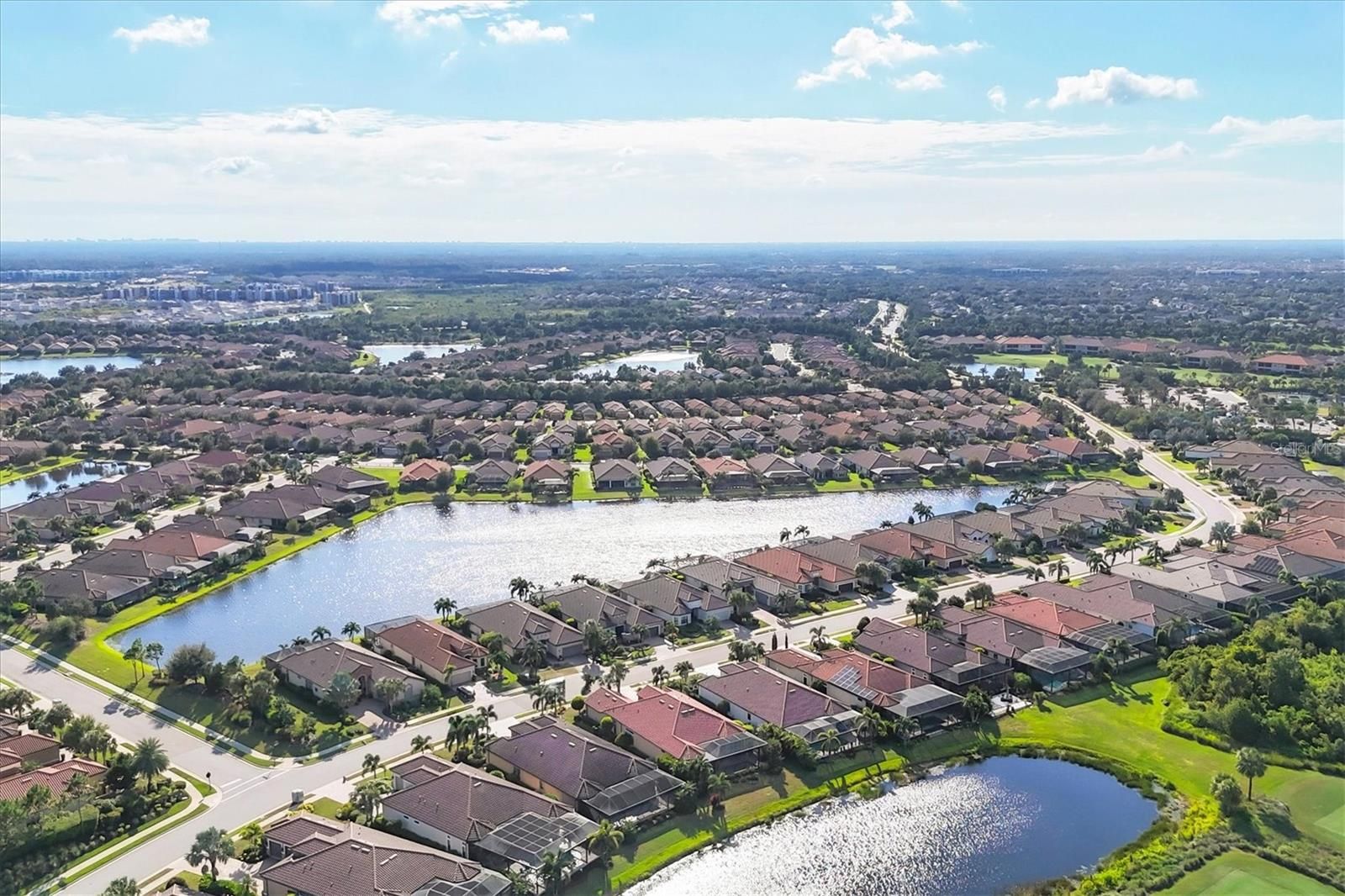 Embrace the ultimate resort-style living in this stunning water view home, featuring the coveted Pallazio VII floor plan with an added nook. This residence boasts an expansive outdoor living space with a gas fireplace, perfect for both relaxation and entertainment, enhanced by Elevation C with a 4 ft garage extension. With a FULL GOLF MEMBERSHIP included, you can enjoy the best of golf and leisure right at your doorstep! As you enter through the charming, gated courtyard and double doors, you will be welcomed by impressive columns and soaring ceilings that set the tone for elegance. The open-concept great room, adorned with crown molding and bathed in natural light from disappearing pocket sliding doors, seamlessly connects to the lanai with breathtaking southwest facing views of the pool and outdoor oasis. The upgraded gourmet kitchen is a chefs dream, featuring stainless-steel appliances including Quartz Cambria countertops, a 36-inch natural gas cooktop, and a built-in oven. The oversized island, highlighted by stylish pendant lighting, offers ample storage and is perfect for entertaining or family meals. Enjoy morning coffee in the extended breakfast area, with sliding glass pocket doors that open to the lanai. Retreat to the grand primary bedroom, a private sanctuary complete with a spacious en-suite bathroom featuring dual sinks, a frameless glass shower, and a large walk-in closet. Two guest bedrooms provide comfort and privacy, one with an en-suite bathroom and the other with convenient access to a separate bath. The generously sized study/den, accessible through elegant 8 ft. French double doors, offers versatility for work or can easily be transformed into a fourth bedroom. Step outside to the extended screened lanai, where the expansive paver deck and endless water views invite you to soak up Florida’s sunshine. With a wealth of community amenities, including an 18-hole championship golf course, tennis and pickleball courts, two resort-style pools, and a full-service spa, you will never run out of things to do. Enjoy fine dining at the Barrel House Bistro, or casual meals at the Bahama Bar, along with an active social calendar filled with events. Located in award-winning Lakewood Ranch, you are just moments away from shopping, dining, local farmers? markets, scenic trails, and beautiful beaches. Don't miss your chance to own this meticulously designed home in one of Florida's premier communities, schedule your showing today and step into your dream lifestyle! GREAT ROOM AND PRIMARY BEDROOM LIGHT FIXTURES DO NOT CONVEY.