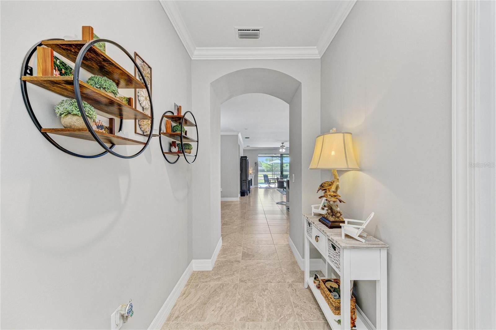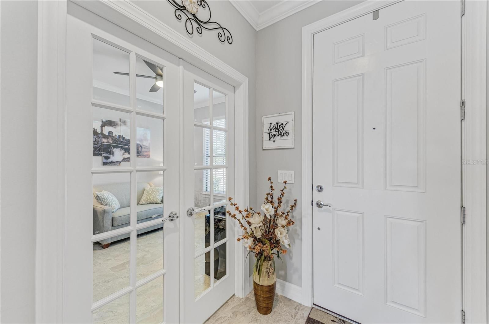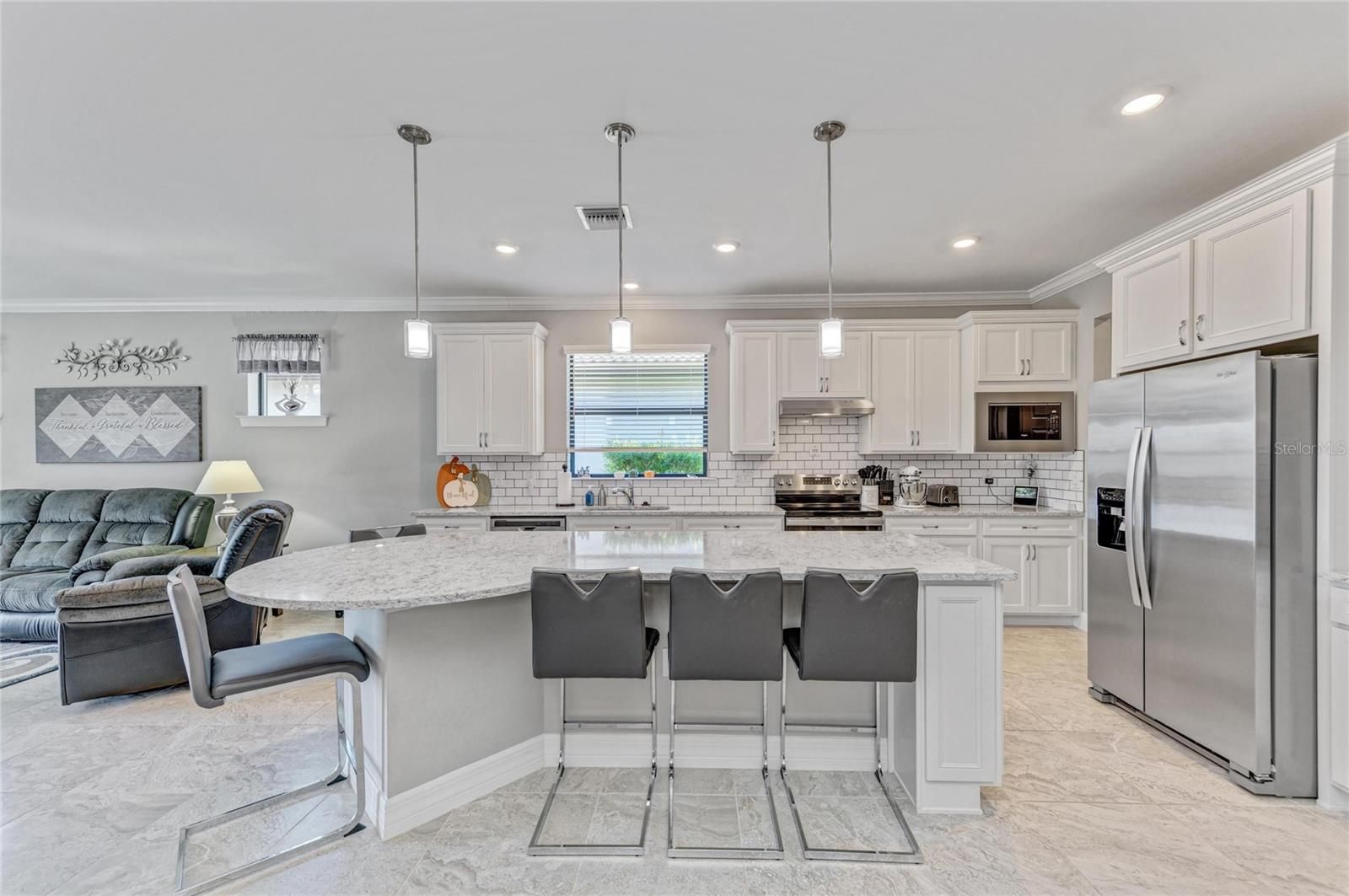 Discover the highly sought-after Martin Ray model with private heated swimming pool, impeccably maintained and enhanced with upgrades throughout, offering luxury, functionality, and style at every turn. This beautifully updated two-bedroom home, featuring an additional den and two full baths, is truly move-in ready. The exterior impresses with outstanding curb appeal, an extended paver driveway and walkway, and a screened front entry that sets the stage for the elegance found inside. Upon entering, you’ll find tile flooring throughout the main living areas, complemented by neutral paint tones and refined crown molding. The front den or office showcases glass French doors, creating an ideal space for remote work or quiet relaxation. The chef’s kitchen is a standout, boasting quartz countertops, a custom backsplash, 42-inch upper cabinets, pull-out drawers, a butler’s pantry, and stainless-steel appliances. The spacious great room flows seamlessly to the southern-facing lanai through sliding glass pocket doors, allowing you to enjoy the home’s stunning private waterfront setting. Recent upgraded storm protection, including roll-down shutters and hurricane screens on the lanai provides added peace of mind as well as privacy. The oversized tandem garage features epoxy flooring, pull down attic stairs as well as additional attic storage, additional lighting, and abundant storage options, while the laundry room includes a washer, dryer, and generous storage space. The serene primary suite offers beautiful water views and a luxurious bathroom with dual sinks, a tiled shower with decorative inlay, and an expansive walk-in closet. The dining and living room furniture may also convey if desired. This home is a remarkable blend of elegant design, thoughtful upgrades, and inviting outdoor living—an exceptional opportunity to own one of the area’s most desirable floor plans. IslandWalk is known as one of Venice’s most social and vibrant communities, offering a full-time activities director, countless events, clubs, and recreational options. Residents enjoy two community clubhouses, an event center, two resort-style pools, a lap pool, twelve pickleball courts, eight Har-Tru tennis courts, a dog park, playground, basketball court, community garden, and miles of golf cart paths, walking and biking trails, Venetian-style bridges, and waterways. The Atlanta Braves stadium is just a short bike ride away, offering year-round entertainment. The newly completed marketplace features Publix, restaurants, shopping, and essential services. Nearby Downtown Wellen Park offers an 80-acre lake, waterfront dining, rooftop decks, boutique retail, pedestrian-friendly streets, a splash pad, playground, and a public town hall that hosts live theater and music events, with a hammock grove and food truck park coming soon. The IslandWalk HOA includes grounds maintenance, cable, Wi-Fi, amenities, and 24-hour guard services. Don’t miss your chance to tour this exceptional home.