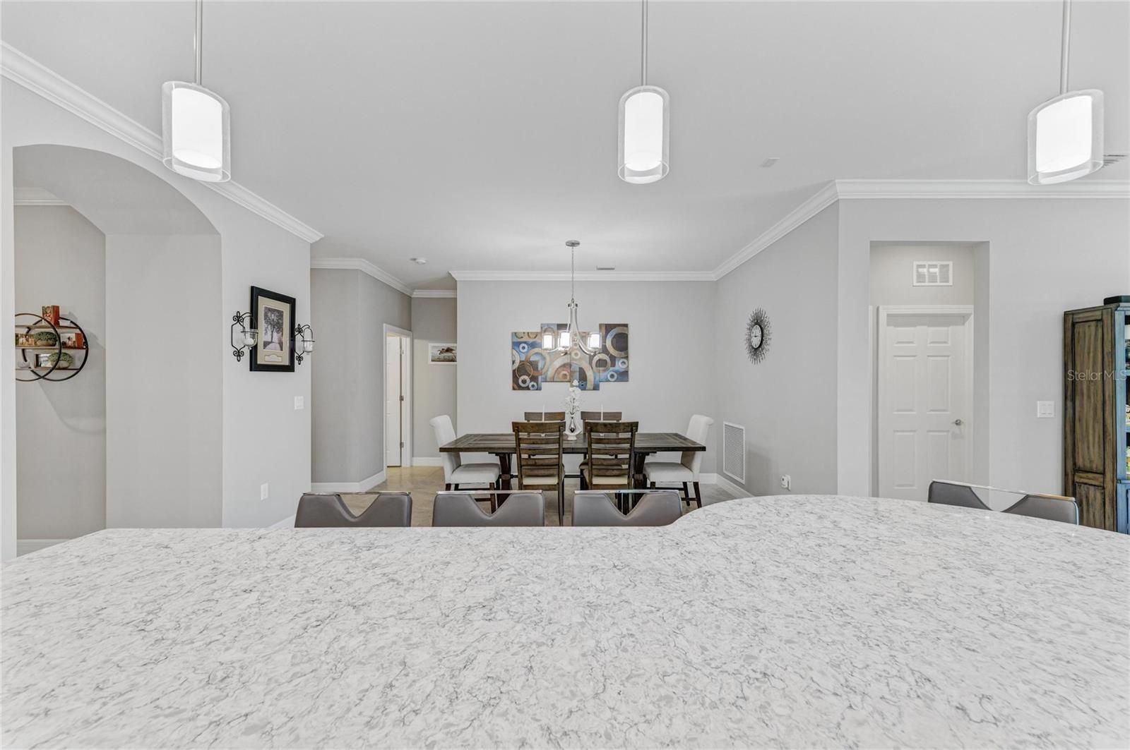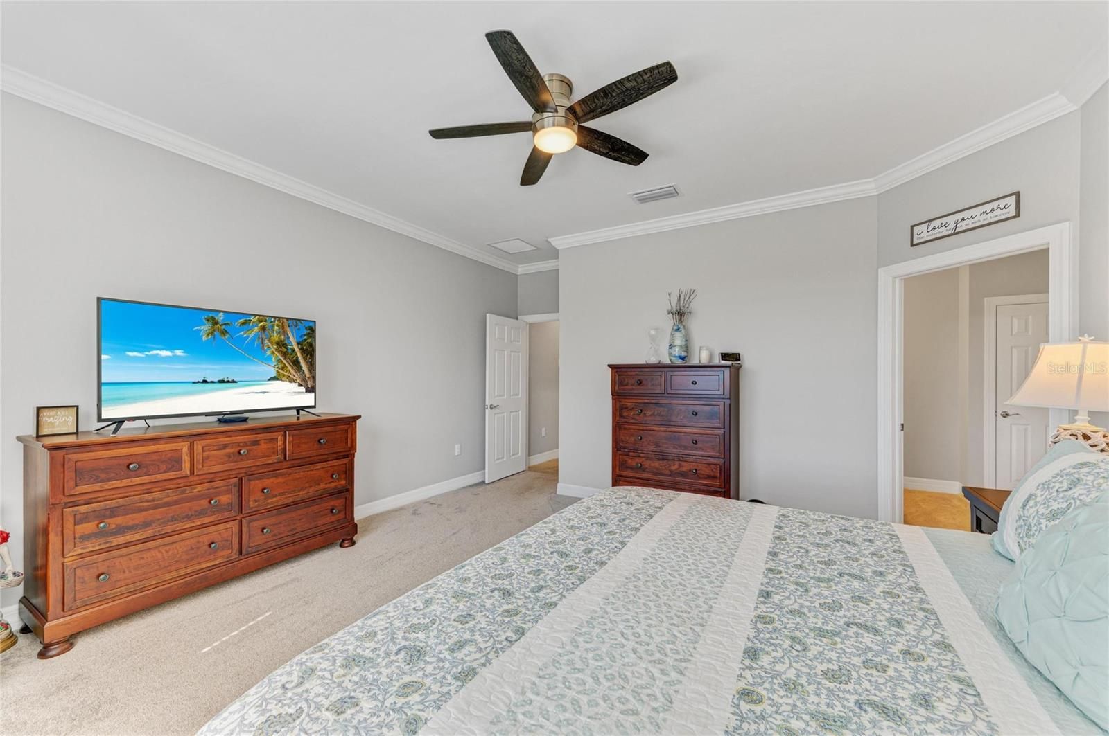 - Ceiling Fan(s), Crown Molding, High Ceilings, In-Wall Pest Control, Kitchen/Family Room Combo, Open Floorplan, Solid Surface Counters, Solid-Wood Cabinets, Walk-In Closet(s), Window Treatments