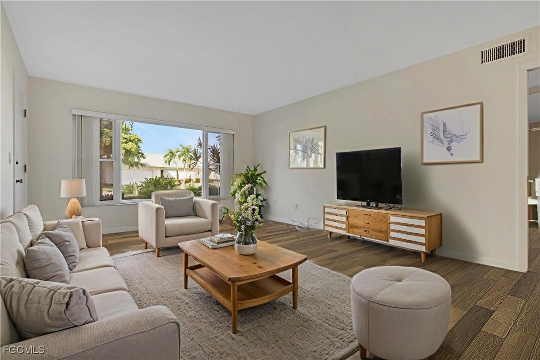 Step into a community that people stay in for a reason. Behind the 24-hour staffed guard gate—yes, an actual person, not a keypad—you’ll find one of Fort Myers’ most trusted and well-kept 55+ neighborhoods. It’s quiet, extremely safe, never flooded, and managed with a level of care that’s getting harder to find these days. Once inside, everything feels easy, organized, and genuinely welcoming. This spacious two bedroom, two bathroom condo is set up for comfort with a smart split-bedroom layout and a bright, updated kitchen featuring white cabinetry, stainless steel appliances, and plenty of workspace for cooking or hosting. The living area and bedrooms are ready for your personal touch, with no flooring currently installed. To help you envision the possibilities, you’ll find sample photos of different flooring options—making it simple to imagine the space fully finished in your style. But the real value here isn’t just the home; it’s the effortless lifestyle that comes with it. The association handles nearly everything for you, including cable, internet, lawn care, irrigation, exterior pest control, reserves, security, trash, and streetlights. It’s the kind of maintenance coverage that makes downsizing or simplifying feel like an upgrade. With on-site management and a guard present around the clock, this community operates smoothly and keeps residents at ease. Amenities are abundant: a clubhouse, fitness center, community pool and spa, tennis, pickleball, billiards, hobby rooms, a library, and peaceful walking paths. Whether you’re looking to stay active or relax in the Florida sunshine, there’s always something to enjoy—and always someone around who’s ready to join you. Location is another major win. You’re minutes from everyday conveniences like grocery stores, restaurants, and shopping, close to several golf courses, and just a quick drive to Fort Myers Beach and Sanibel. It’s central, convenient, and ideal for enjoying the best of Southwest Florida without the chaos. If you’re searching for a low-maintenance home in a beautifully maintained, friendly, and truly reliable community, this property delivers exactly that. It’s a rare find in a place where people love to live.