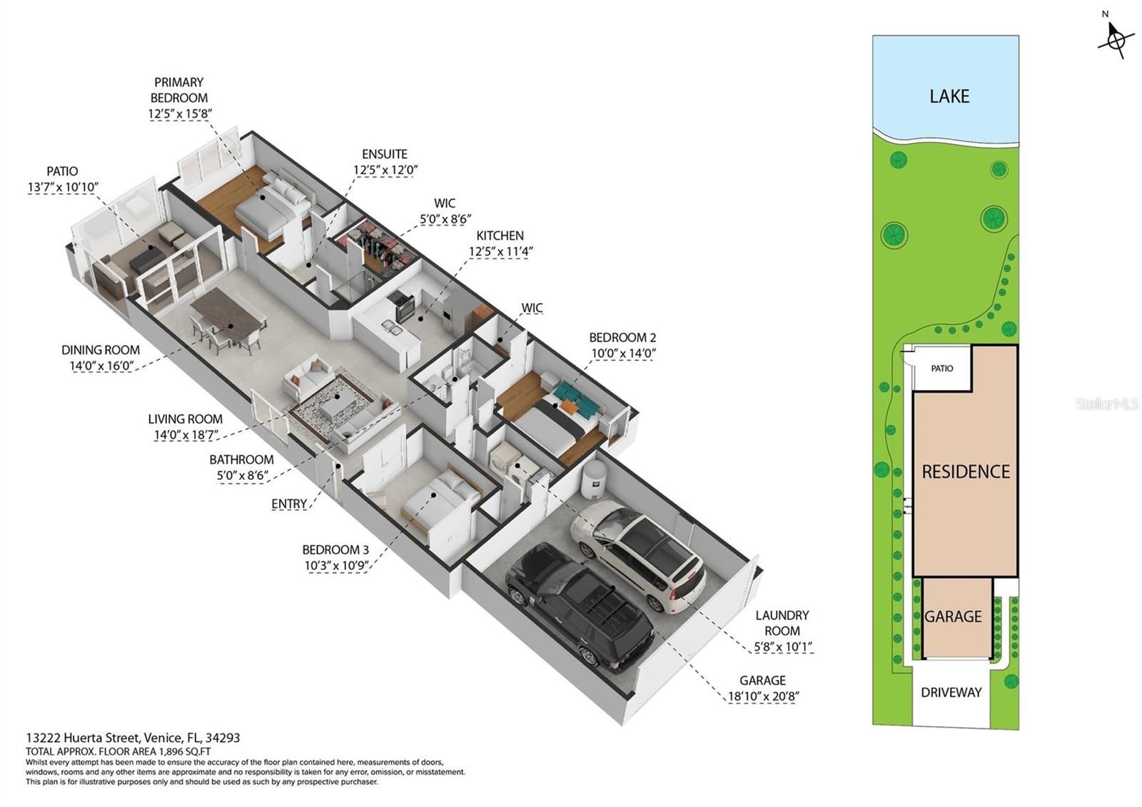 This DiVosta Carrington attached villa delivers 1,541 square feet under air and 2,128 square feet total, offering a genuine three-bedroom, two-bath floor plan paired with a full two-car garage. Positioned as one of the most competitively priced three-bedroom homes in IslandWalk, it stands out as an exceptional value and is ready for immediate enjoyment by its next owner. Situated on an oversized lot with generous space between neighboring units, the home offers added privacy rarely found in attached villas. The open floor plan showcases beautiful tile flooring throughout and flows seamlessly to a screened patio with tranquil water views, creating an ideal setting for relaxing or entertaining. The sellers have just had the interior freshly repainted, giving the home a clean, updated feel. This villa has been exceptionally well maintained and it shows. The AC was replaced in July of 2020 and the hot water heater was replaced in December of 2023, providing added peace of mind. IslandWalk is one of Venice’s most vibrant lifestyle communities, offering a full-time activities director, two clubhouses, resort-style pools, pickleball and tennis courts, miles of scenic walking, biking, and golf-cart paths, and a wide variety of clubs and social events. Just a short bike ride to the Atlanta Braves Stadium, residents also enjoy easy access to the nearby marketplace with Publix, dining, and shopping, as well as Downtown Wellen Park featuring an 80-acre lake, waterfront dining, retail, and live entertainment. A brand-new Costco is only minutes away. The IslandWalk HOA includes grounds maintenance, cable, internet, amenities, and 24-hour guard-gated security. This home is NOT located in a flood zone and offers a low CDD fee. Don’t miss this outstanding opportunity, be sure to view the 3D Matterport and drone tours.