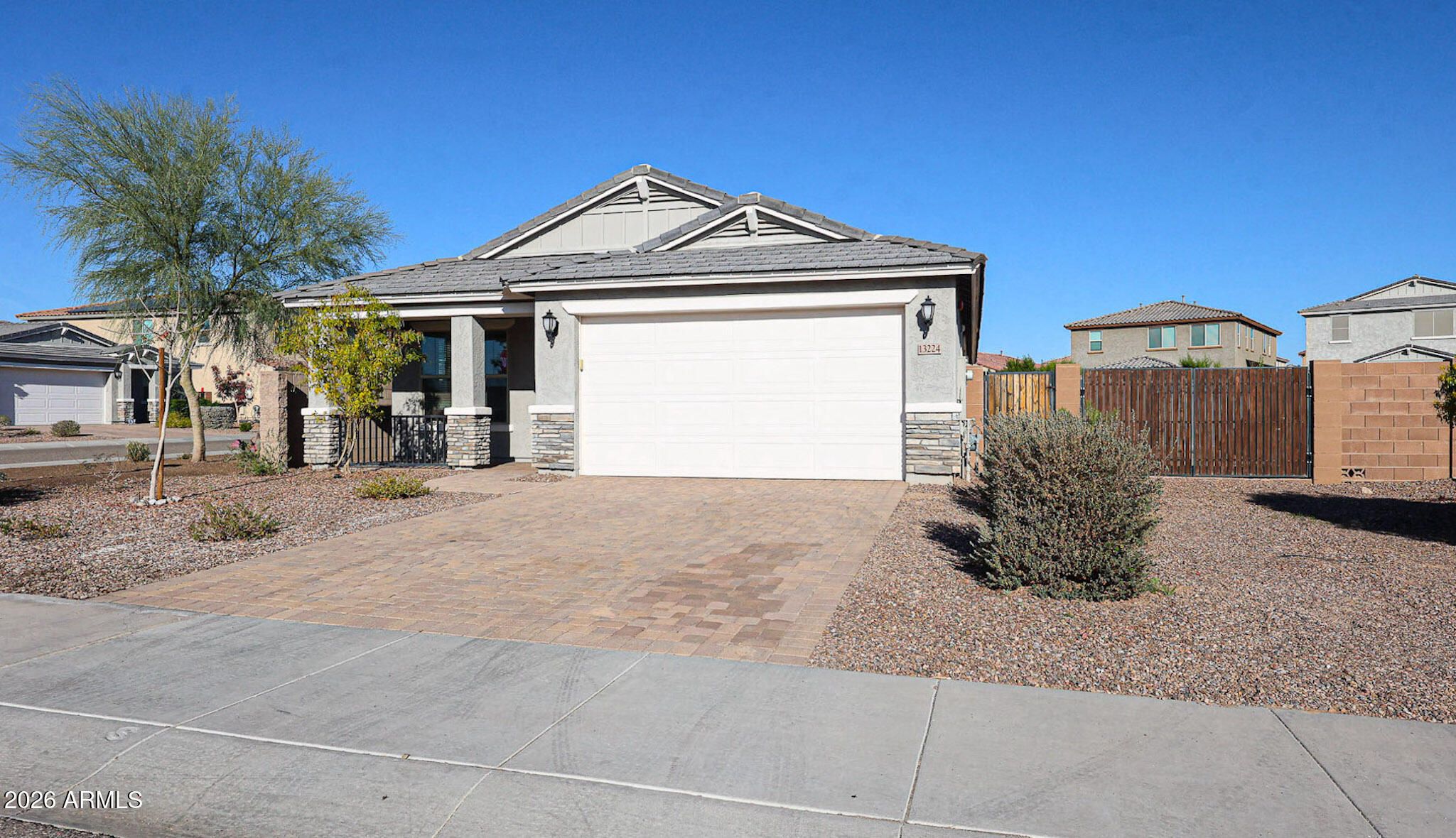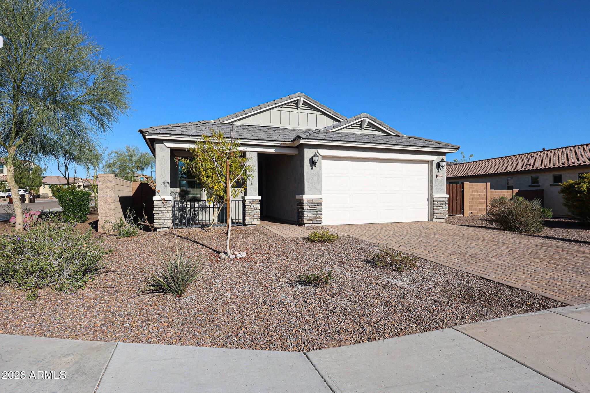 Don't miss this exceptional Taylor Morrison home with impeccable curb appeal on a premier oversized lot (11k sq ft) in the sought after Northwest Valley community of Granite Hills. Built in 2022 and designed for indoor-outdoor living, this beautifully upgraded home features three bedrooms, two bathrooms and a separate office. Open floor plan with a sleek, well appointed kitchen that seamlessly flows into the family and dining rooms, includes stainless steel appliances, gas stove, touch-activated Moen faucet, and filtered water. Retreat to the expanded main bedroom with separate tub/shower and spacious walk-in closet. Your private backyard desert oasis includes a Pebble Tec pool with pavers & stone deck for summer fun, and a stylish Pergola patio with automatic sun shade. Plank flooring throughout with soft carpeting in the bedrooms. Recessed fire sprinkler system, soft water loop, and a large tool shed complete the home. Play park across the street and scenic mountain views and hiking trails right around the corner. There is much more to this spacious and functional home, so come see it before it's gone!