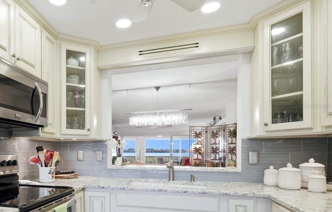 Location, Location, Location!! WATERFRONT with a GARAGE! This updated 2 bed/2 bath is located directly on the Bay at the Pointe with those coveted open water views! Wake to that breeze from your screened lanai and the panorama from your bedroom window and slider. The open dining and family rooms share that same panoramic view enjoying new luxury vinyl plank flooring throughout, a built in display shelf, and an oversized pass through to your updated kitchen. Your ceramic Kohler double sink overlooks that same gorgeous view! The renovated kitchen includes granite counters, solid wood soft close cabinetry, glass subway tile back splash, Frigidaire Gallery Stainless Steel appliances and recessed lighting! Both bathrooms enjoy updated wood vanities and tiled, glass enclosed showers. You will love being able to step off your own back porch, or out your front door to your garage, with private storage! All of this in the beautiful, gated community of Perico Bay Club, with a clubhouse, tennis & pickle ball courts, shuffle board, kayak launches & storage, community pools, gym, library and so much more! Just 3 short miles to the beautiful beaches of Anna Maria Island!