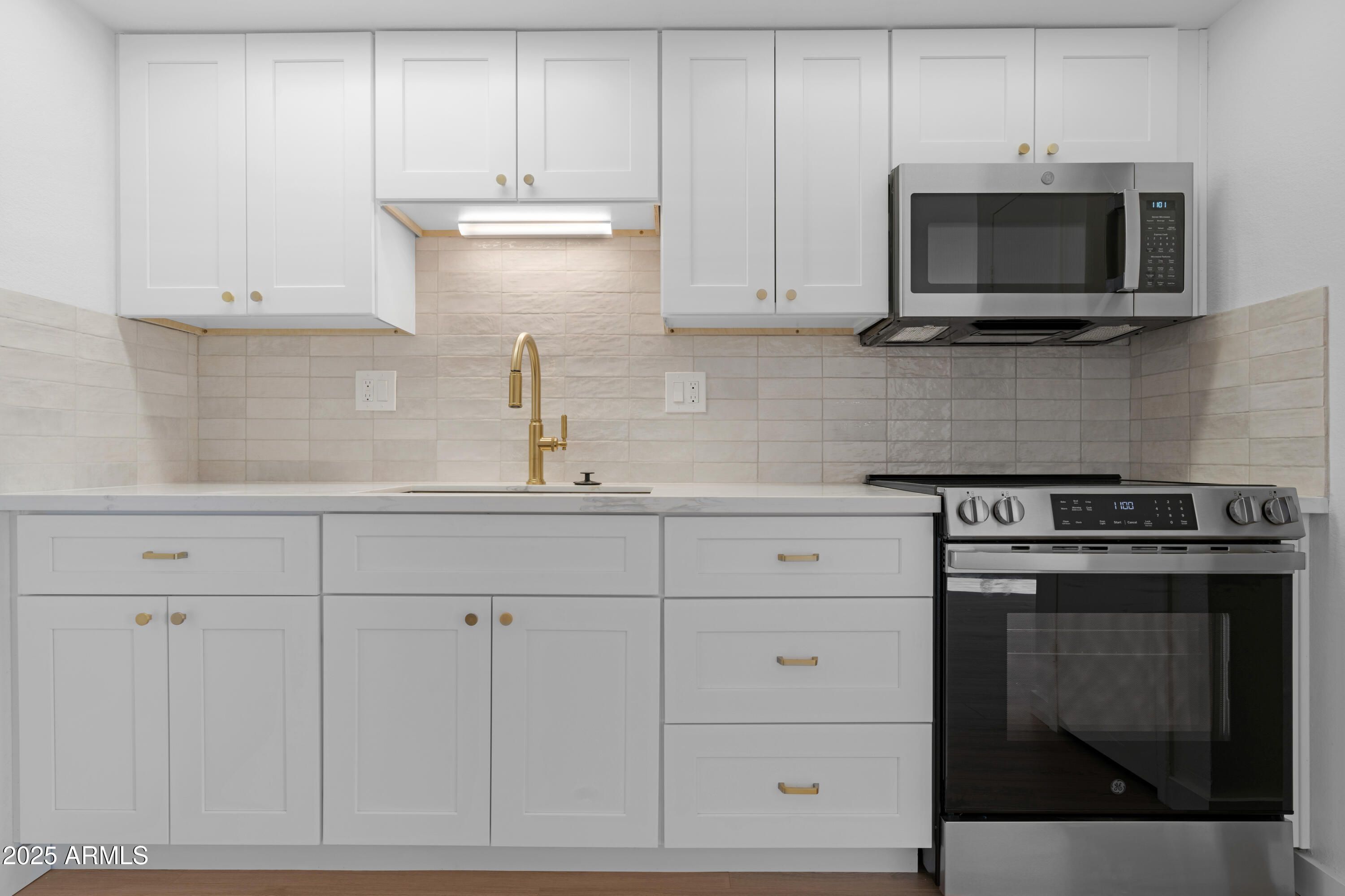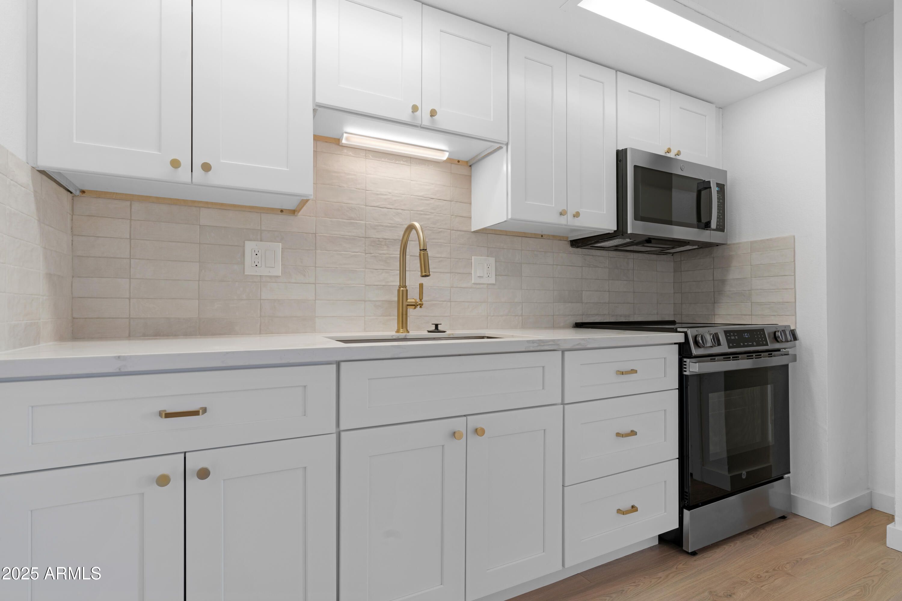 Beautifully remodeled studio townhouse in Sun City—ideal for snowbirds! The interior shines with new flooring, shaker cabinets in both kitchen and bath, and a stylish matching backsplash that continues into the shower. All valves and trim have been updated for peace of mind. Modern, low-maintenance, and perfectly designed for lock-and-leave living. Move right in and enjoy the season.