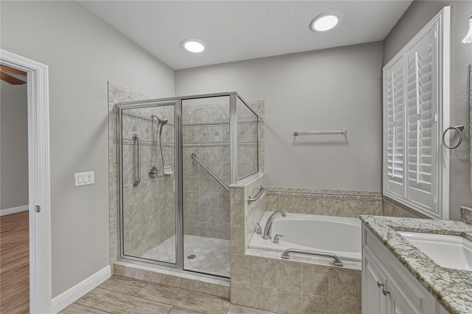 Freshly reimagined and beautifully remodeled top to bottom, this 3 bedroom, 2 bath, 2 car garage home is set within the low maintenance section of the Heathers at Lake Jovita. It brings modern luxury to one of the community’s most sought-after streets, right down to its brand-new 2026 roof. From the moment you arrive, the full scope of the renovation is unmistakable. Inside, new plank-tile flooring, new windows, new doors, and plantation shutters run throughout the home, creating a clean, cohesive, upscale backdrop for everyday living. High ceilings crown the expansive living room, where natural light pours in and the layout opens gracefully to both the kitchen and the screened lanai, giving the home an effortless flow that’s ideal for entertaining. The kitchen has been thoughtfully redesigned with stainless steel KitchenAid appliances, soft-close cabinetry, granite countertops, a decorative backsplash, and a roomy pantry. Whether hosting friends or enjoying a quiet night in, the space combines style and practicality with ease. A dedicated dining room near the front of the home offers a charming setting for more intimate gatherings. Privately tucked away from the secondary bedrooms, the primary suite serves as a true retreat, complete with generous sleeping quarters, a massive walk-in closet enhanced by extensive built-in storage, and a spa-inspired ensuite. Here, a new dual-sink vanity, glass-enclosed walk-in shower, and separate soaking tub create a soothing environment to unwind at the end of the day. Bedrooms two and three sit together near the home’s second full bath, which has also been beautifully refinished with dual sinks, granite countertops, and a tub/shower combination, perfect for guests or additional household members. Step out onto the extended screened lanai and take in peaceful views of the golf course, with plenty of space to relax, dine, or simply enjoy the breeze. Beyond the backyard, Residents of The Heathers enjoy a maintenance-free lifestyle with services that include lawn and landscaping care, tree trimming, roof and exterior cleaning, basic cable service through Spectrum, and periodic exterior painting. Lake Jovita itself offers a gated, resort-style setting with amenities such as parks, a playground, dog park, and sports courts for pickleball and basketball. Optional memberships open the door to two championship golf courses, world-class Har-Tru clay tennis courts, a Junior Olympic-size pool, a fitness center, and clubhouse dining. The charming towns of Dade City and San Antonio offer nearby dining, shopping, and entertainment options. A complete top-to-bottom transformation in a premier golf community, this is a home you do not want to miss. Call us today for your private showing.