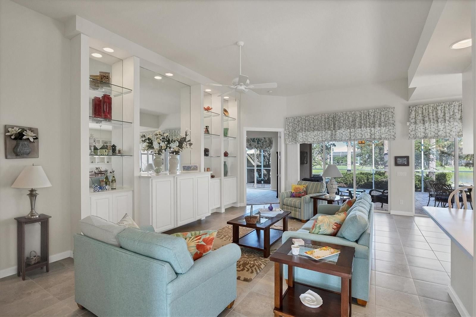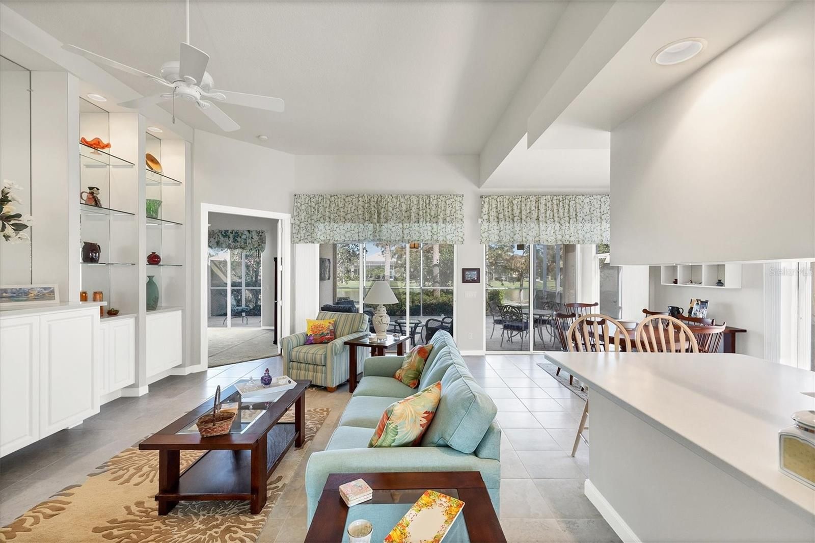 - Built-in Features, Ceiling Fan(s), High Ceilings, Open Floorplan, Walk-In Closet(s), Window Treatments
